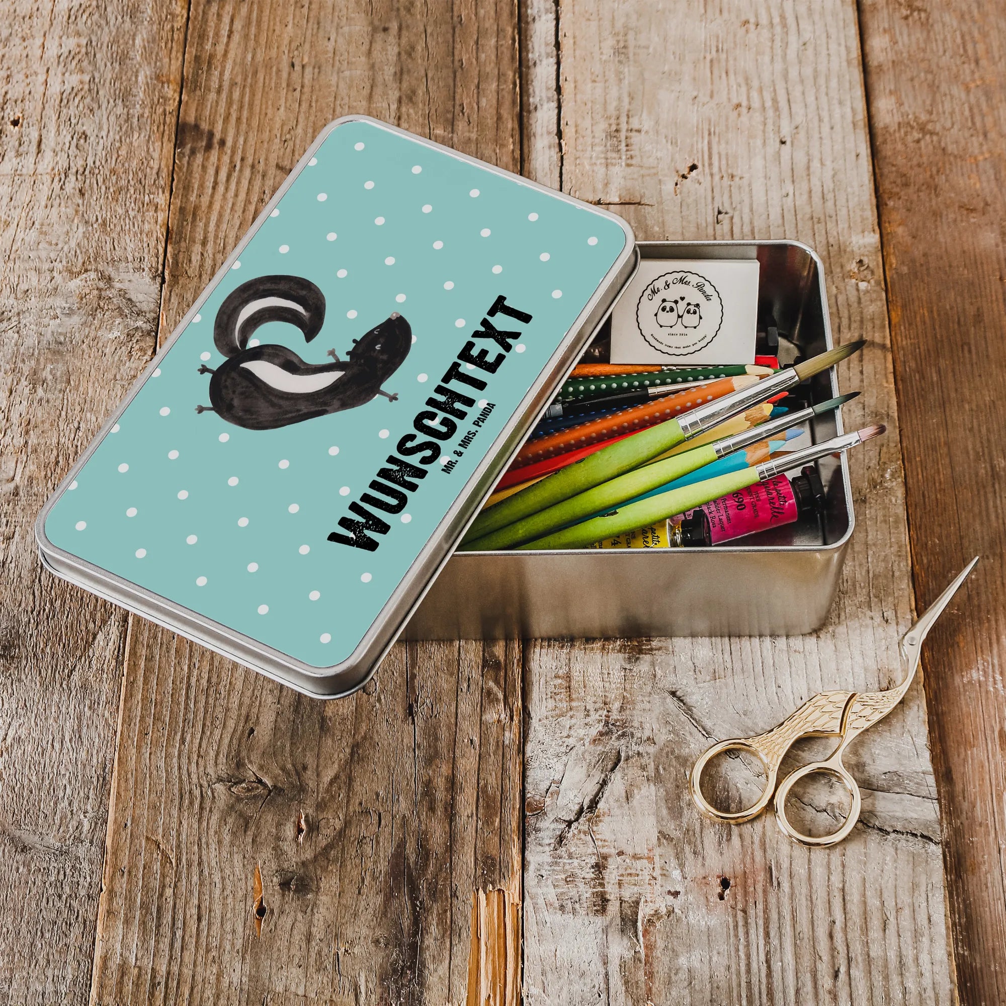 Personalised metal tin skunk handstand – Mr. & Mrs. Panda