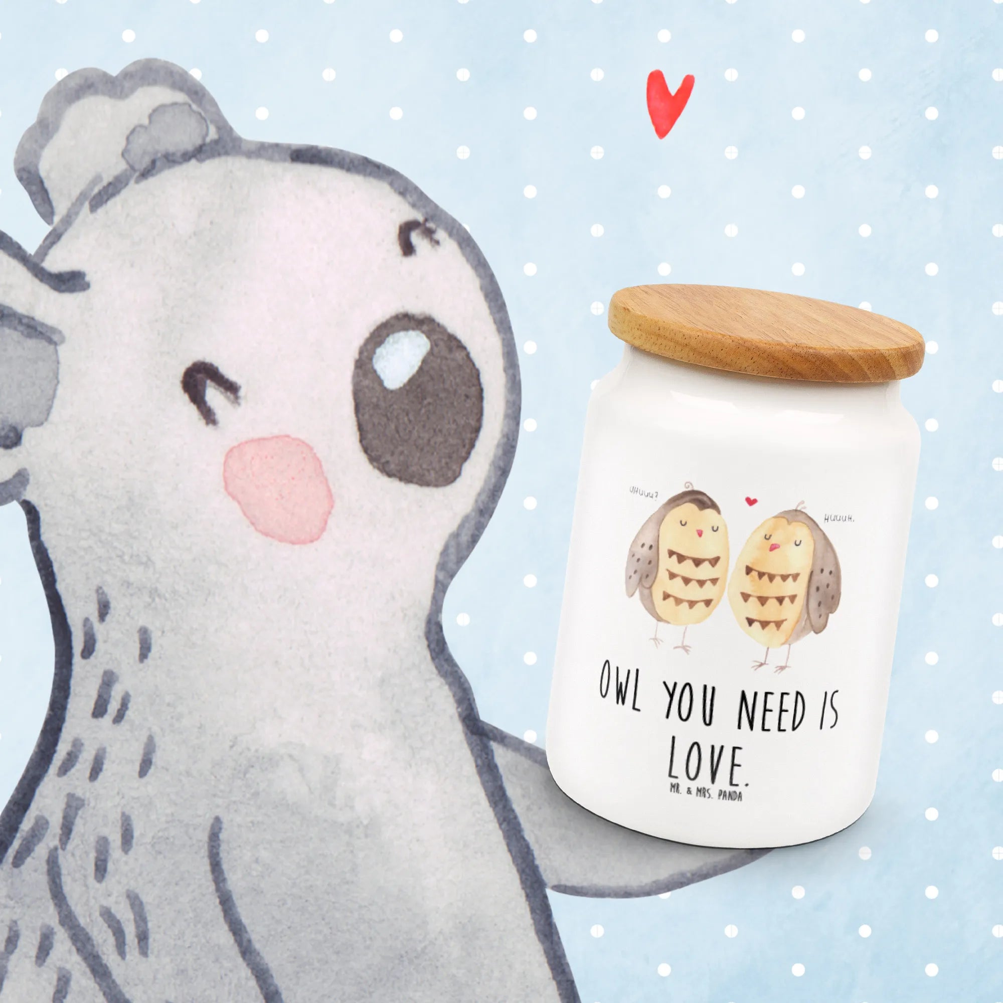 Are you looking for the perfect gift that combines functionality with a sprinkle of love? Meet our enchanting "Owls in Love" storage jar by Mr. & Mrs. Panda! This delightful ceramic jar isn't just a practical kitchen storage solution; it’s also a heartfelt statement of affection. Featuring two adorable, love-struck owls perched on a branch, this jar embodies the whimsical spirit of love with the saying "Owl you need is love". Perfect as a treat jar or cookie jar, it brings joy and warmth to any pantry or countertop.