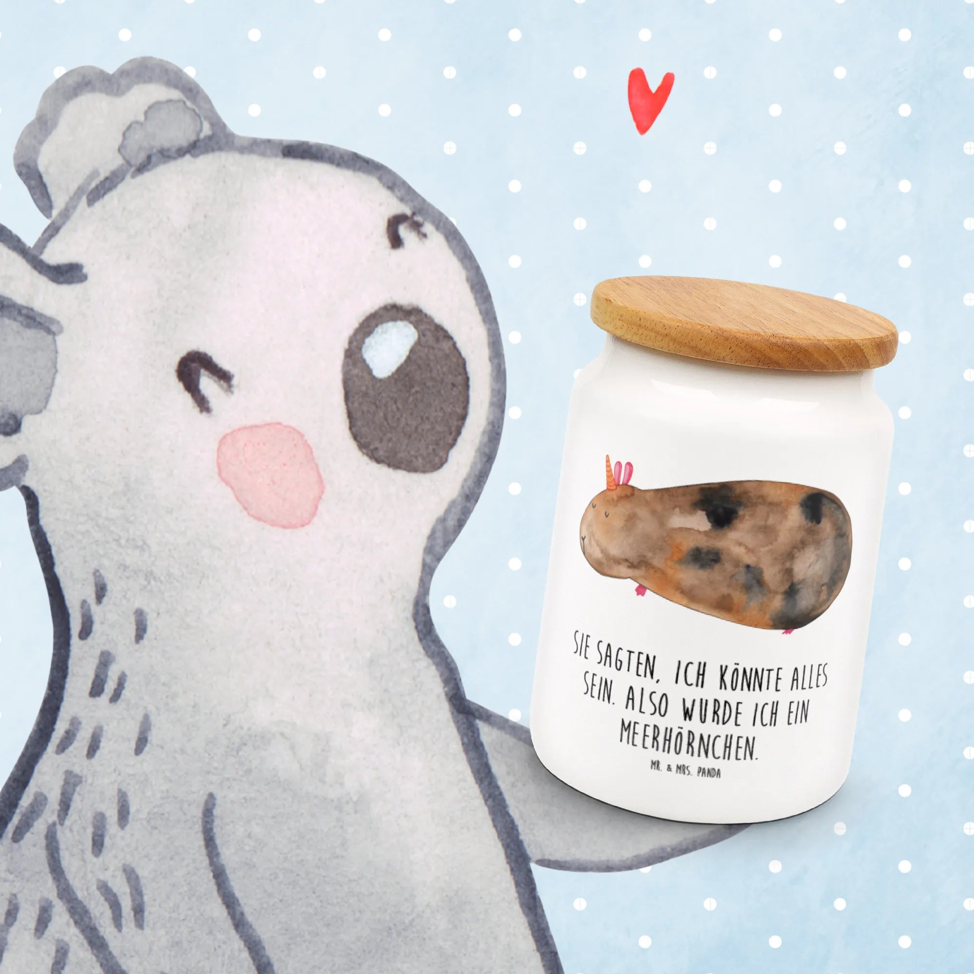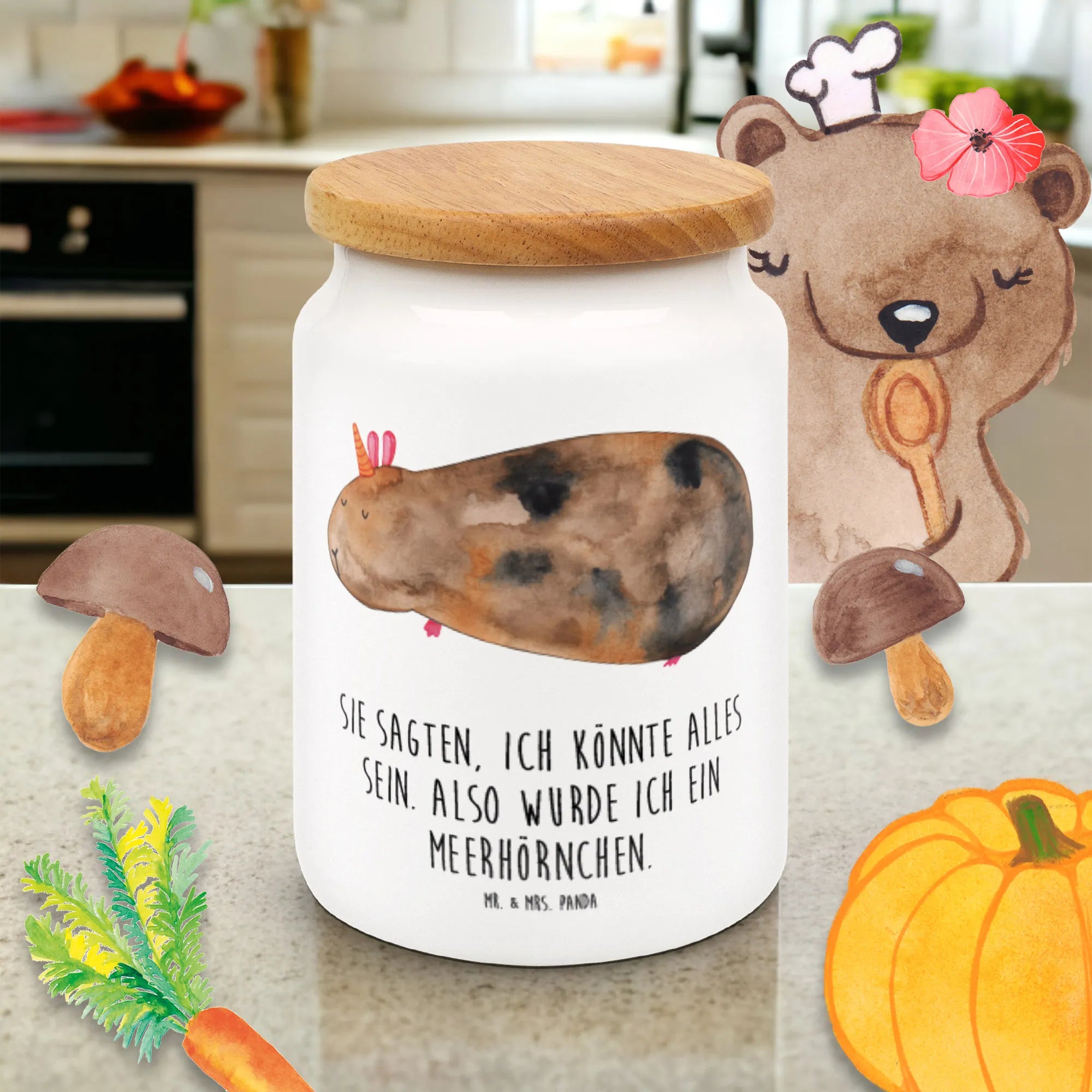 Das süße Einwohner-Meerschweinchen Motiv mit dem liebevollen Spruch "Sie sagten, ich könnte alles sein. Also wurde ich ein Meerhörnchen." bringt Freude und ein Lächeln in deinen Alltag. Jedes Motiv wurde von Mrs. Panda handgezeichnet und spiegelt die kreative Liebe wider, die in jedes Produkt fließt. Der massive Holzdeckel mit Kunststoffdichtung sorgt dafür, dass deine Lebensmittel frisch bleiben und vor Mottenschäden geschützt sind – perfekt für all deine Vorratsbehälter!