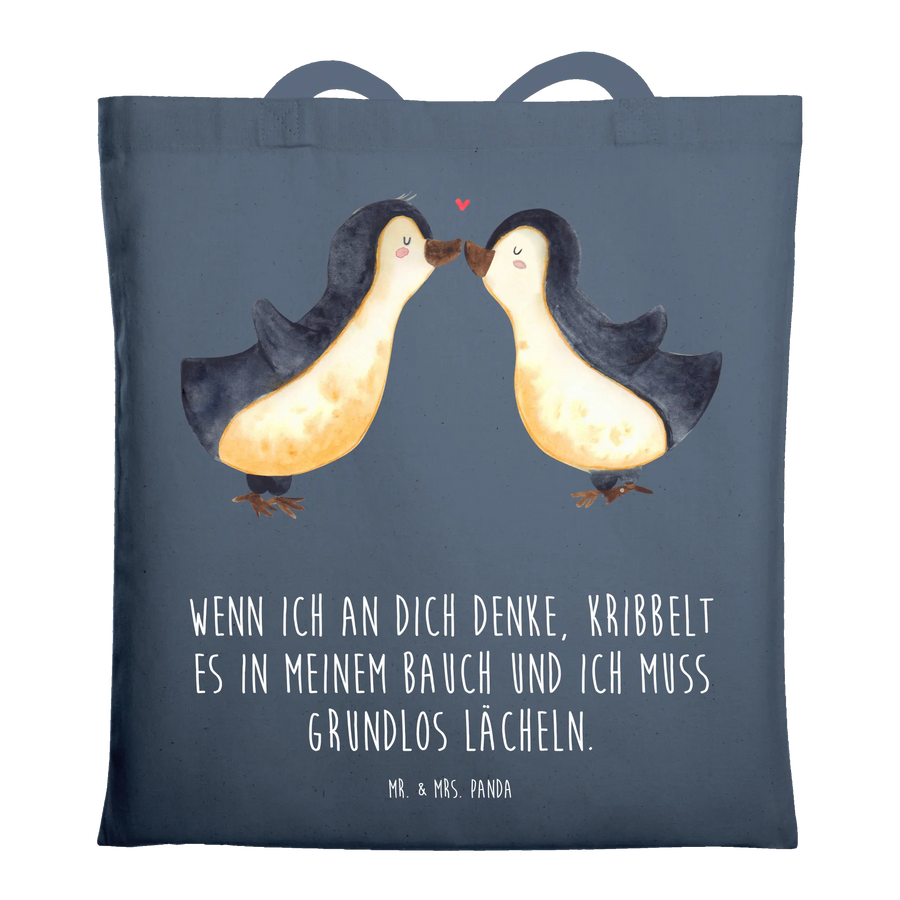 Tote bag penguins kiss - with saying - Indigo Blue