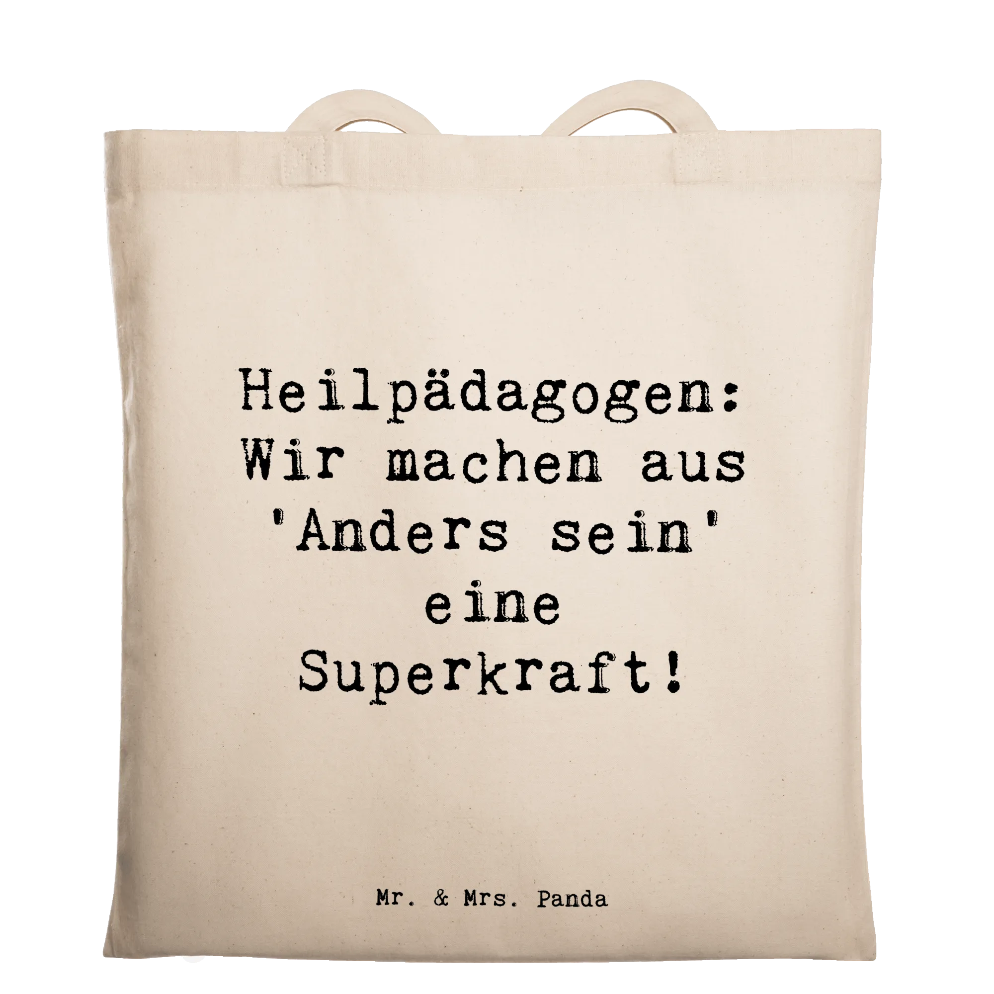 Tote bag Saying Heilpädagogen: Wir machen aus 'Anders sein' eine Superkraft! - Transparent