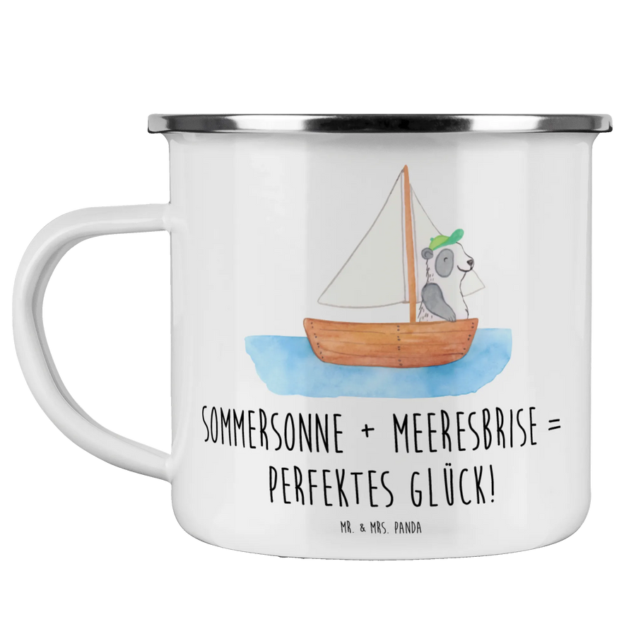 Enamel camping mug Sommersonne + Meeresbrise = perfektes Glück! - White