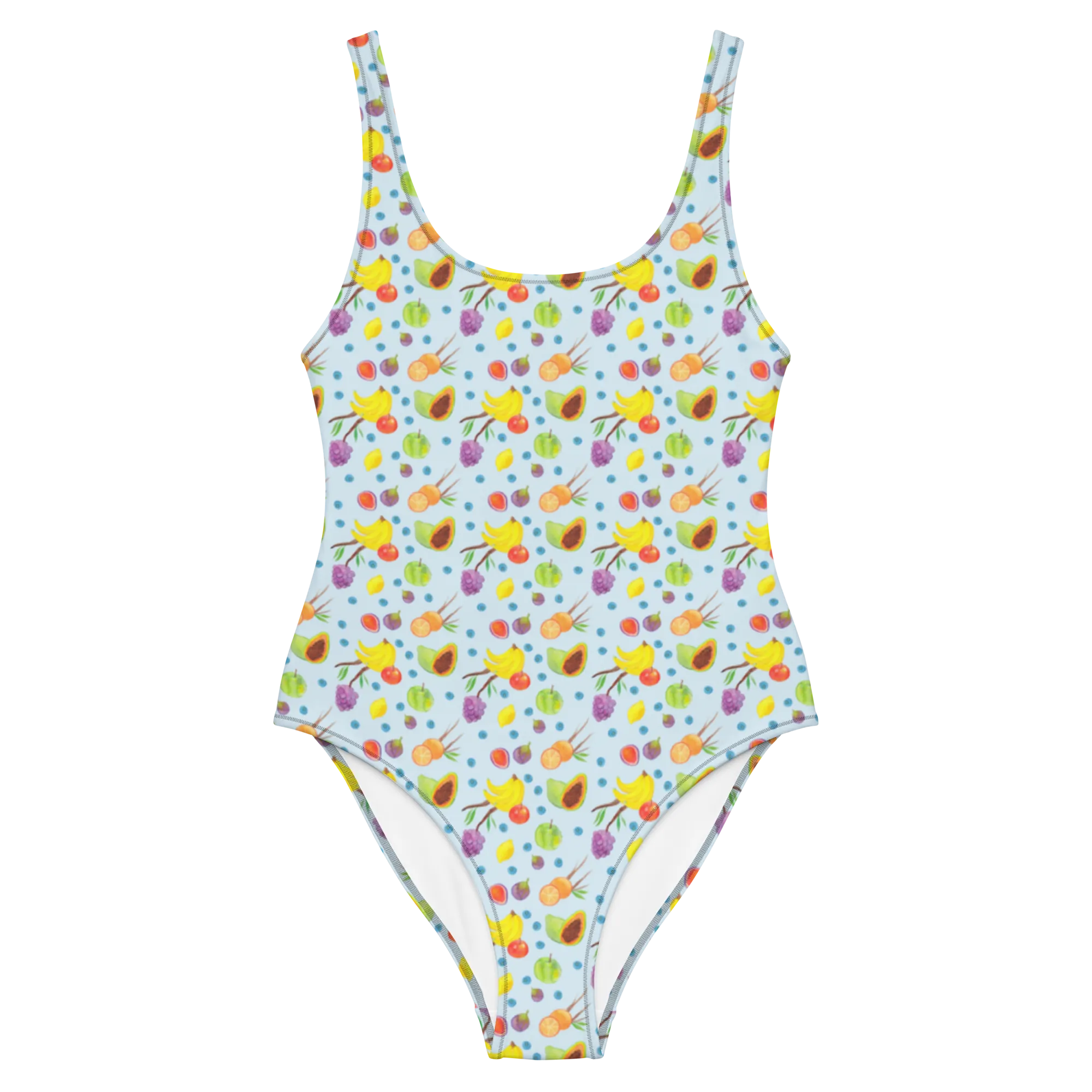 Swimsuit Fruit Basket Luxus-Bademode, Badeanzug, Bademode, Swimsuit, Badebekleidung, Rückenfreier Badeanzug, Obstkorb, Früchte, Obst Muster, Frucht Muster