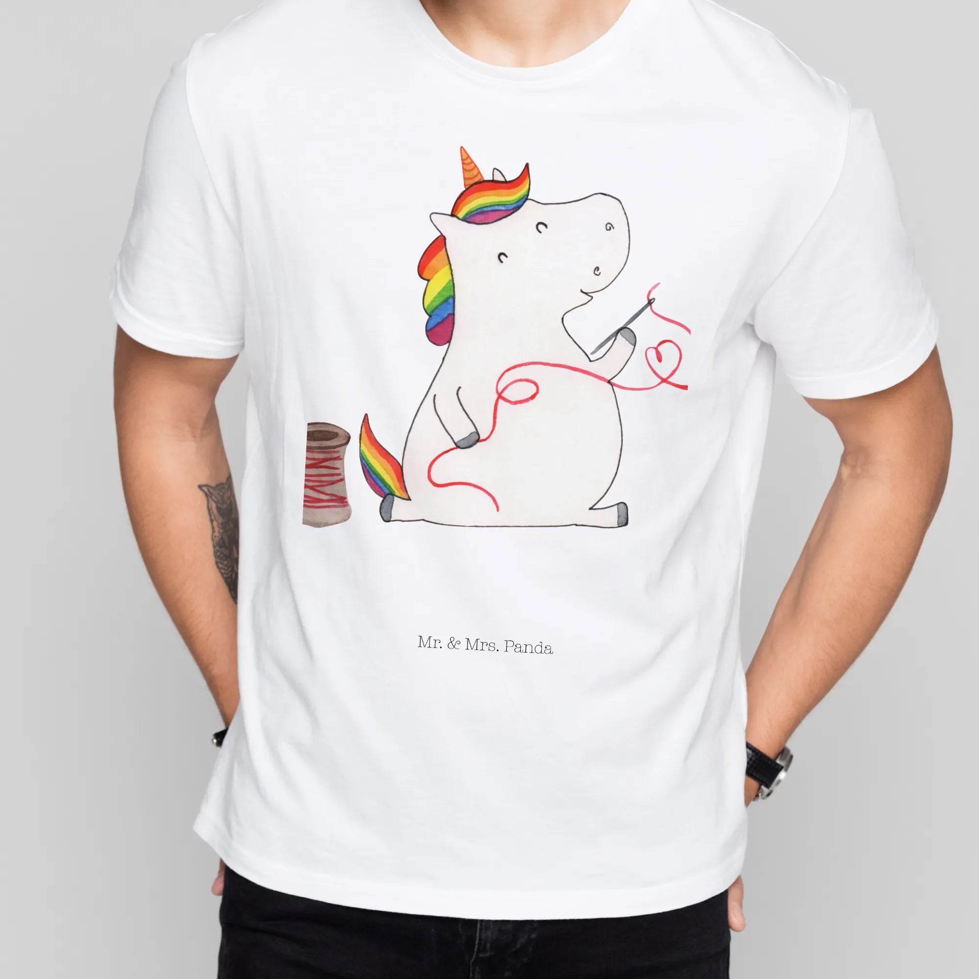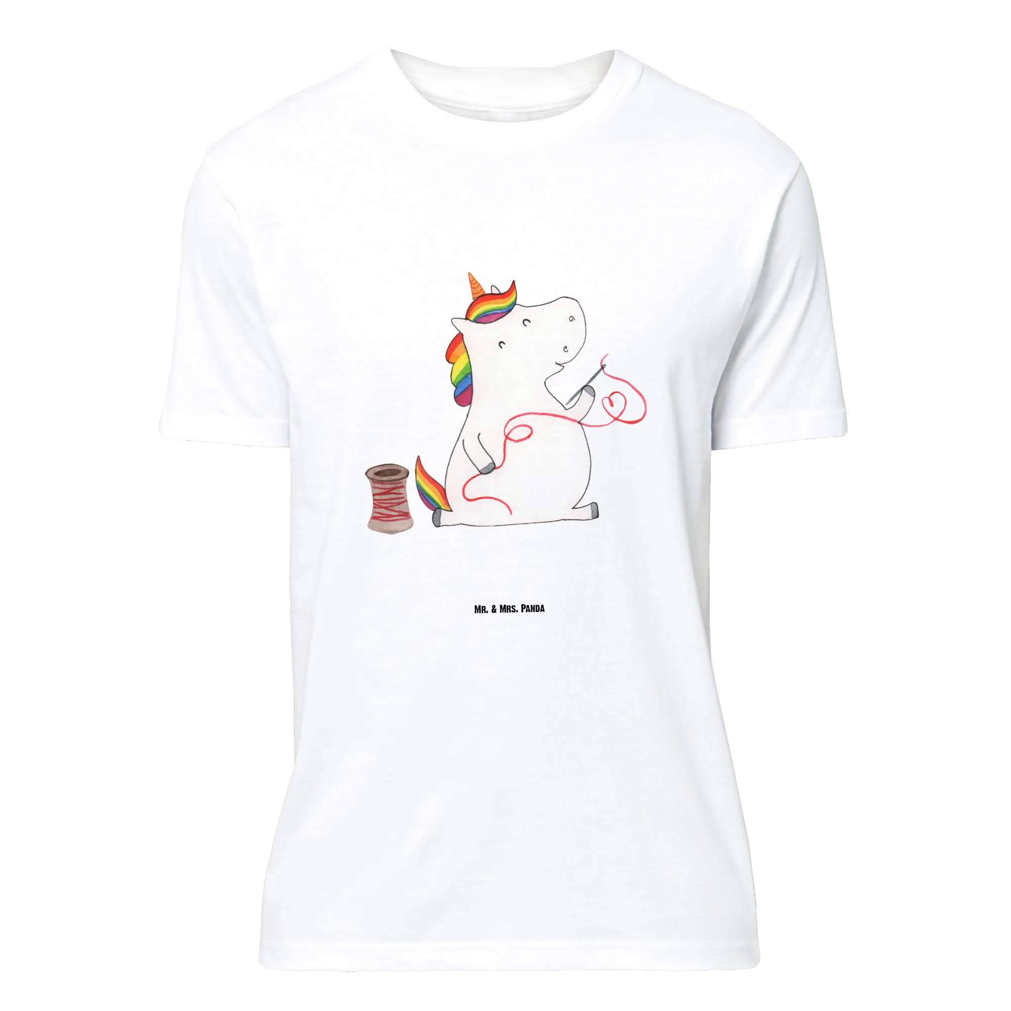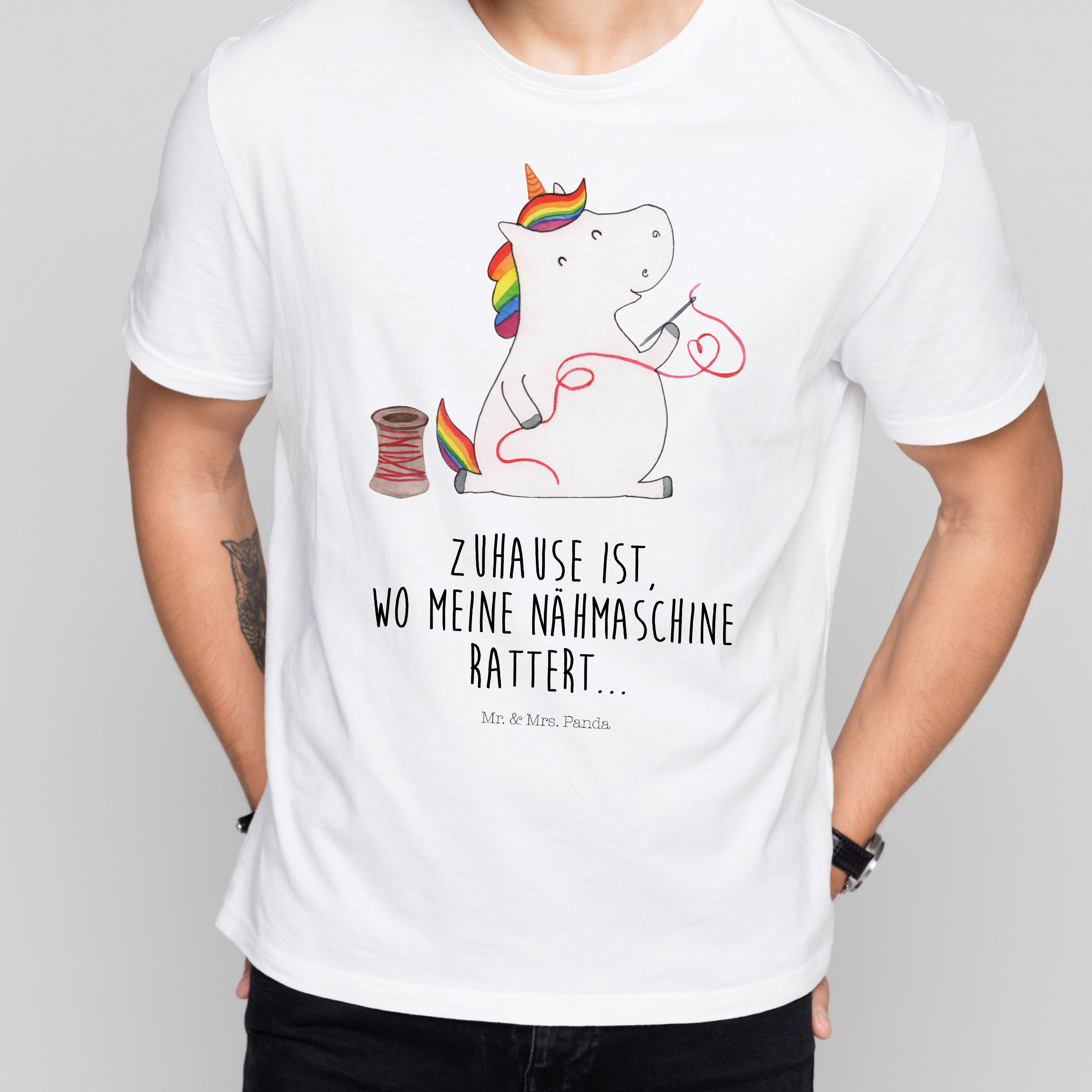 Zauberhaftes Einhorn trifft Nähleidenschaft: Du suchst ein besonderes Geschenk für eine kreative Freundin? Das Einhorn Näherin T-Shirt aus der Einhorn - Kollektion von Mr. & Mrs. Panda vereint liebevolles Design mit einem frechen Spruch: „Zuhause ist, wo meine Nähmaschine rattert.“ 🧵🦄