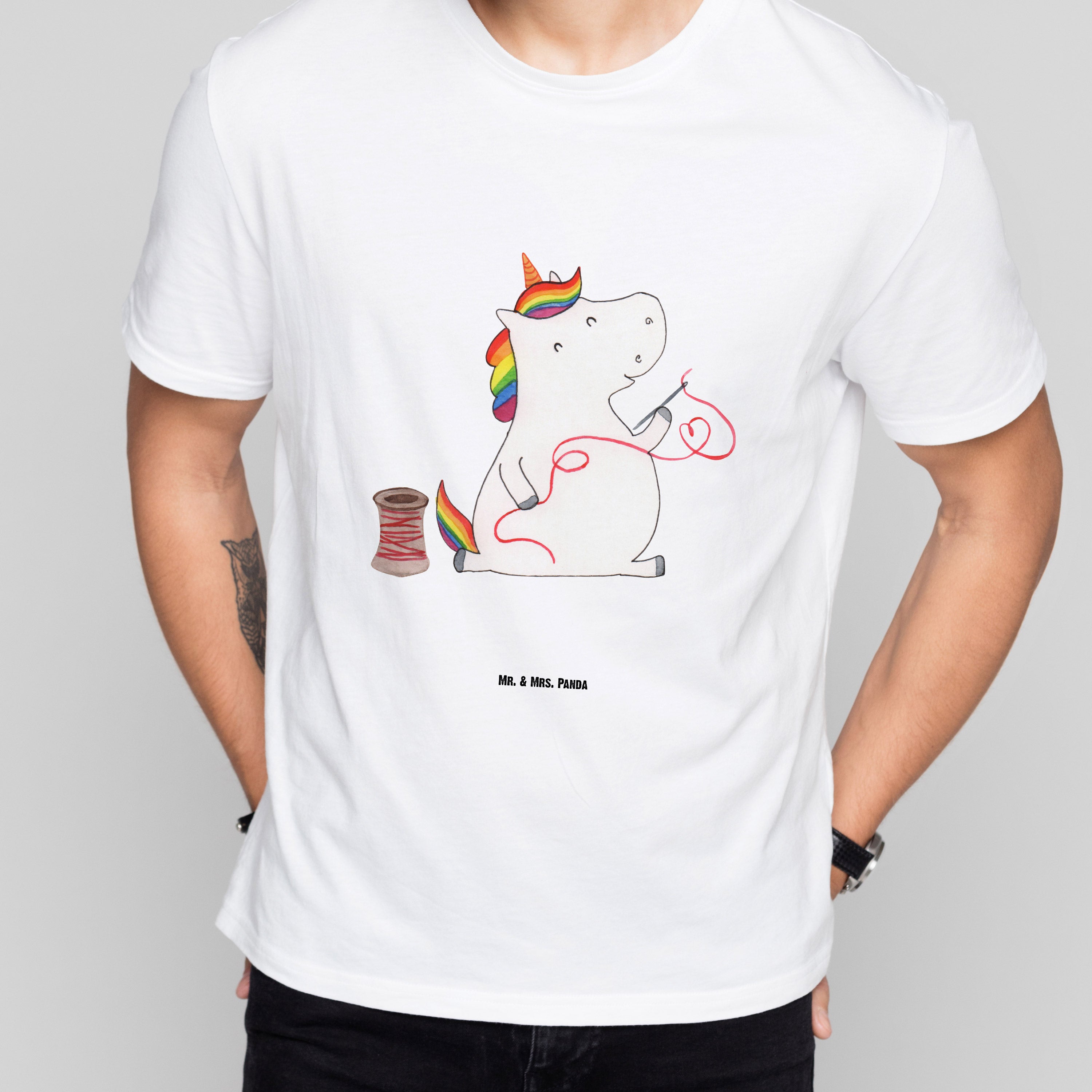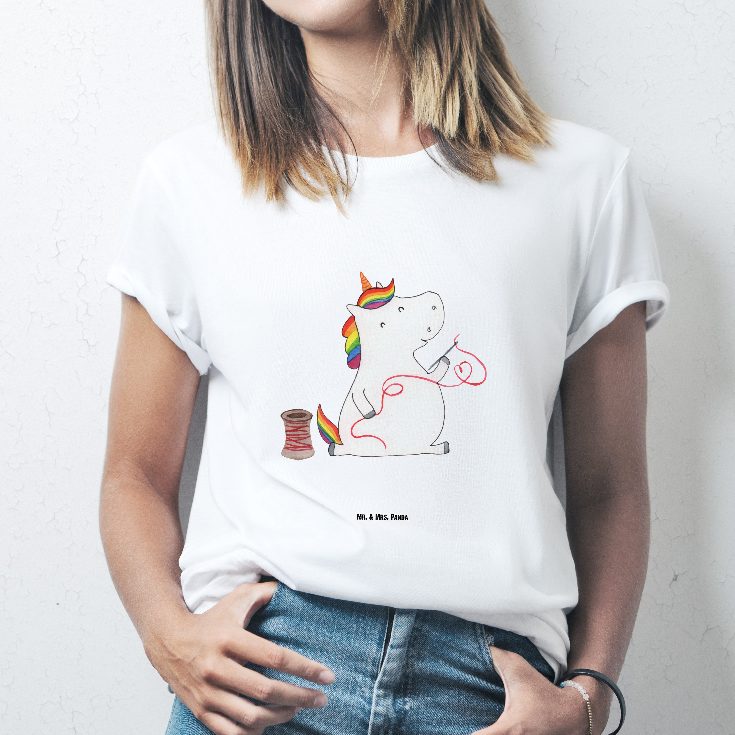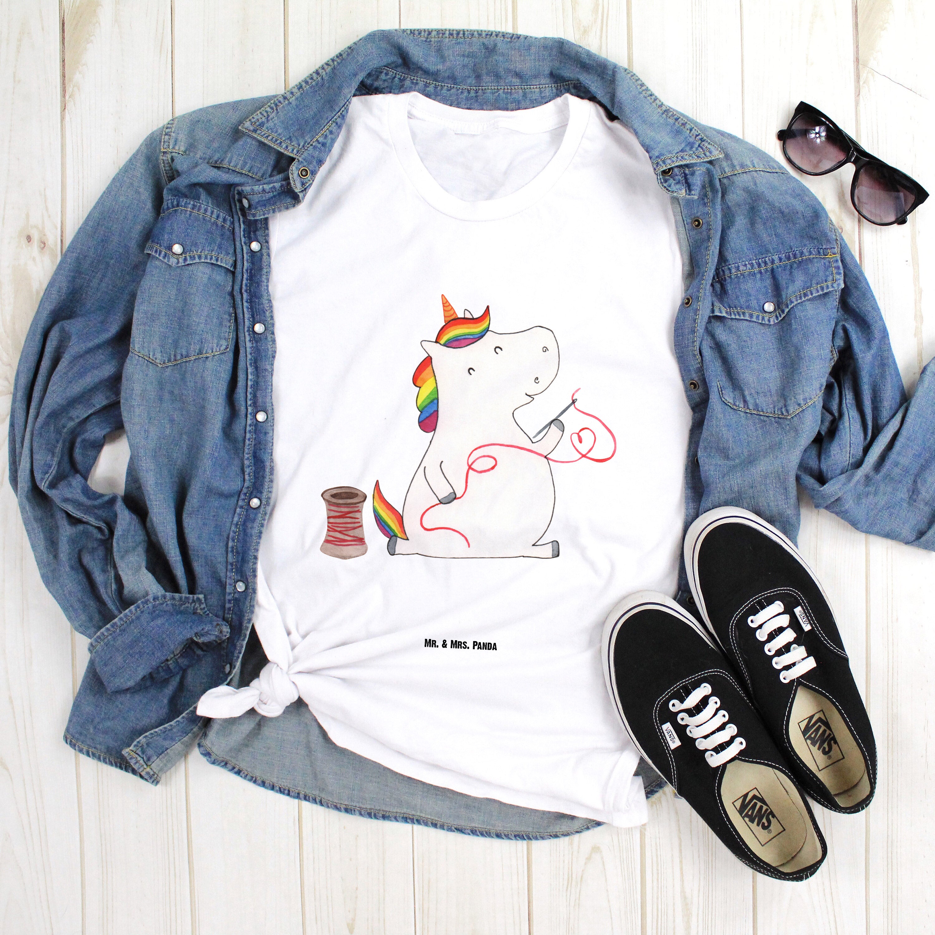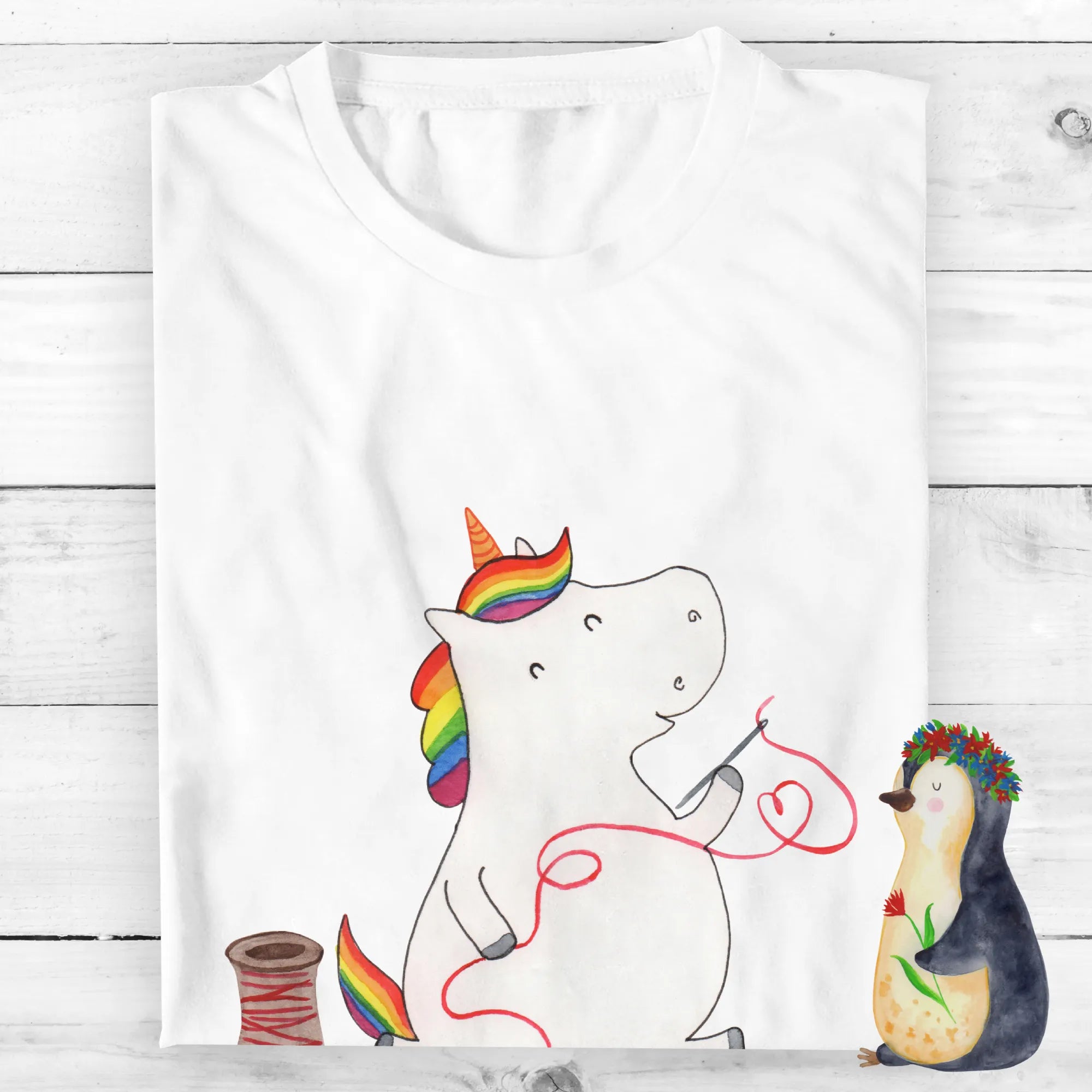 Zauberhaftes Einhorn trifft Nähleidenschaft: Du suchst ein besonderes Geschenk für eine kreative Freundin? Das Einhorn Näherin T-Shirt aus der Einhorn - Kollektion von Mr. & Mrs. Panda vereint liebevolles Design mit einem frechen Spruch: „Zuhause ist, wo meine Nähmaschine rattert.“ 🧵🦄