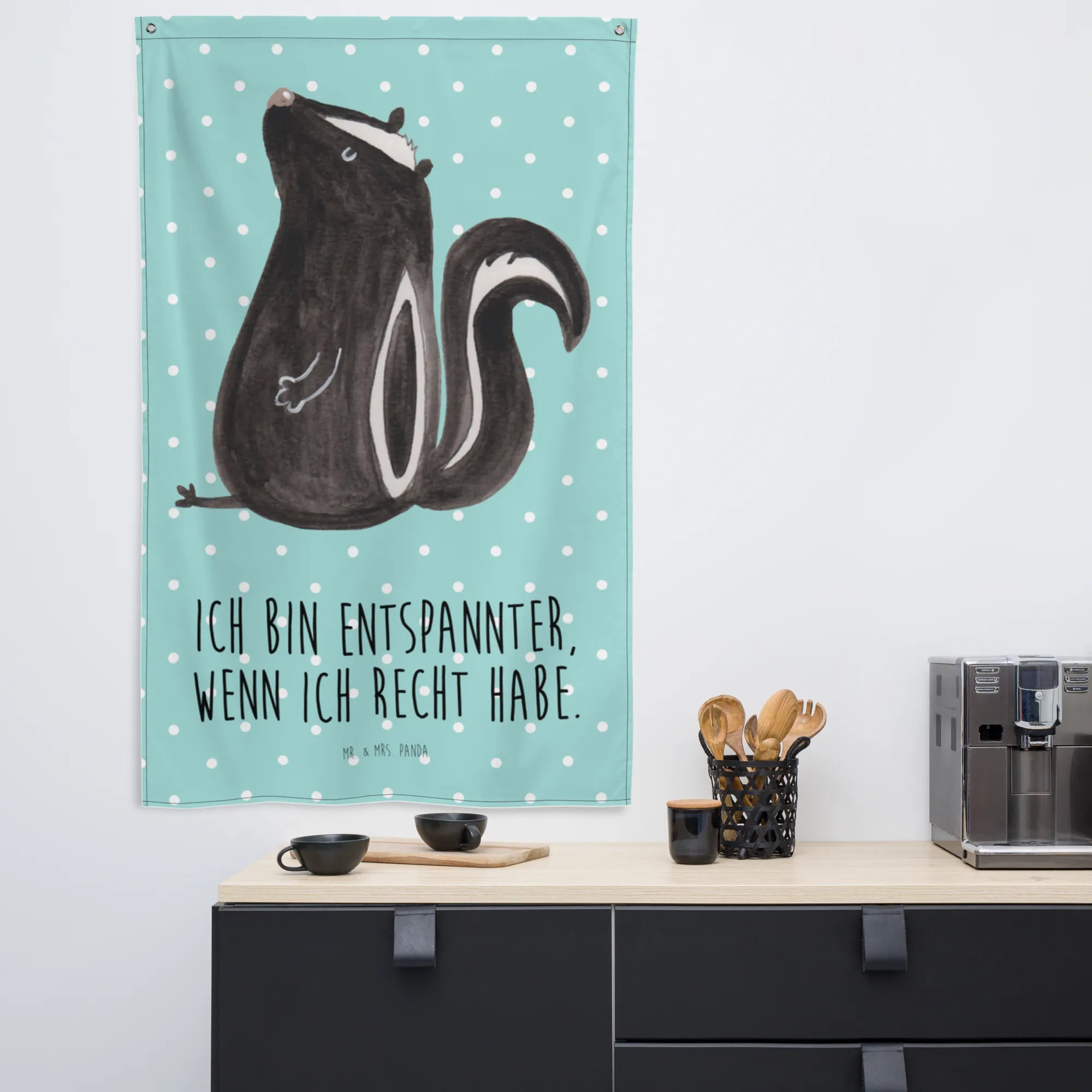 Mache dein Zuhause zu einem Ort der Inspiration mit dem Wandteppich von Mr. & Mrs. Panda! Dieser wunderschöne Wandteppich hat die Maße 1500 mm x 900 mm x 5 mm und ist aus strapazierfähiger Kunstfaser gefertigt. Für jeden Raum ist dieser Teppich ideal geeignet und bietet eine fantastische Auswahl an Sprüchen und Motiven, die das Herz höher schlagen lassen. Die lebhaften Farben machen jeden Raum fröhlicher und einladender. Der einseitige Druck und der doppelte Faltsaum sorgen dafür, dass dein neuer Wandteppich nicht nur schön aussieht, sondern auch praktisch ist. Keine Falten und einfach zu reinigen – er kann bei bis zu 30 °C in der Waschmaschine gewaschen werden. Die 2 stabilen Eisenösen ermöglichen ein unkompliziertes Aufhängen, sodass du sofort Freude daran haben kannst. Lass deinem Raum einen individuellen Charakter verleihen!