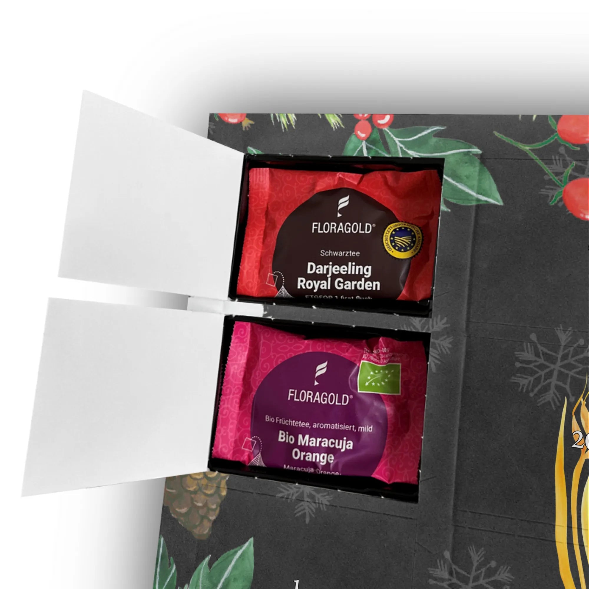 Discover the magic of the Christmas season with the exquisite Tea Advent Calendar from Mr. & Mrs. Panda. Each day reveals a heavenly surprise behind its doors, consisting of 24 individually wrapped premium tea varieties in pyramid bags. With a selection of 8 different types of tea, including fruit tea, black tea, and herbal tea, every day is an exploration into the world of flavors. This Advent Calendar is not just a source of delight but also a visual highlight. Printed with beautiful motifs and sayings, with glossy and beautifully printed sides, it features a silky matte finish that shines in any room. Whether hung or placed on a surface, this Tea Advent Calendar enhances any pre-Christmas atmosphere.
