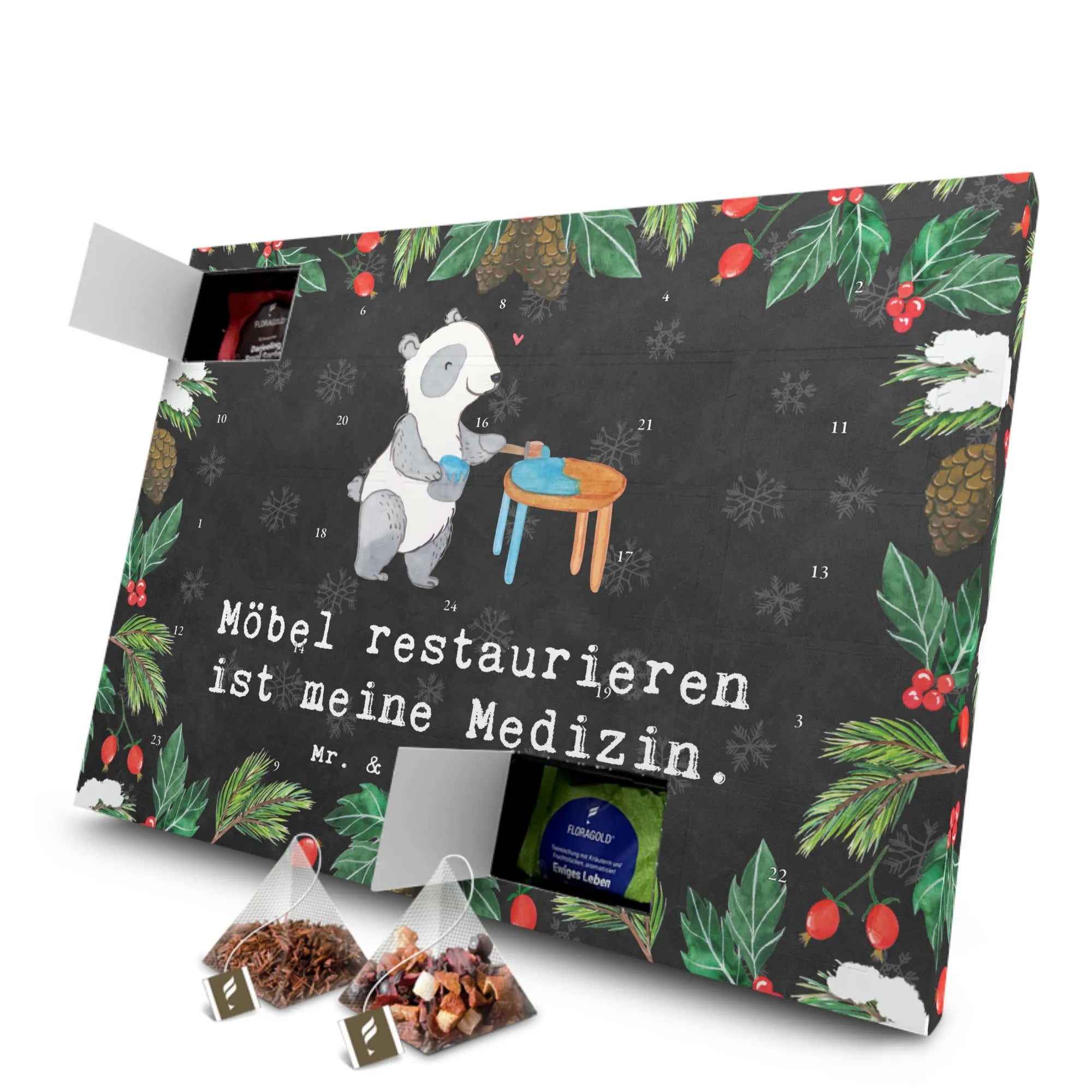 Der Tee Adventskalender "Panda Möbel restaurieren ist meine Medizin" von Mr. & Mrs. Panda ist das perfekte Geschenk für alle DIY-Fans und Liebhaber von antiken Möbeln. Verzückt wird jeder, der gerne Möbel restauriert und sich in seinem Handwerk verwirklichen möchte!