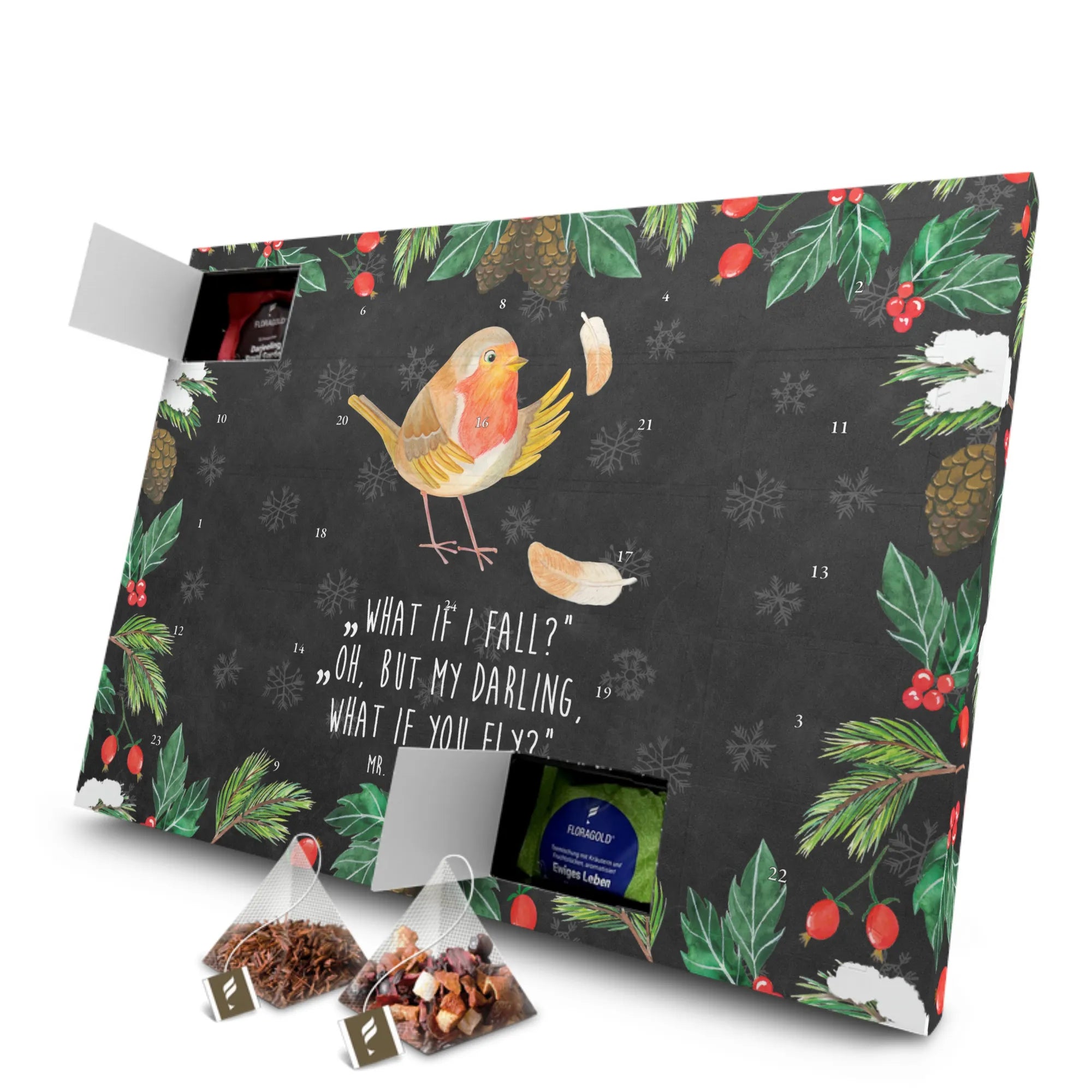 Imagine a charming little robin, boldly perched on the edge of a branch, inviting you to take a leap of faith. With its beautiful feathers ruffled by the gentle breeze, this little bird reminds us of the magic hidden in risk-taking. Our motif, 'What if I fall?' followed by the uplifting words, 'Oh, but my darling, what if you fly?' encapsulates the essence of courage and determination. It's a call to embrace our dreams and step into the unknown with hope and positivity. Every time you look at this lovely robin, let it inspire you to spread your wings and soar above the challenges that life throws at you. Remember, it's often when we let go of our fears that we discover the most extraordinary heights of our potential, accompanied by the sweet chirrup of this delightful guardian of motivation.