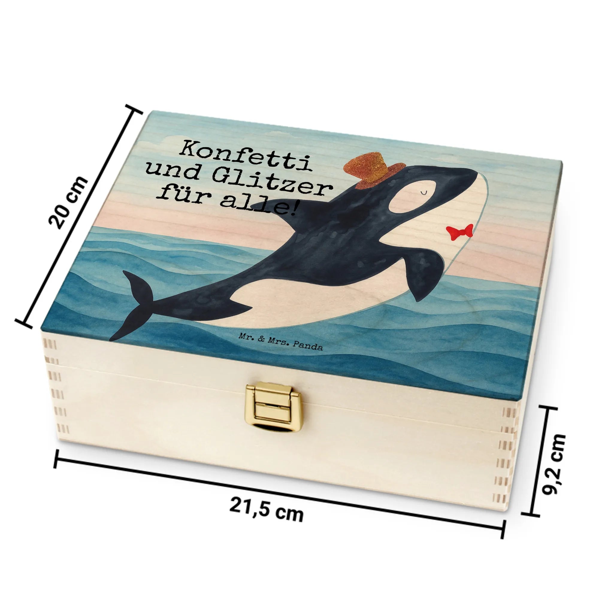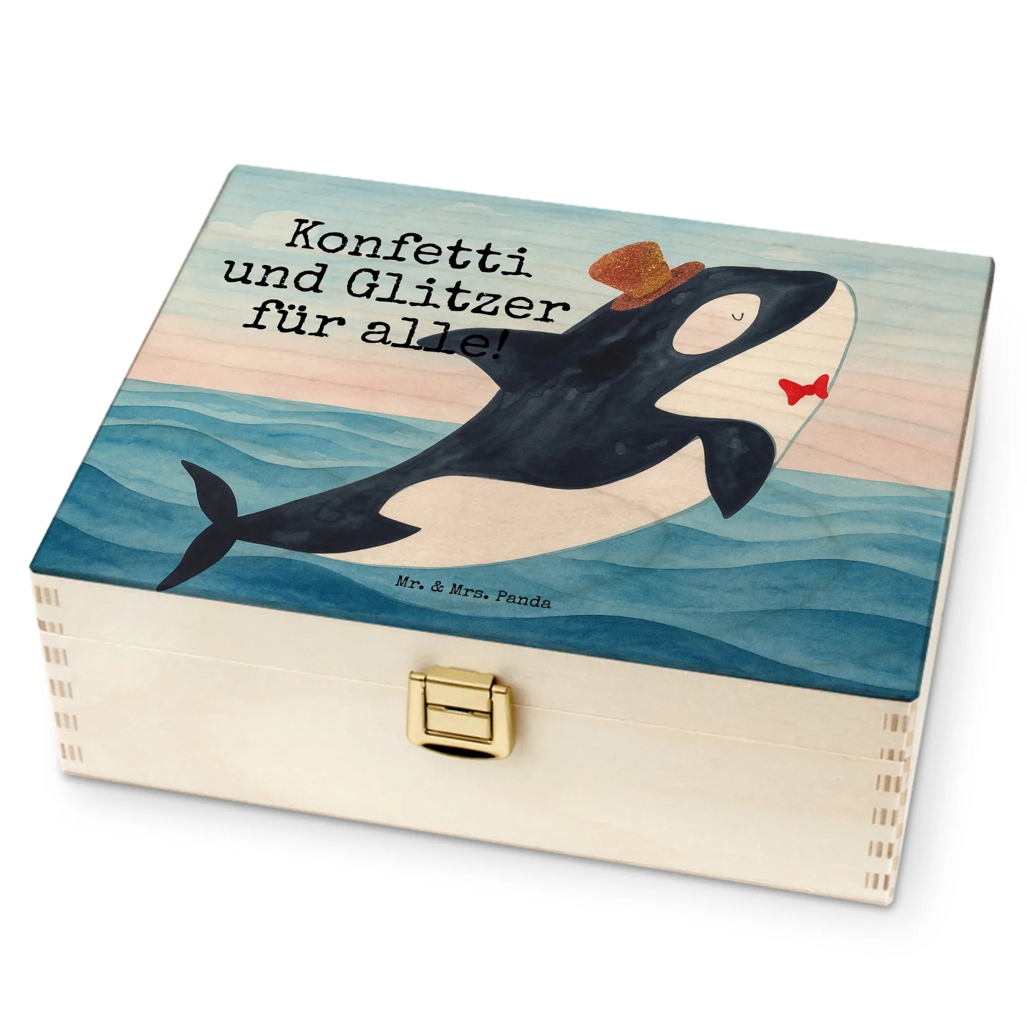Our orca is here to bring a touch of playful elegance to your celebrations. With its glossy black and white design, accented by a vibrant cylinder hat embellished with flowers, this motif radiates charm and joy. Don't forget the adorable little red fish adding an extra hint of fun! 'Konfetti und Glitzer für alle!' perfectly captures the spirit of joy and celebration, making it ideal for birthdays or festive gatherings. It's all about letting loose, enjoying those confetti moments, and igniting a spirit of togetherness.