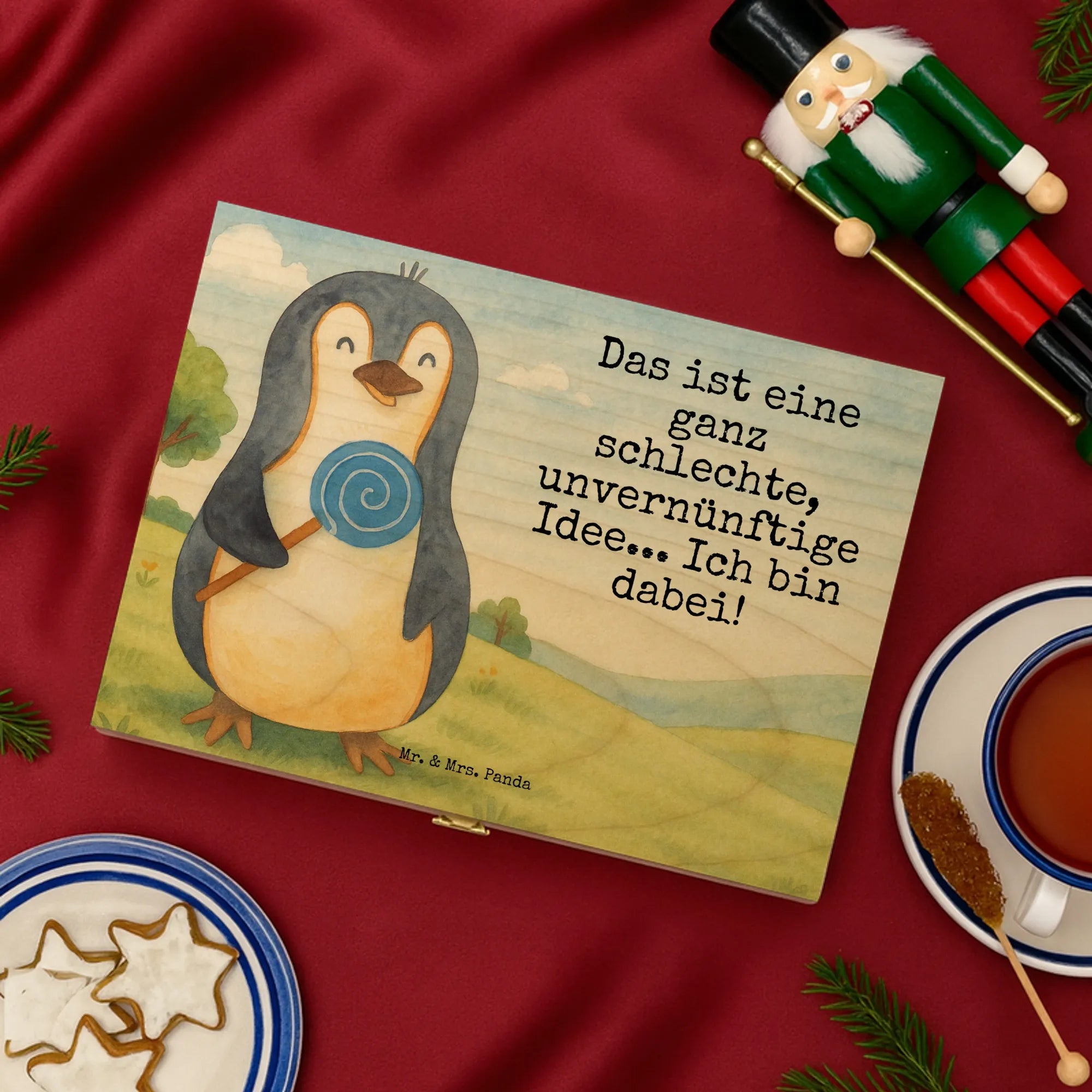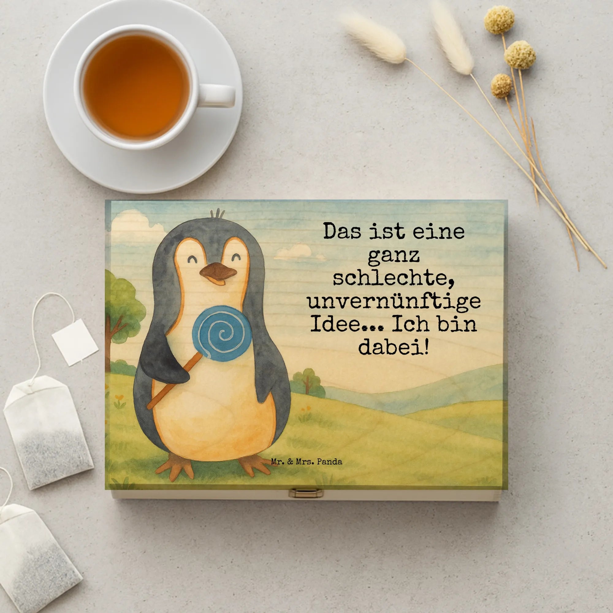 Meet the adorable little penguin who’s all about fun and sweetness! With a colorful lollipop in its hand, this charming motif brings a dose of joy and a sense of mischief to your day. Our penguin doesn’t care what the world thinks; it’s ready to take on every challenge with a cheeky grin and a candy treat. The slogan, 'That’s such a terrible idea... I’m in!' perfectly sums up this adventurous spirit who isn't afraid to break the rules when it comes to having fun. This motif invites you to embrace your inner rebel and find delight in life’s little pleasures. Each time you glance at this delightful penguin, let the sweetness of the candy and the joy of spontaneity inspire you to leap into the day with an open heart!