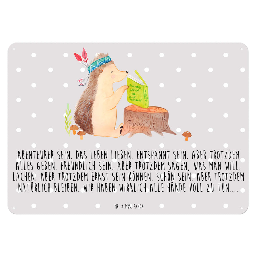 Tin sign Hedgehog feather headdress - DIN A3 - Grey Pastel