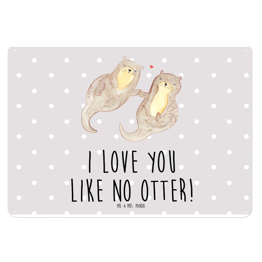 Tin sign otter holding hands - DIN A4 - Grey Pastel