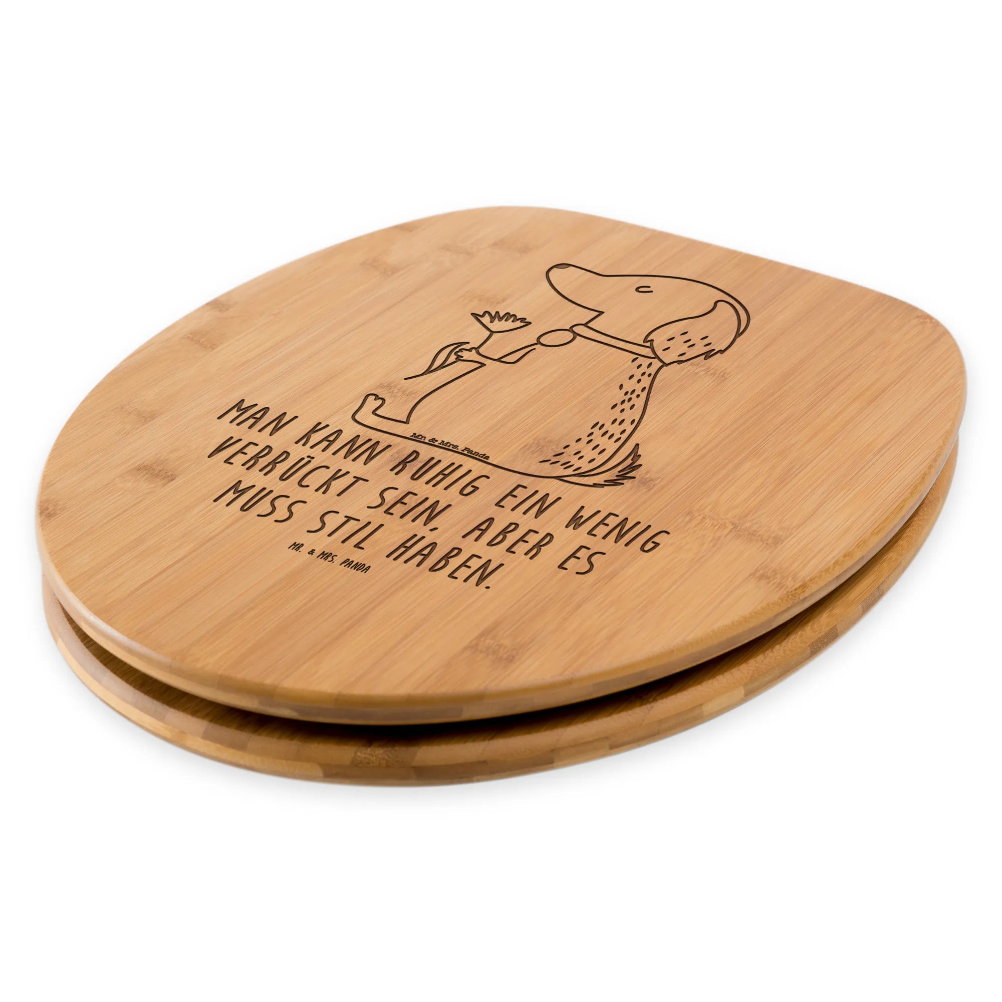 Verwandle dein Badezimmer mit dem charmanten WC Sitz von Mr. & Mrs. Panda! Dieser Toilettensitz mit seinen süßen Motiven und Sprüchen sorgt für eine fröhliche Atmosphäre. Mit seinen Abmessungen von 430 mm x 370 mm x 50 mm passt er perfekt auf jedes Euro-WC-Becken. Erhältlich in braunem Bambus Holz oder weißem MDF Holz, bietet er nicht nur hohen Komfort, sondern bleibt auch bei kühlen Temperaturen angenehm warm. Die professionelle Verarbeitung und der hochwertige UV-Druck sorgen dafür, dass du lange Freude an diesem Produkt hast. Die Universalscharniere und das enthaltene Befestigungsmaterial machen die Montage besonders einfach. Halte deinen WC Sitz hygienisch, indem du ihn regelmäßig mit einem feuchten Tuch und milder Seife abwischst. Dieser Klo-Sitz ist ein wahrer Blickfang für dein Bad!