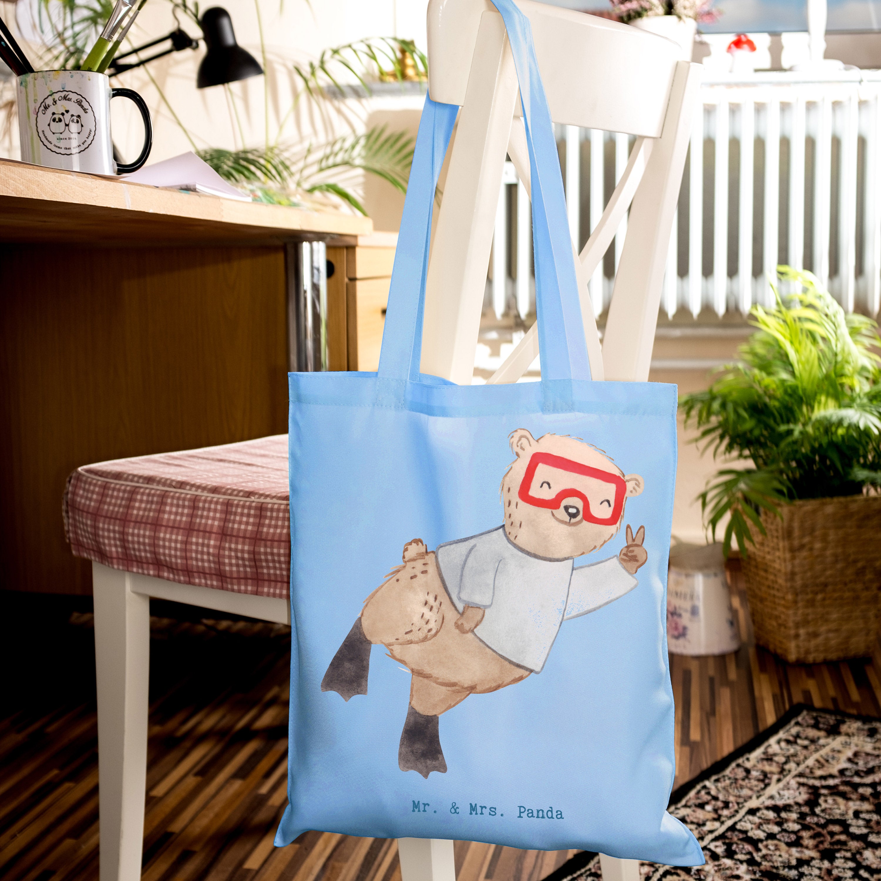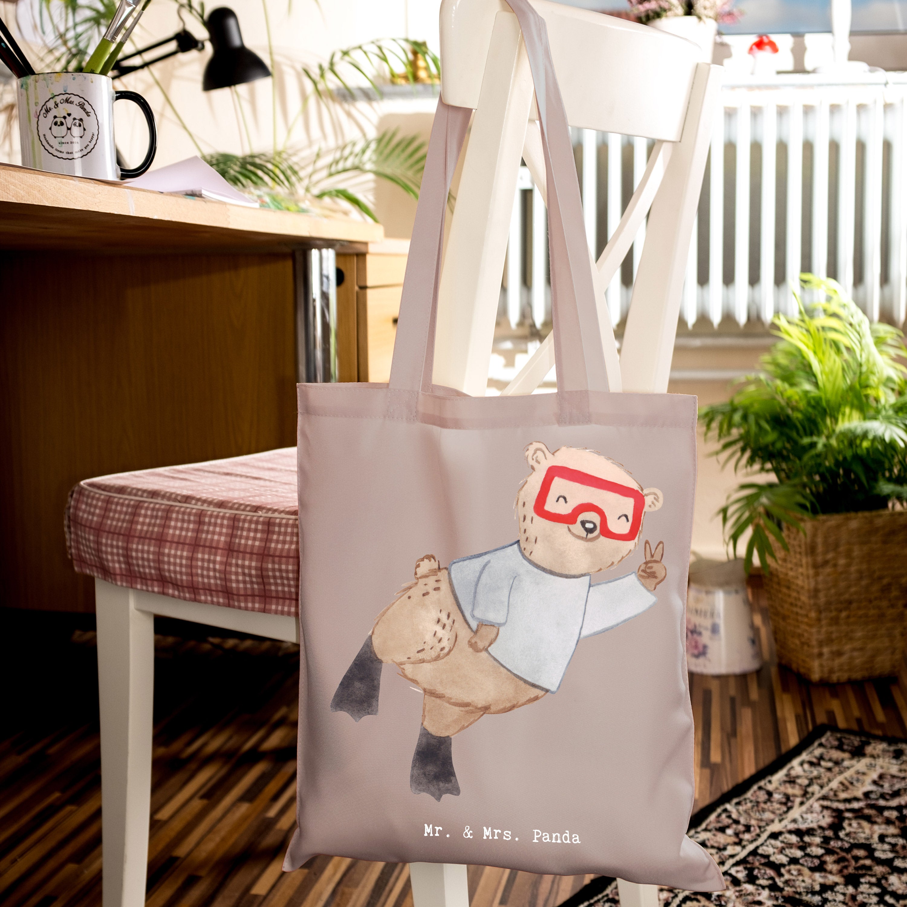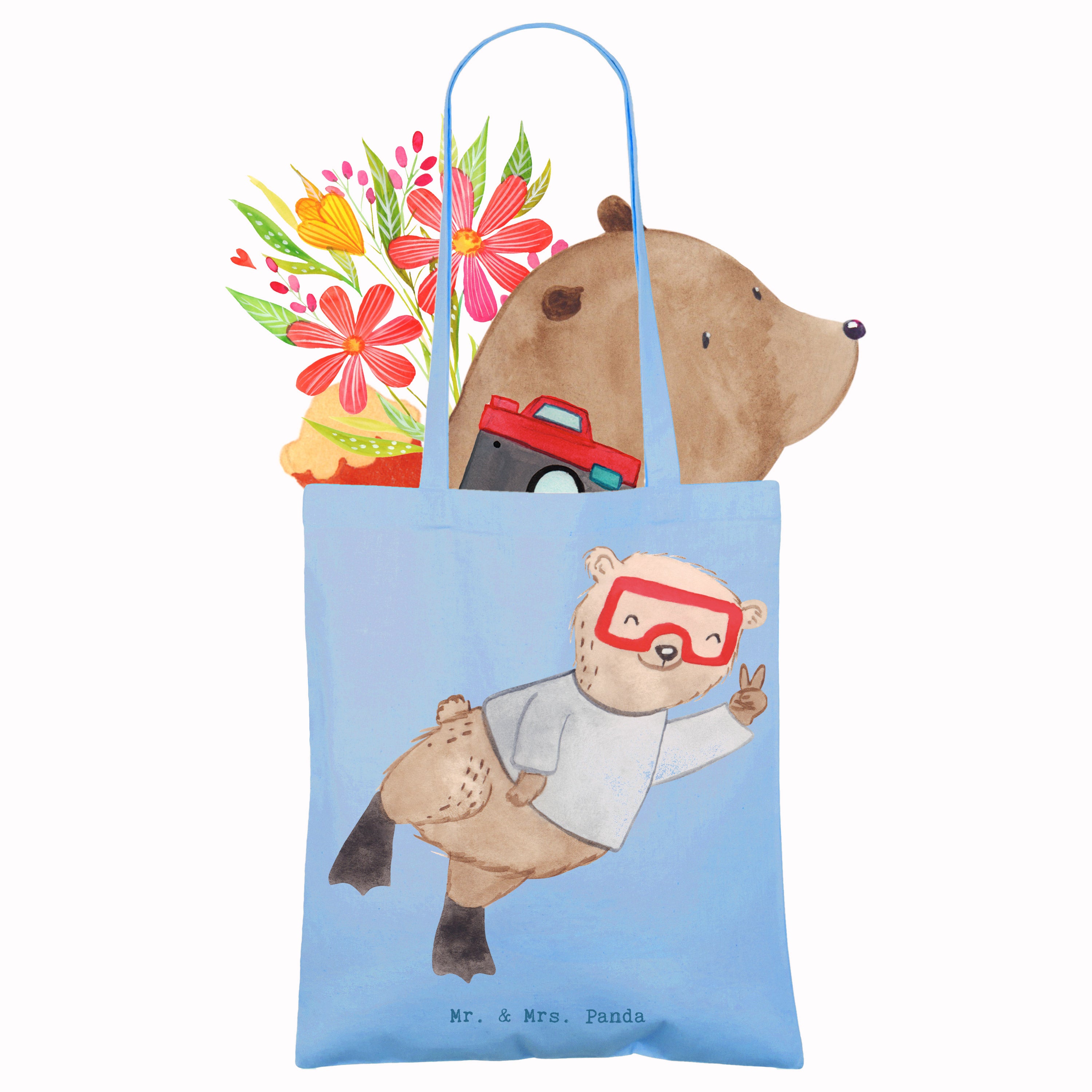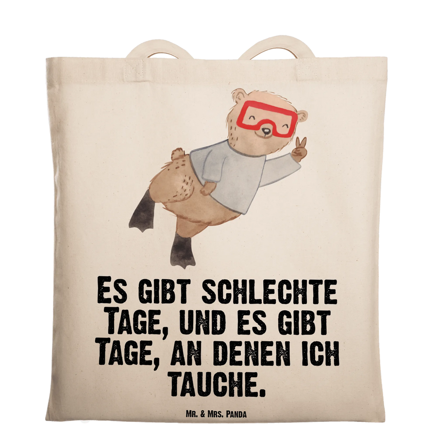 Das ideale Geschenk: Verschenke diese Tragetasche als Dankeschön für Tauchlehrer, als Geschenk für Hobby-Sportler, als Mitbringsel nach dem Tauchkurs oder als lustige Aufmerksamkeit für Freunde, die das Tauchen lieben. Die Hobby & Sport Kollektion von Mr. & Mrs. Panda bietet viele weitere Motive für jeden Anlass.