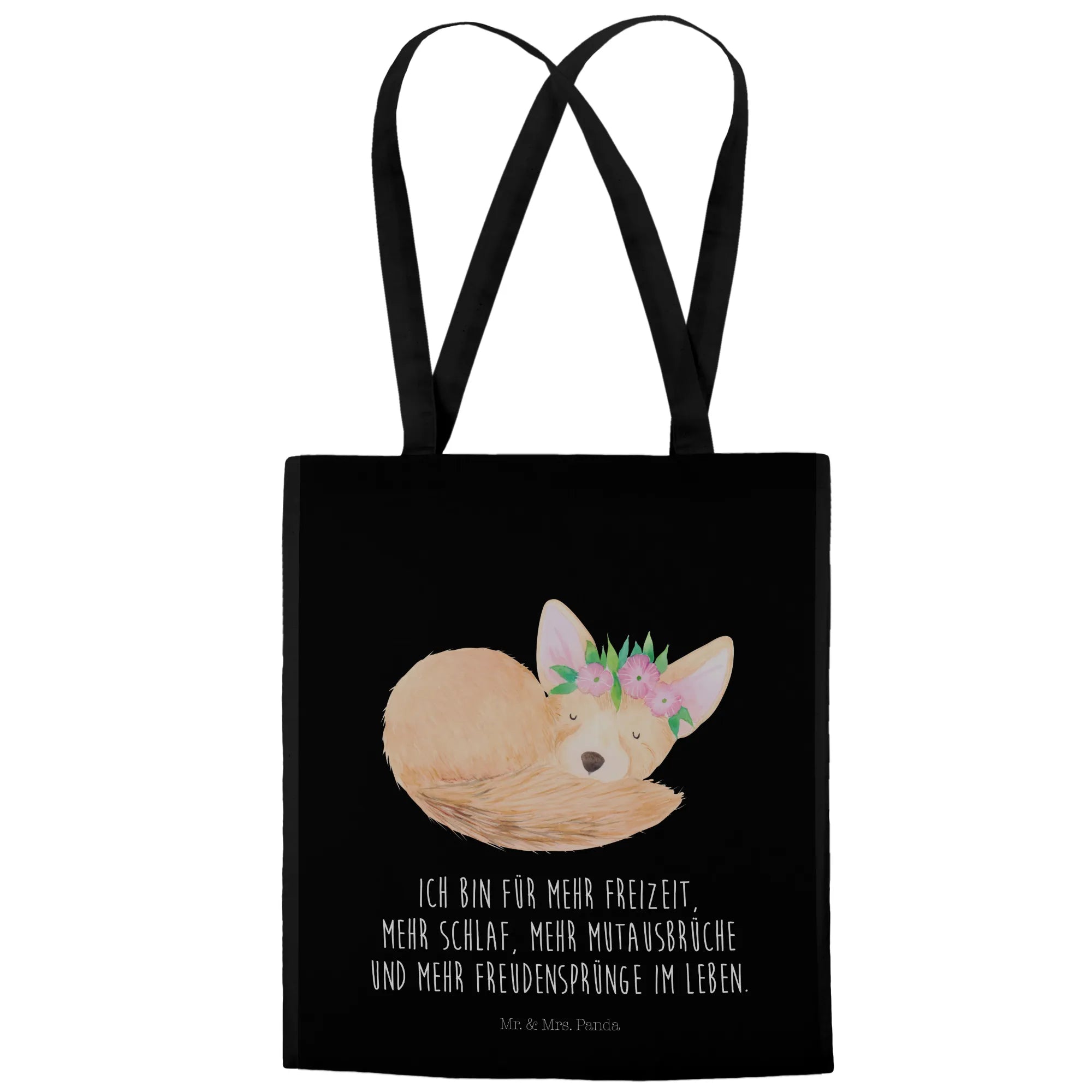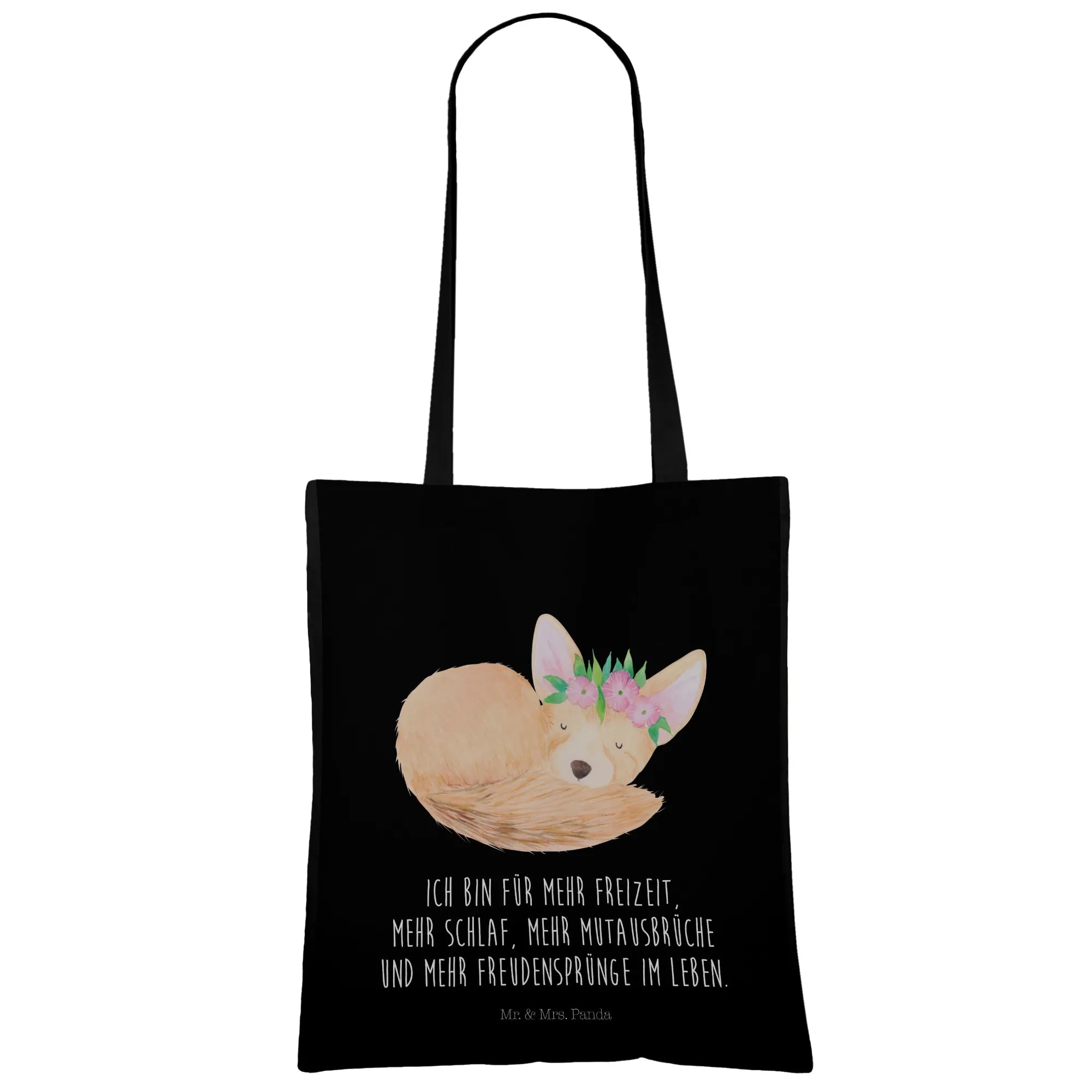 Meet our charming desert fox, a true treasure from the heart of Africa. With its head crowned in a delightful wreath of flowers, this motif beautifully represents a life where relaxation meets vibrance. Our slogan, 'Ich bin für mehr Freizeit, mehr Schlaf, mehr Mutausbrüche und mehr Freudensprünge im Leben,' captures the essence of embracing leisure, adventure, and joy. Imagine this fox basking in the golden sun, nestled among blooming flowers, bringing a sense of peace and happiness. Let this enchanting creature inspire you to carve out moments for yourself, to dream, explore, and make delightful memories! It's a gentle reminder that life is a beautiful tapestry of experiences—each moment worthy of a joyful leap!