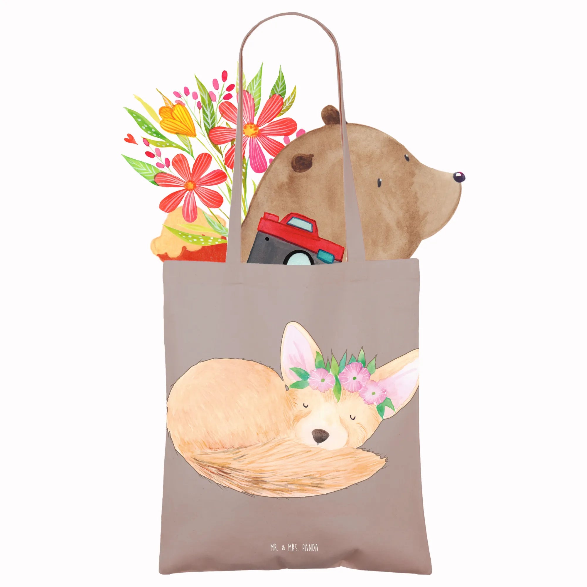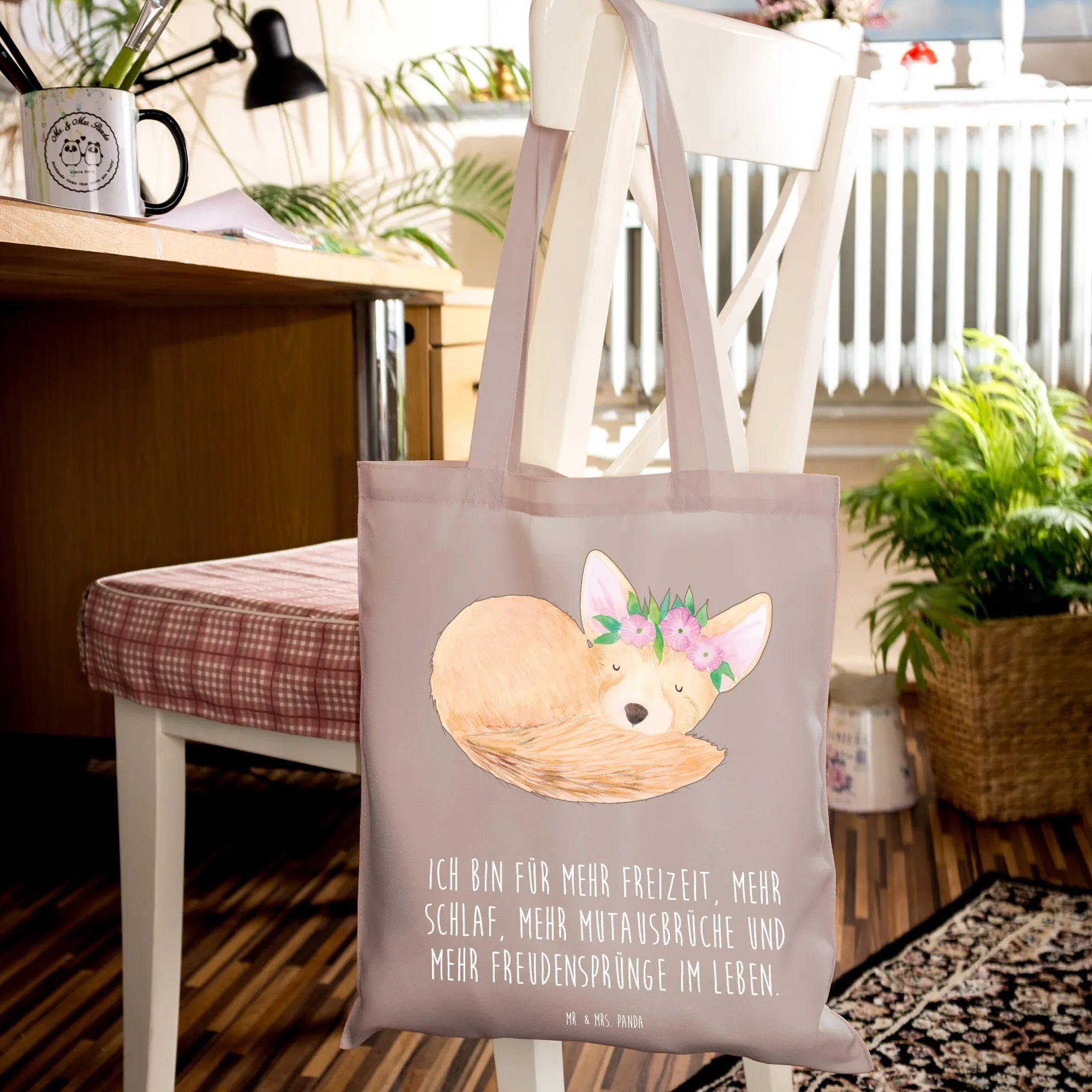 Tote bag desert fox Flower - with saying - Transparent