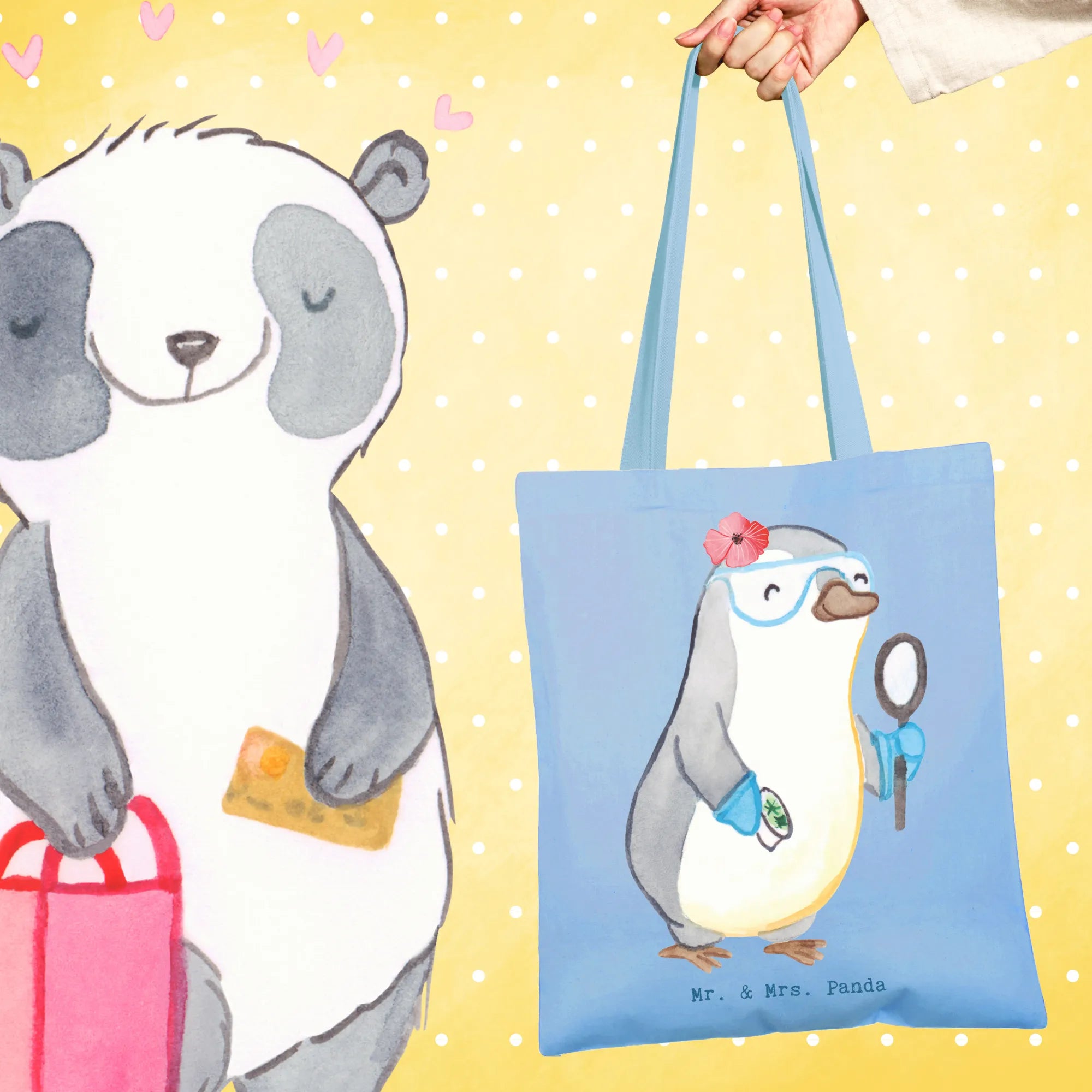 • Let your personality shine with our adorable Mr. & Mrs. Panda tote.