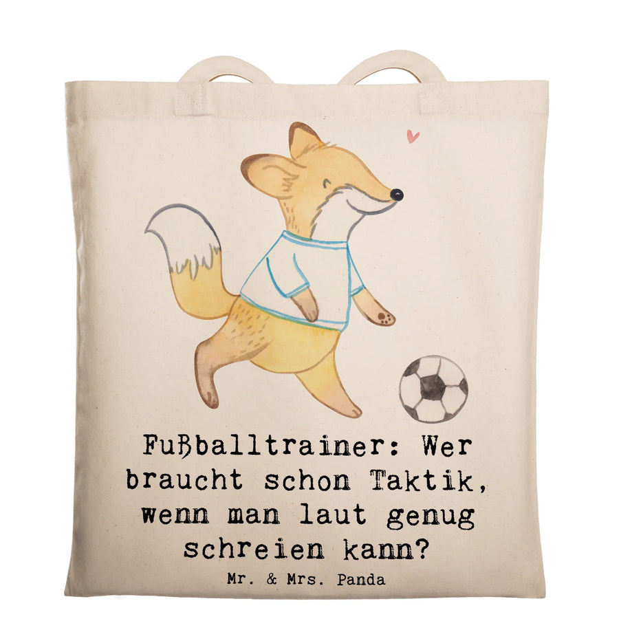 Mr. & Mrs. Panda Tragetasche "Fußballtrainer" – das perfekte Geschenk für alle, die am Spielfeldrand leben und lieben. Mit dem witzigen Spruch „Fußballtrainer: Wer braucht schon Taktik, wenn man laut genug schreien kann?“ trifft diese Tasche genau den Nerv von Jugendtrainern, Übungsleitern und Ehrenamtlichen.