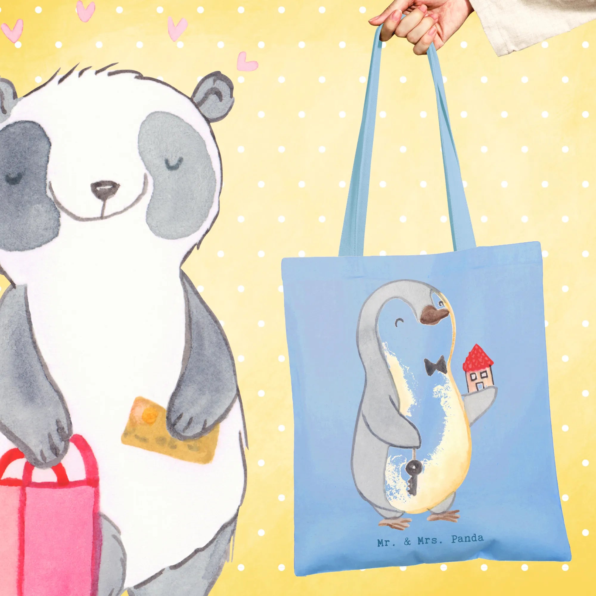 Das handgezeichnete Aquarell-Motiv von Mrs. Panda strahlt Wärme und Kreativität aus. Die ruhige Himmelblau-Farbe des Hintergrunds wirkt beruhigend und passt wunderbar zum Berufsbild. Die Tragetasche ist vielseitig einsetzbar: als Einkaufstasche, Shopper, Büchertasche oder als Begleiter für den Strandtag – immer ein Hingucker und praktisch im Alltag.