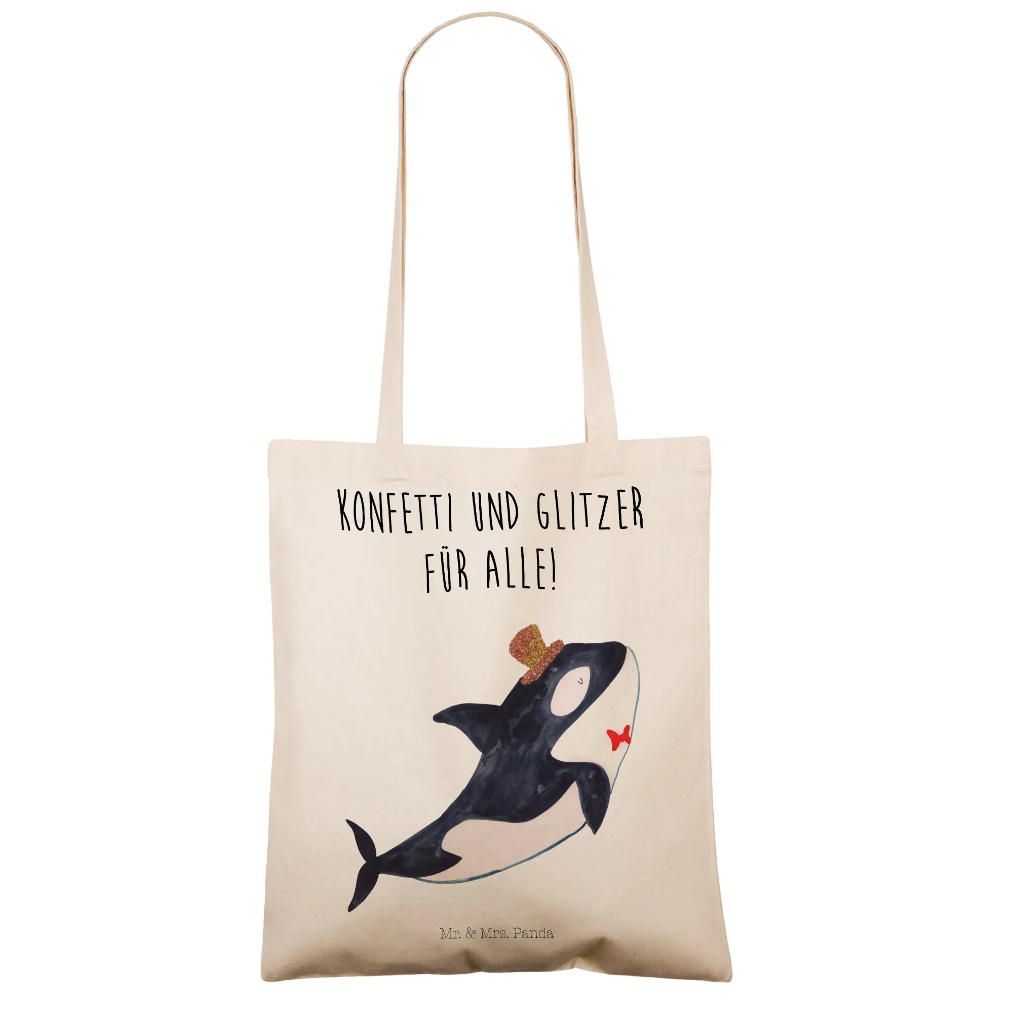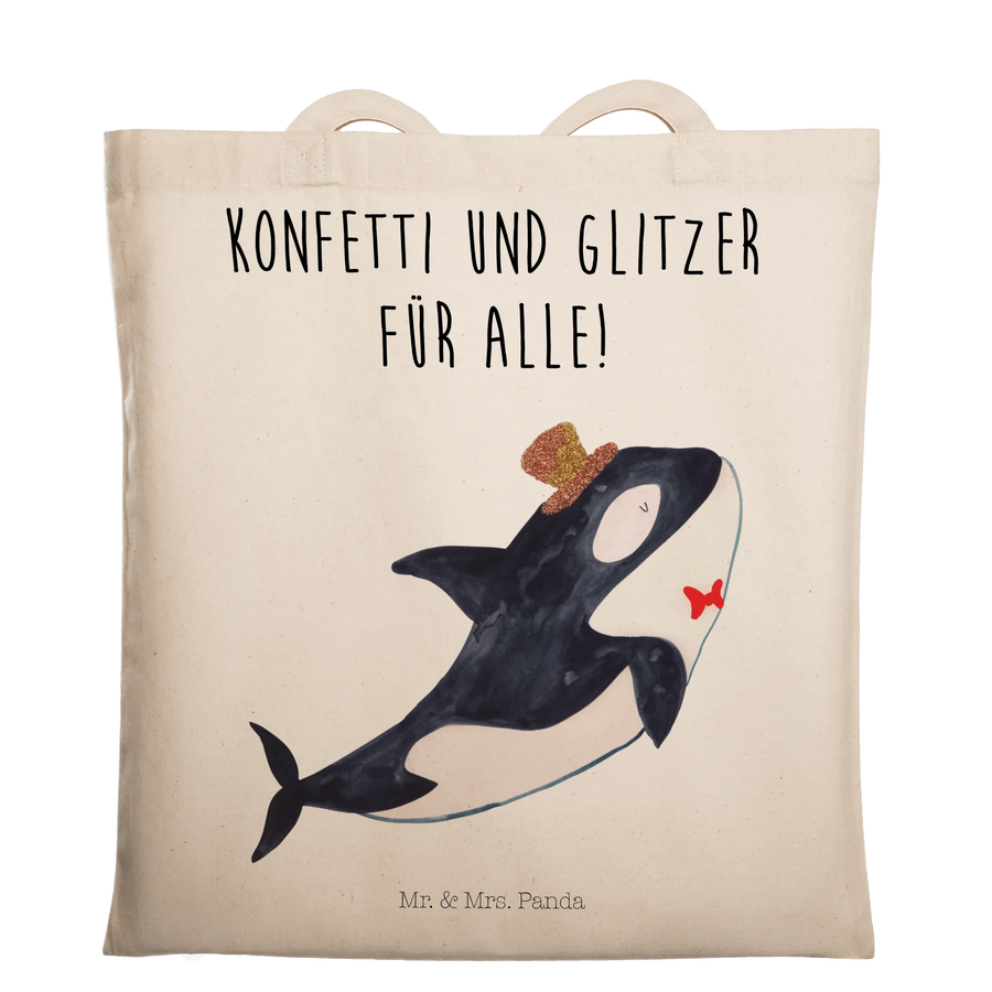 Introducing our playful orca, the perfect symbol of celebration! With its white belly and sleek black back, it wears a lovely floral cylinder hat that brings a smile to your face. Alongside a cheeky little red fish, it's ready to brighten up any occasion. The saying 'Konfetti und Glitzer für alle!' embodies the joy and glitter of life’s special moments. Whether for a birthday bash or just a gathering, this orca motif will remind you that every celebration deserves a little sparkle!