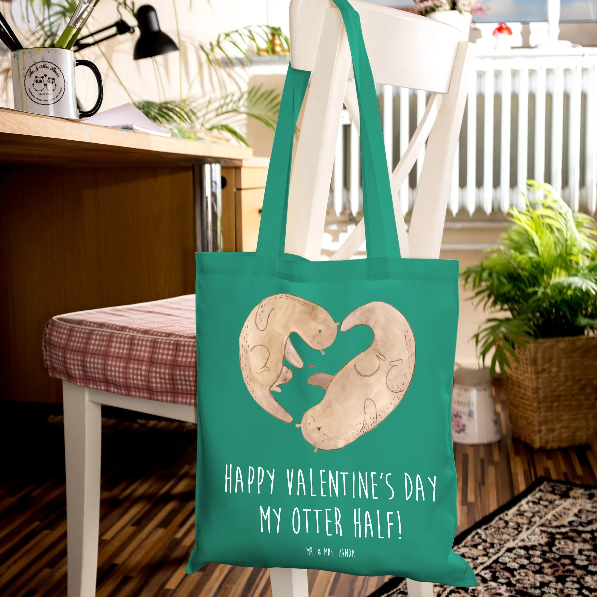 Tote bag otter valentine - with saying - Mint