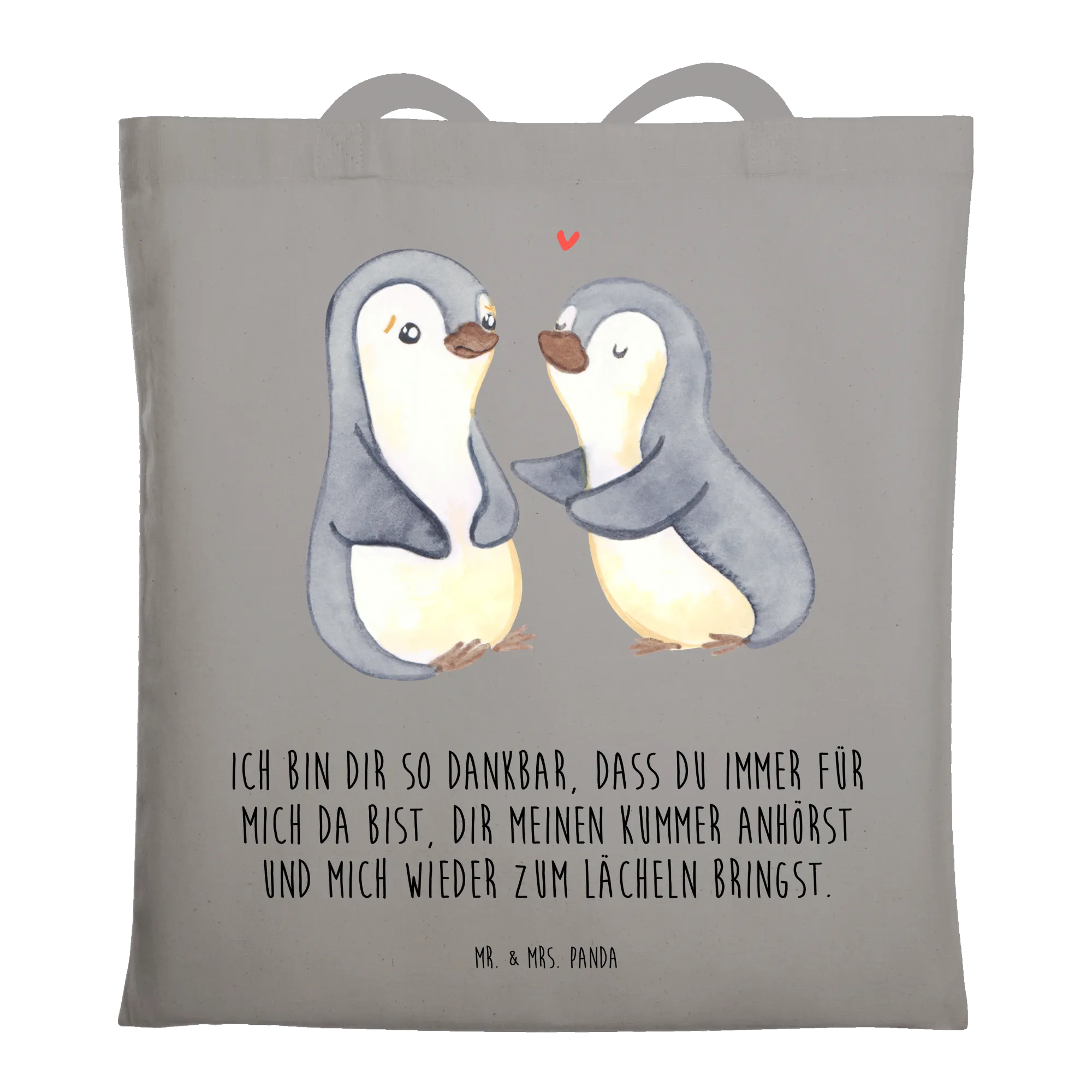 Let the enchanting comfort penguins find a special place in your heart and home. These lovable little creatures, leaning into each other, capture the essence of companionship and affection beautifully. Their gentle demeanor, framed in soft gray, pristine white, and a hint of warm yellow, evokes warmth and serenity. The saying, 'Ich bin dir so dankbar, dass du immer für mich da bist, dir meinen Kummer anhörst und mich wieder zum Lächeln bringst,' resonates with anyone who values the support of loved ones. Be it Valentine’s Day, a wedding anniversary, or any occasion that calls for a celebration of love, these penguins make a thoughtful gift that speaks volumes. Each day, let them remind you of the importance of being there for each other—the strength and comfort that such bonds bring to our lives.