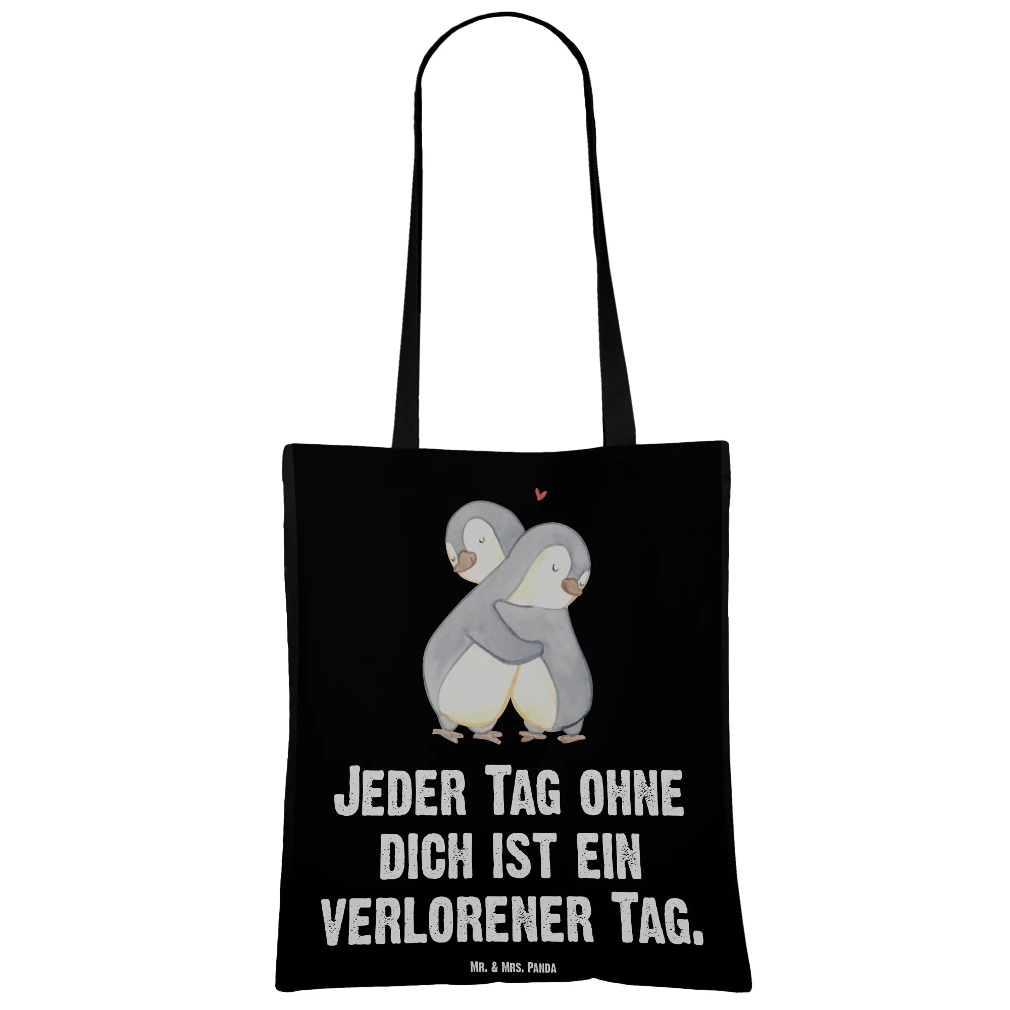 Tote bag penguins Cuddle - mit Spruch - Schwarz