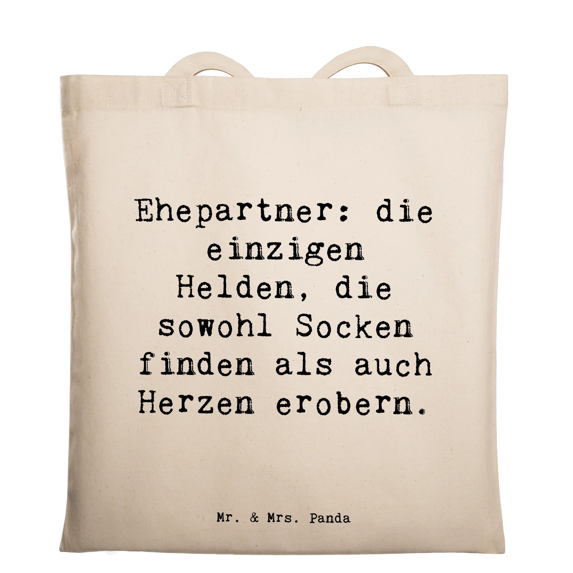 Tote bag Saying Ehepartner: die einzigen Helden, die sowohl Socken finden als auch Herzen erobern. - Transparent