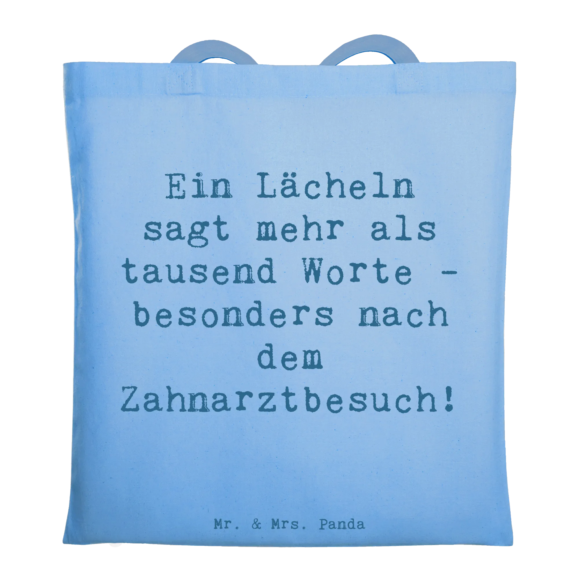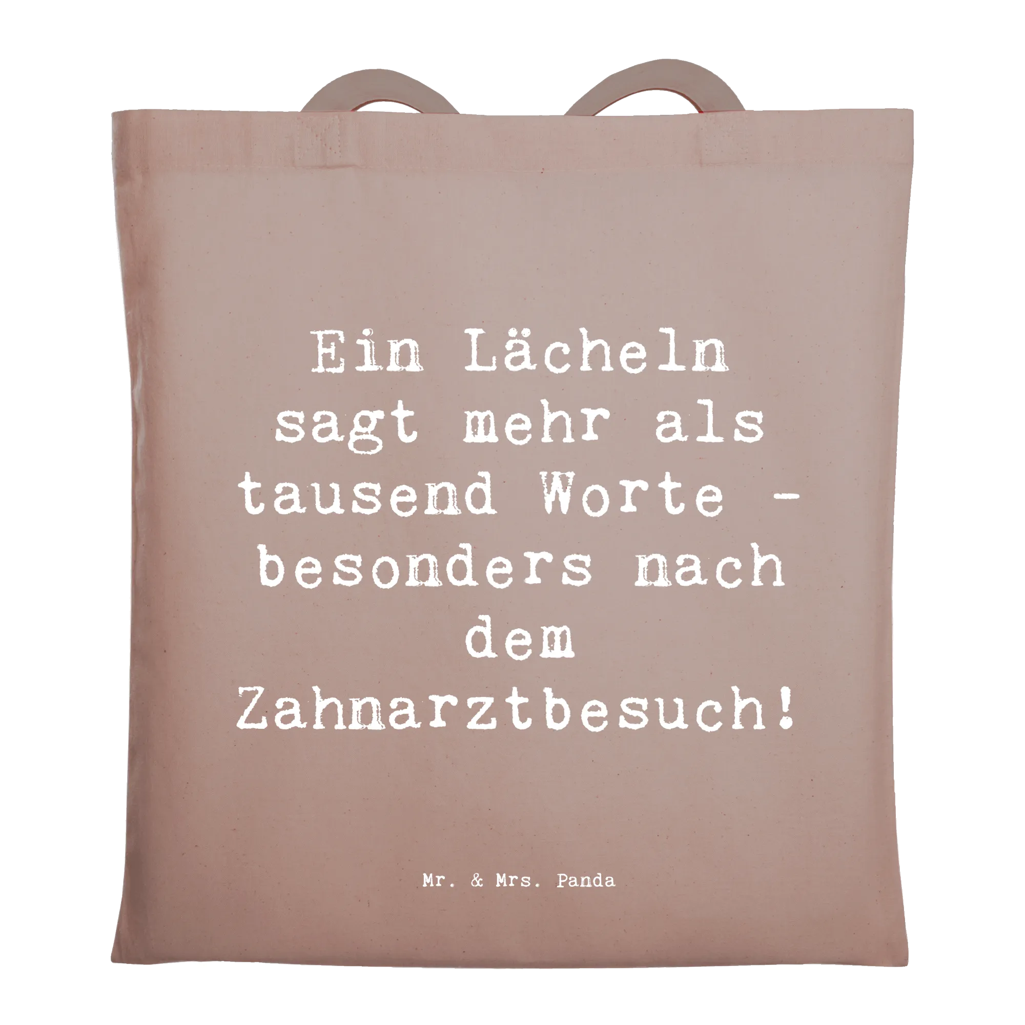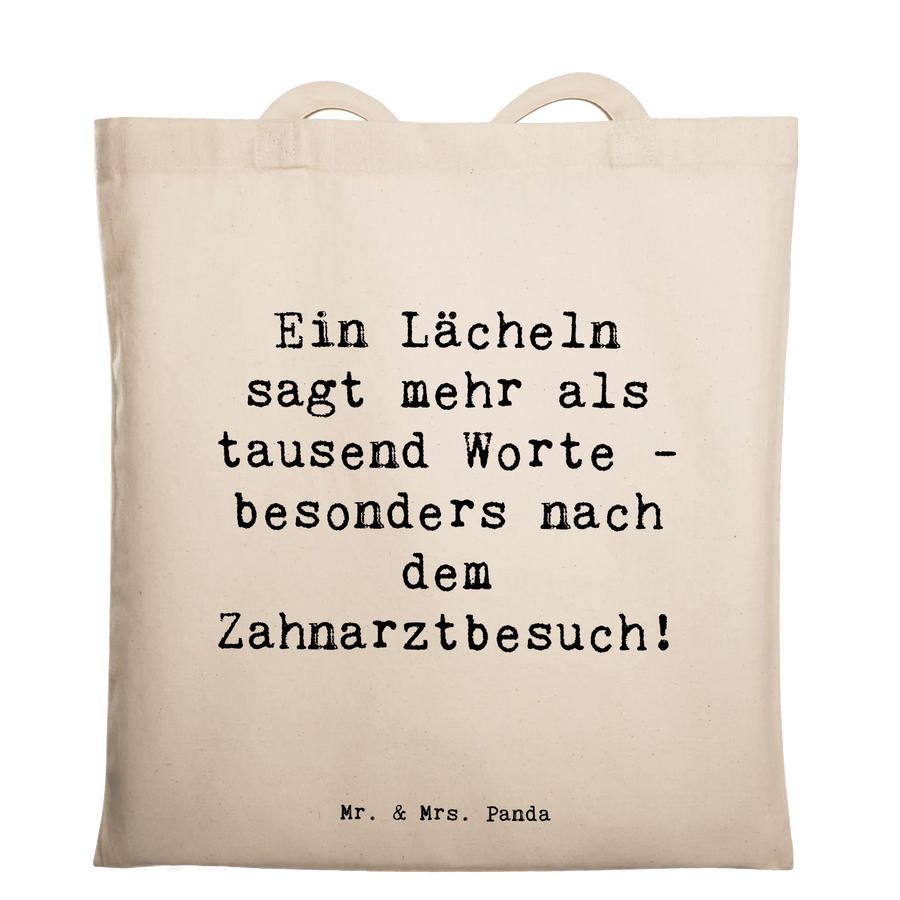Tote bag Saying Ein Lächeln sagt mehr als tausend Worte - besonders nach dem Zahnarztbesuch! Stofftasche, Shopper, Einkaufstüte, Jutetasche, Stoffbeutel, Umhängetasche, Jutebeutel, Schultertasche, Laptoptasche, Tasche, Einkaufstasche, Beuteltasche, Badetasche, Strandtasche, Beutel, Tragetasche, Beruf, Ausbildung, Jubiläum, Abschied, Rente, Kollege, Kollegin, Geschenk, Schenken, Arbeitskollege, Mitarbeiter, Firma, Danke, Dankeschön