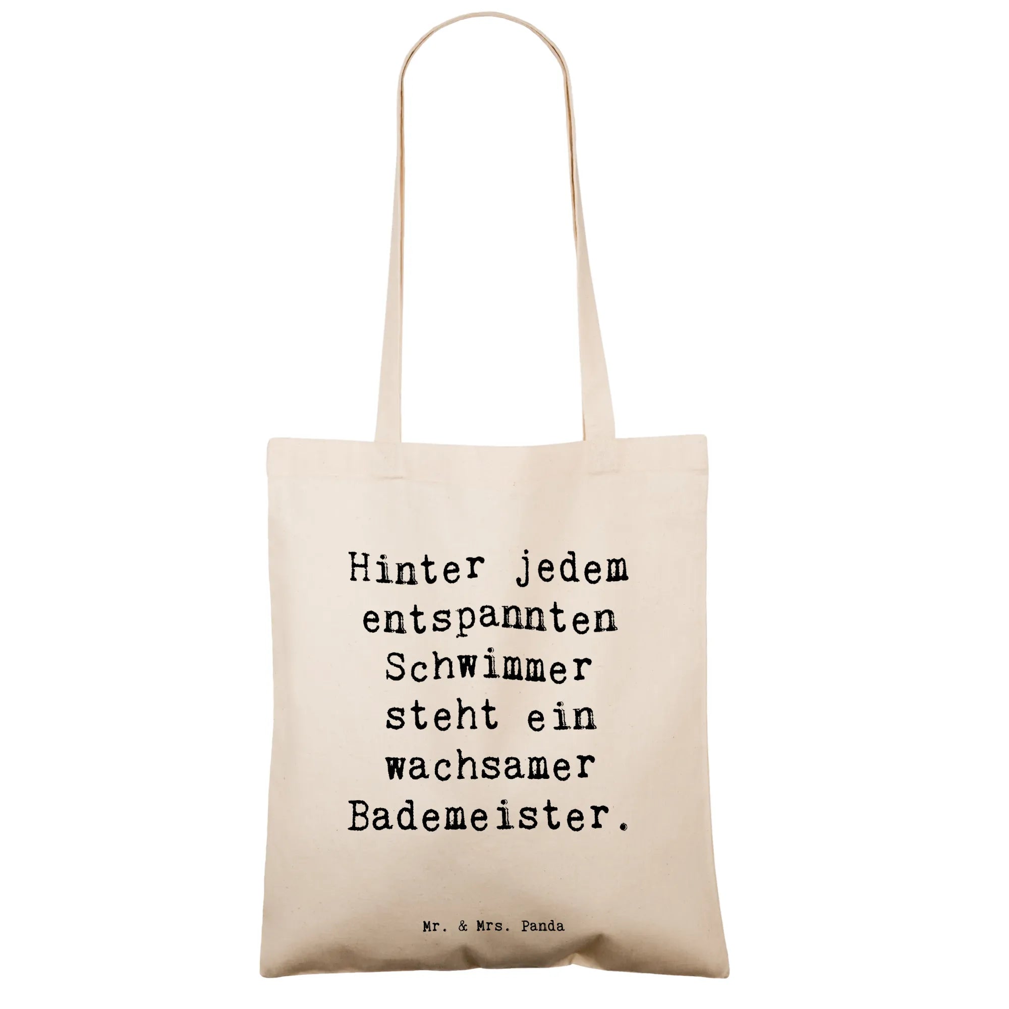Tote bag Saying Hinter jedem entspannten Schwimmer steht ein wachsamer Bademeister. - Transparent