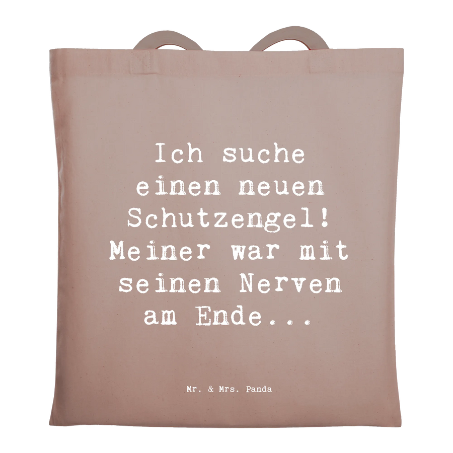 Tote bag Saying Ich suche einen neuen Schutzengel! Meiner war mit seinen Nerven am Ende... - Pastel Brown