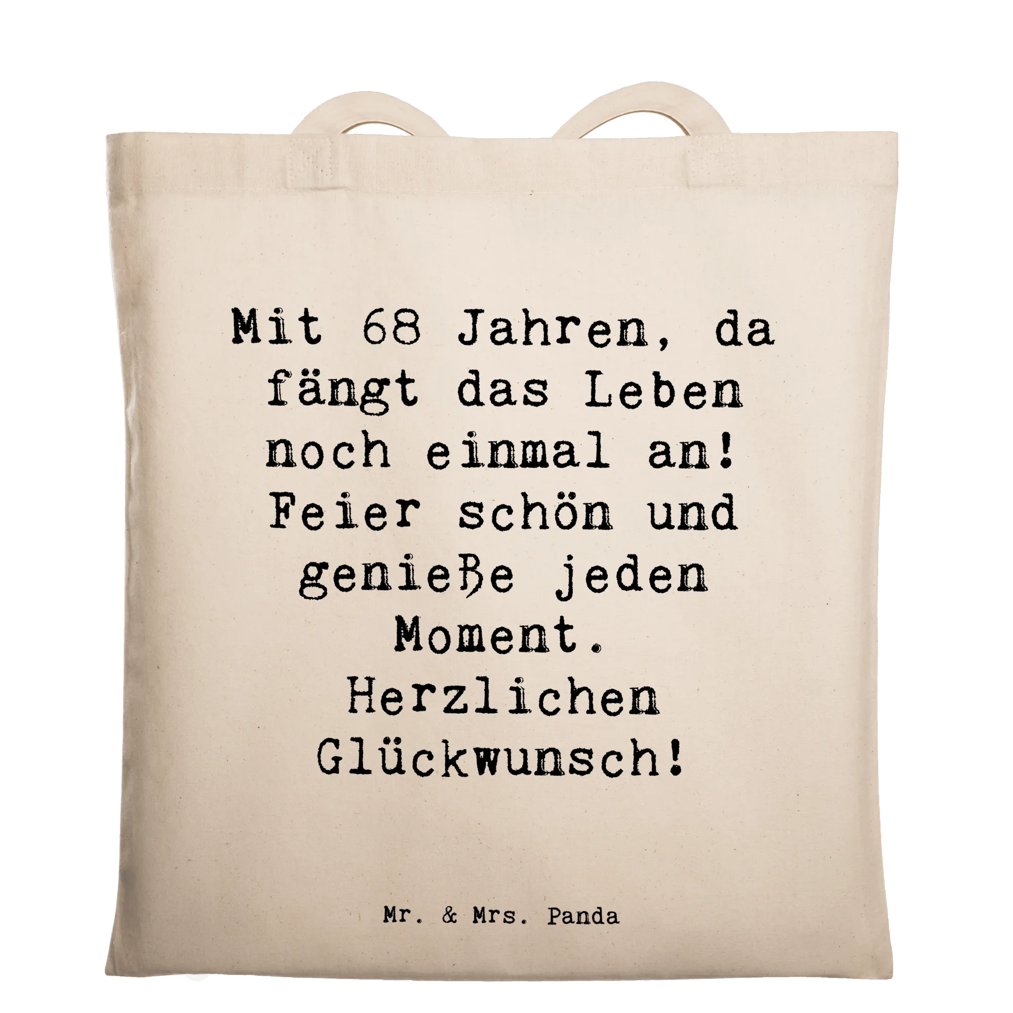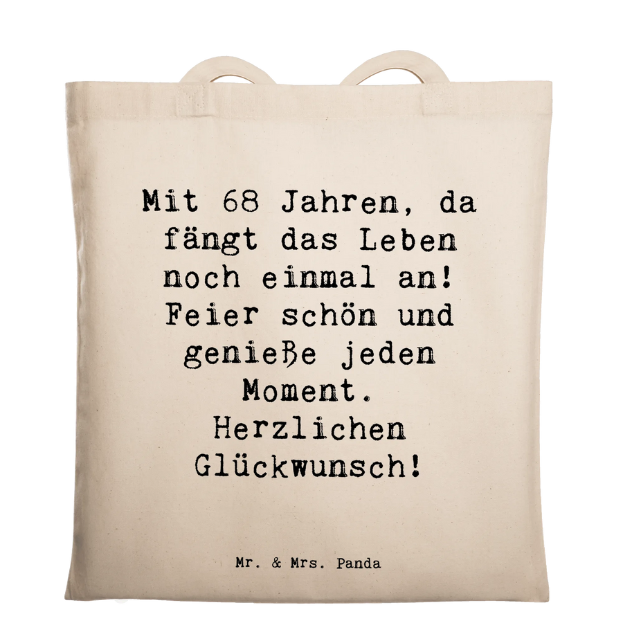 Tote bag Saying Mit 68 Jahren, da fängt das Leben noch einmal an! Feier schön und genieße jeden Moment. Herzlichen Glückwunsch! - Transparent