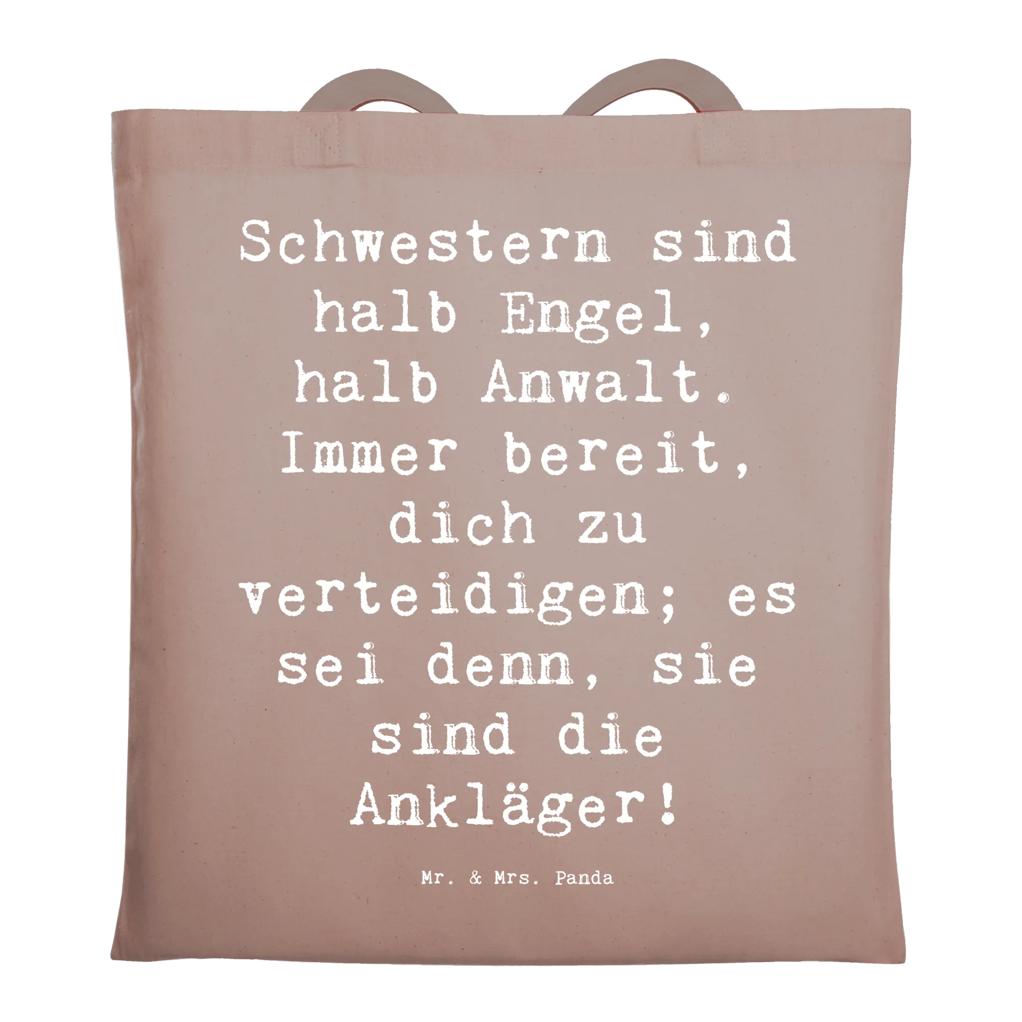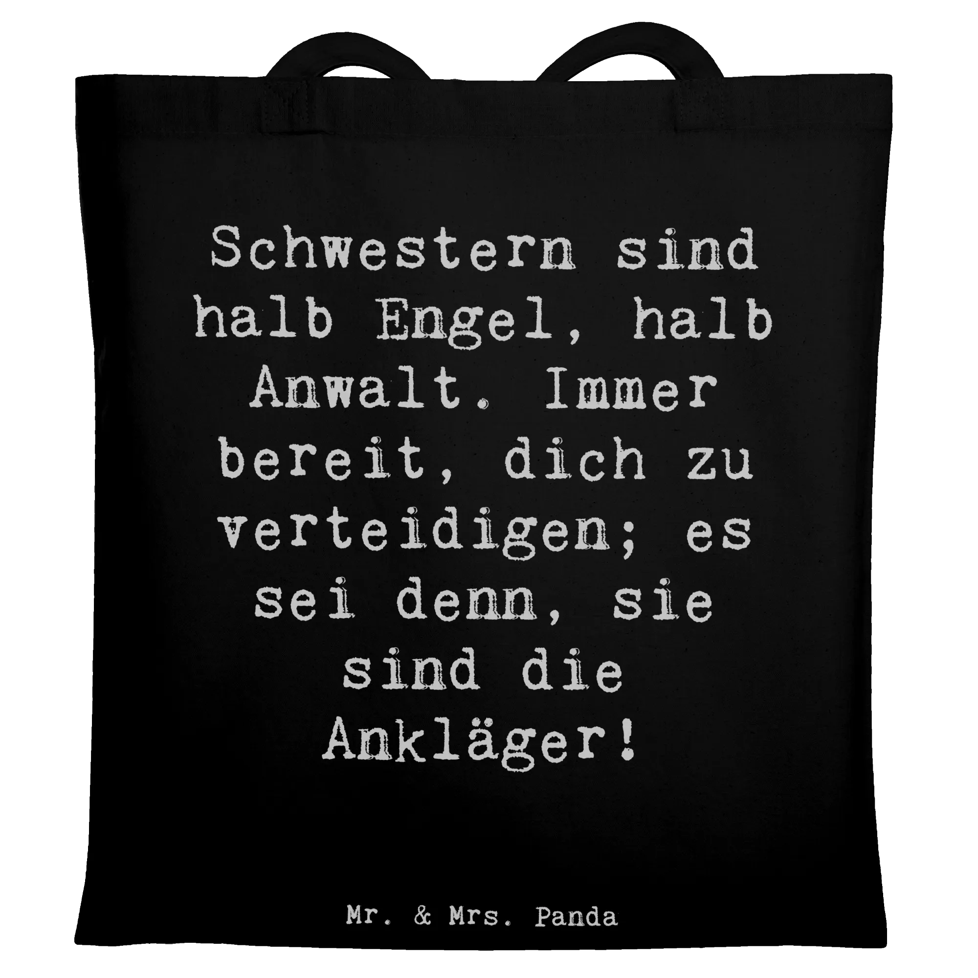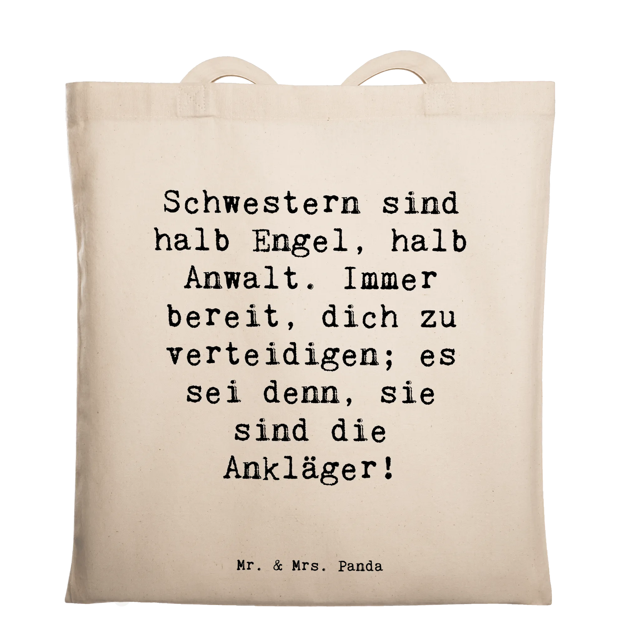 Tote bag Saying Schwestern sind halb Engel, halb Anwalt. Immer bereit, dich zu verteidigen; es sei denn, sie sind die Ankläger! - Transparent