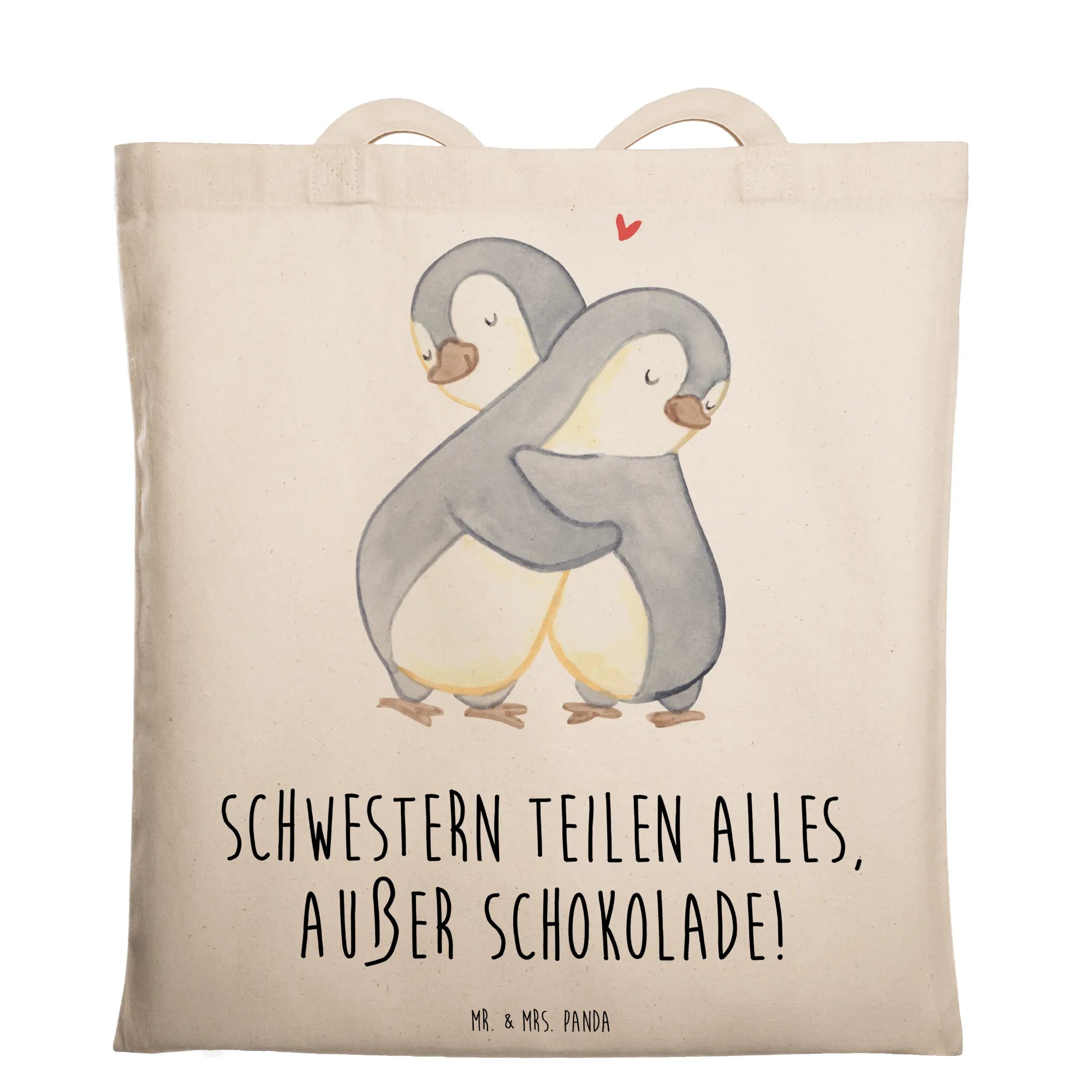 Eine Tragetasche voller Liebe für Deine Schwester ❤️ – unsere bezaubernde Tragetasche „Schwester“ aus der Familie & Verwandte Kollektion von Mr. & Mrs. Panda ist das perfekte Geschenk für alle, die Geschwisterliebe feiern möchten. Mit dem frechen Spruch „Schwestern teilen alles, außer Schokolade!“ zauberst Du garantiert ein Lächeln auf das Gesicht Deiner Schwester. 🎁