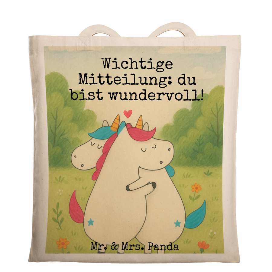 Zwei wunderbare Einhörner stehen eng umschlungen da und strahlen Glück und Zuneigung aus. Ihr Spruch 'Wichtige Mitteilung: du bist wundervoll!' erweckt nicht nur Freude, sondern auch das Bewusstsein für die kleinen Wunder der Liebe. Ob als fröhliches Geschenk zum Valentinstag oder zur Stärkung einer Beziehung, diese Motive sind eine charmante Möglichkeit, den geliebten Menschen zu zeigen, wie wertvoll er ist. Einhörner stehen für Unschuld, Magie und verträumte Momente. Diese Darstellung bereichert jede Einrichtung mit einem Hauch von Fantasie und Wärme. Mr. und Mrs. Panda betonen, wie wichtig es ist, in der heutigen Welt die Liebe zu feiern.