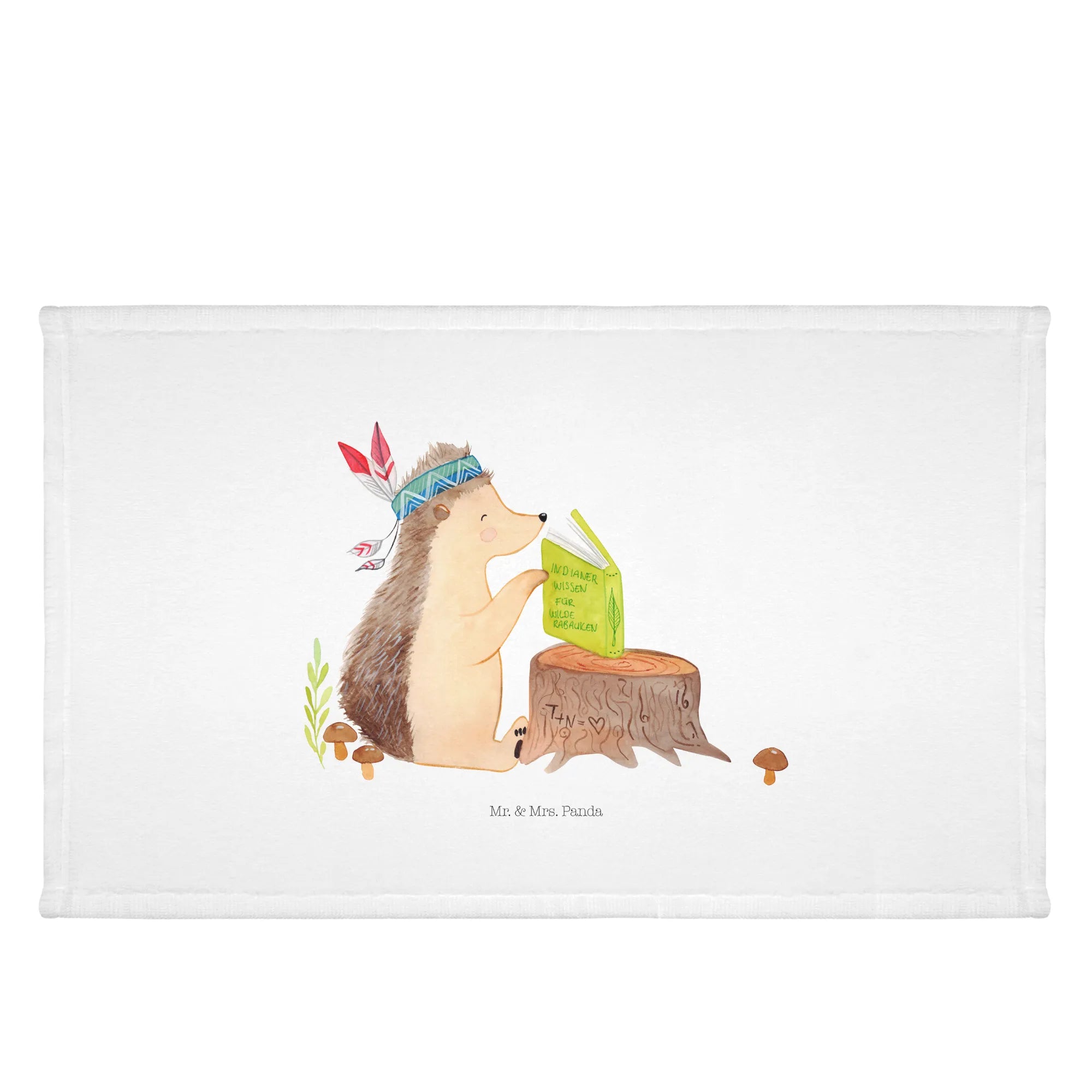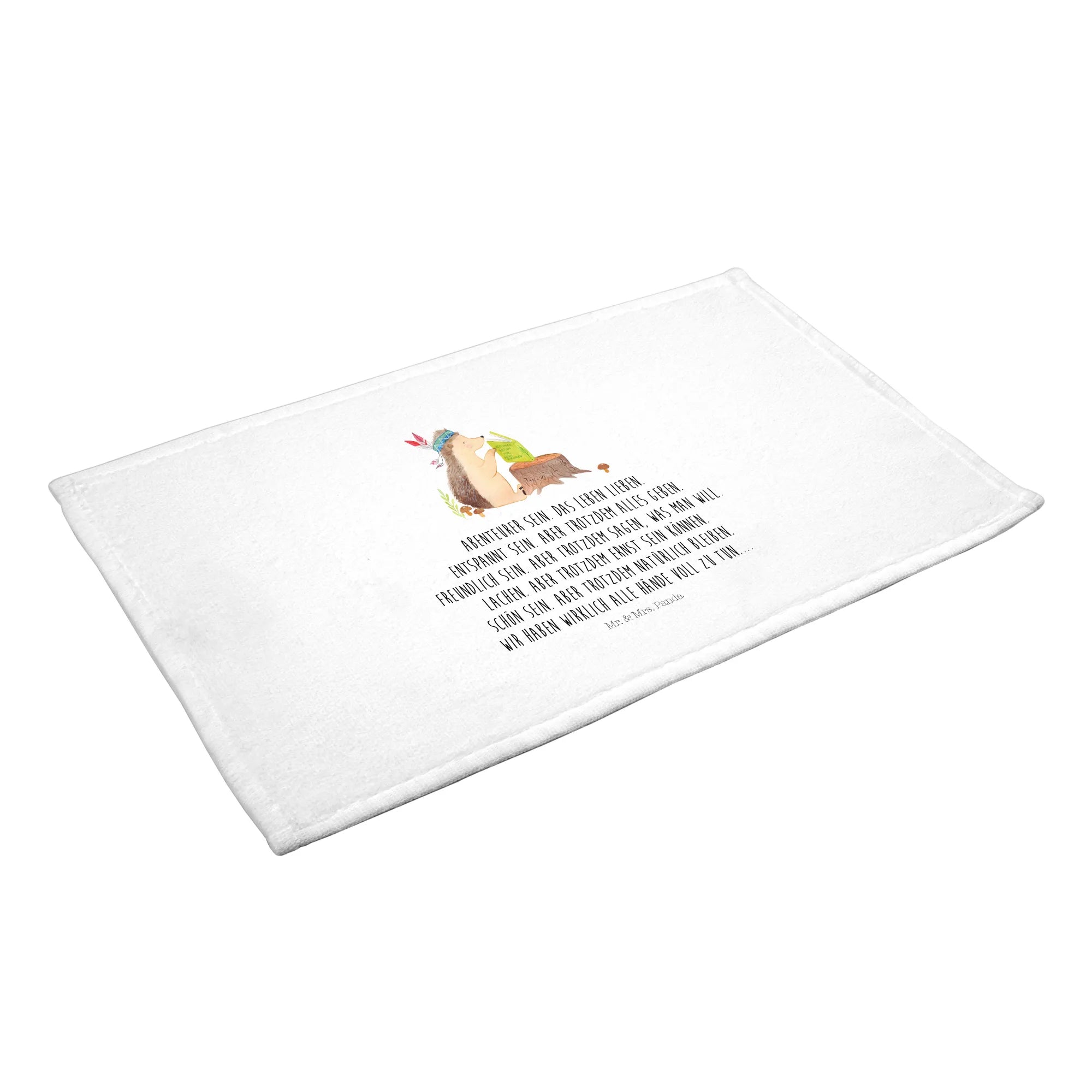 Hand towel Hedgehog feather headdress - with saying - White