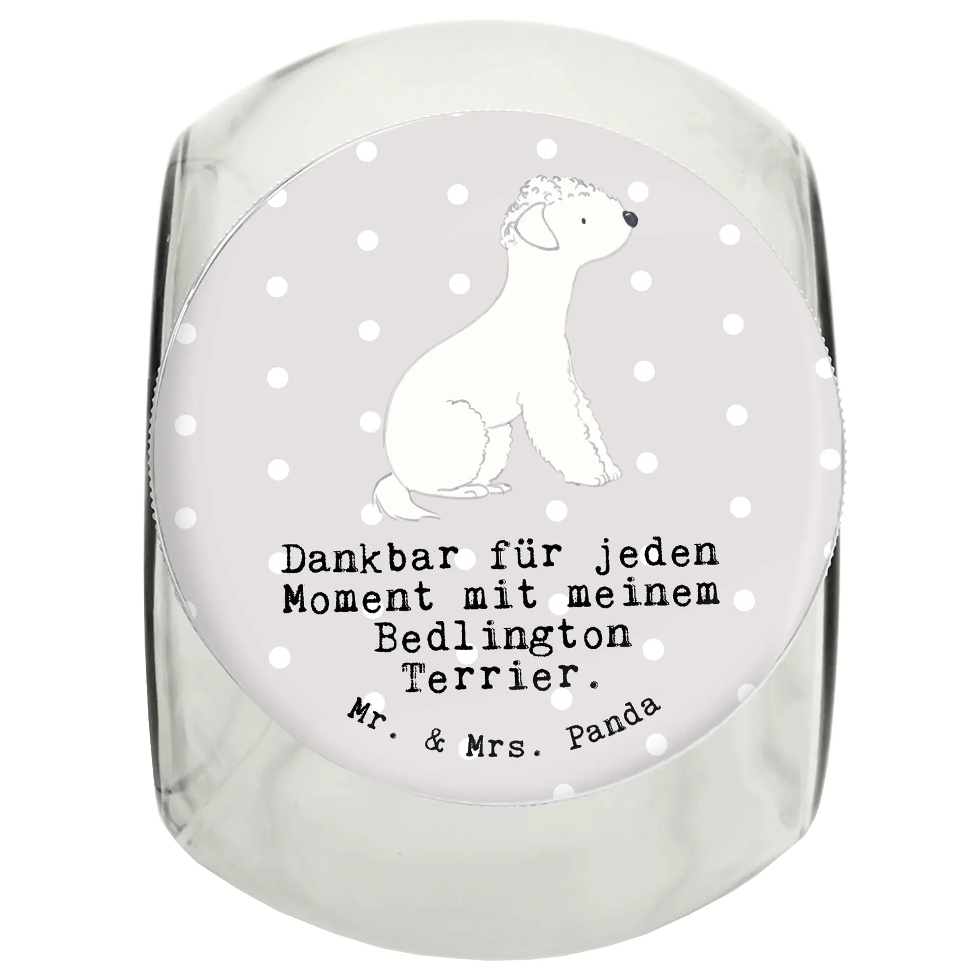 Treat Jar Bedlington Terrier Moment - L 870ml - with saying - Pastel Gray