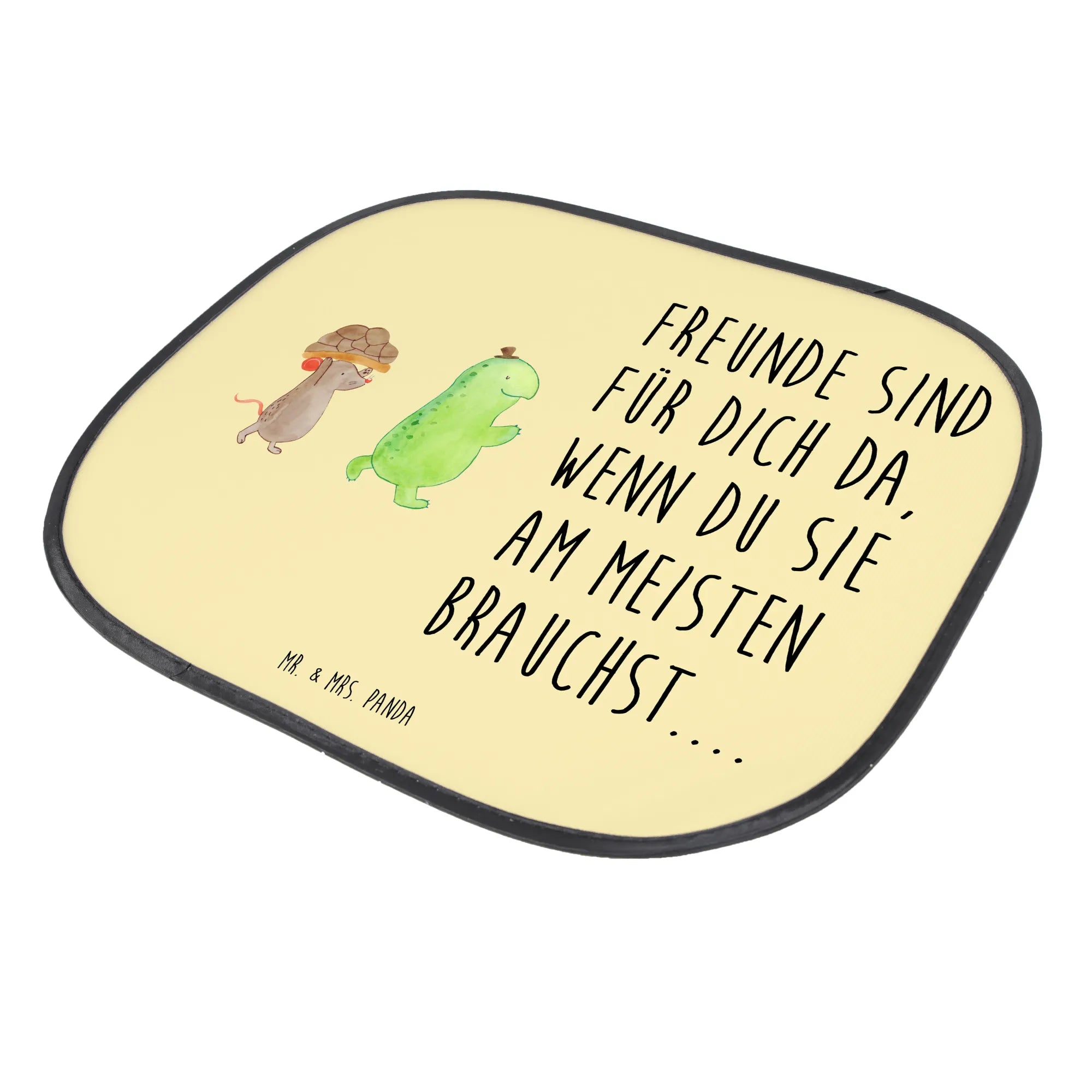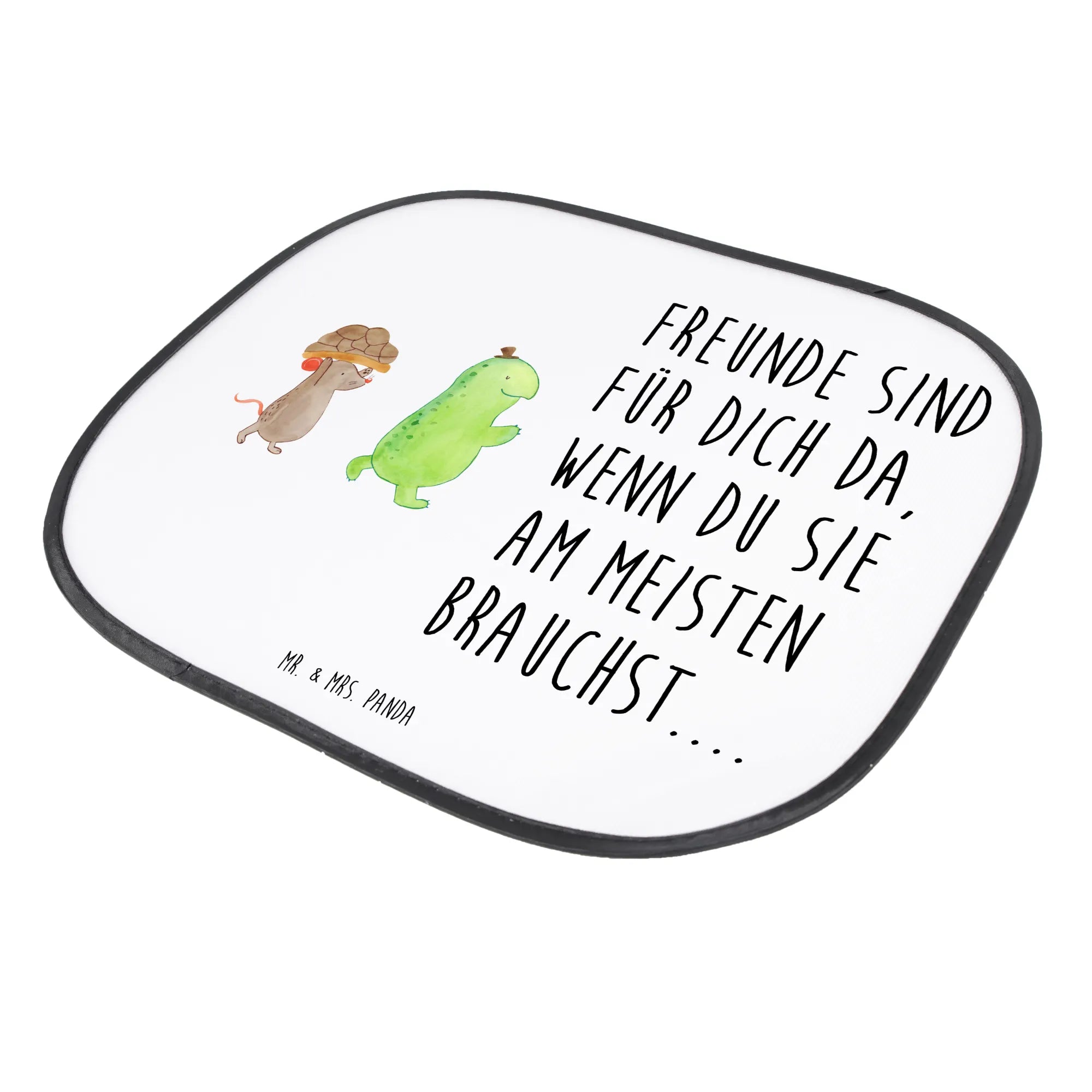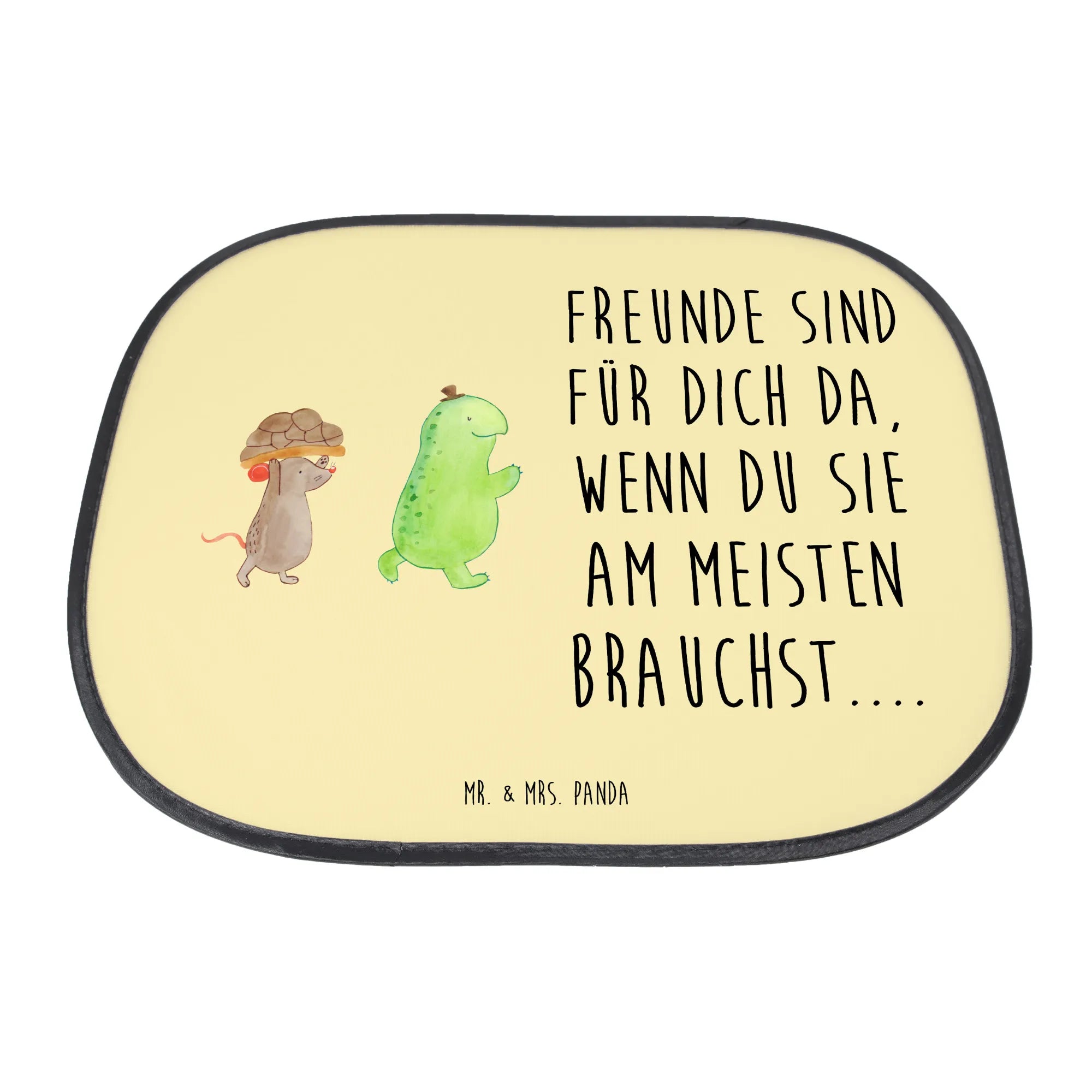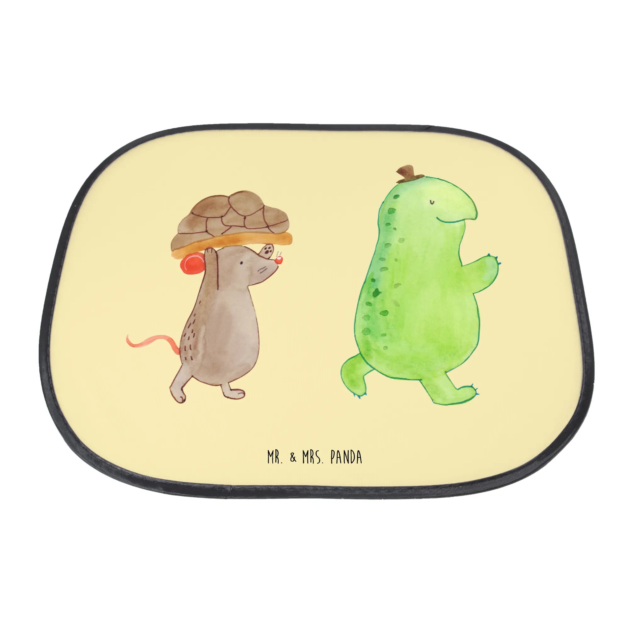 Der Sonnenschutz Auto Schildkröte & Maus aus der Schildkröten-Kollektion von Mr. & Mrs. Panda vereint Funktion und liebevolles Design. Die handgezeichnete Schildkröte und die kleine Maus bringen gute Laune in deinen Wagen und schützen zugleich vor direkter Sonneneinstrahlung. Perfekt als Autosonnenschutz für Seitenscheiben oder als Sonnenblende Auto für kleine Mitfahrer.
