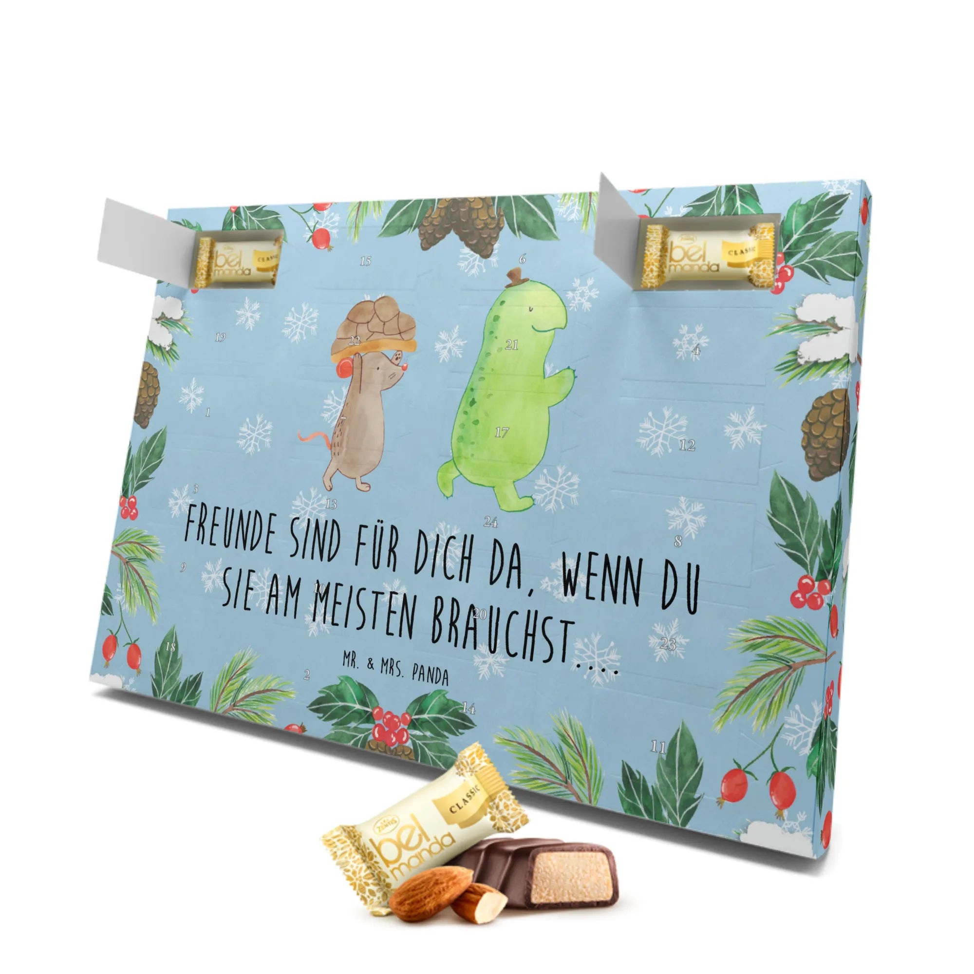 Der Marzipan Adventskalender mit dem bezaubernden Motiv Schildkröte & Maus von Mr. & Mrs. Panda ist das perfekte Geschenk für Freunde und Freundinnen, die die Vorweihnachtszeit mit einem Lächeln erleben möchten. Dieser wunderschöne Adventskalender ist nicht nur ein köstlicher Genuss, sondern auch ein liebevolles Zeichen der Freundschaft.