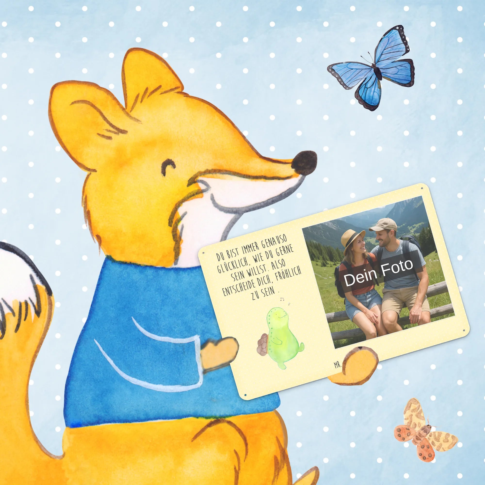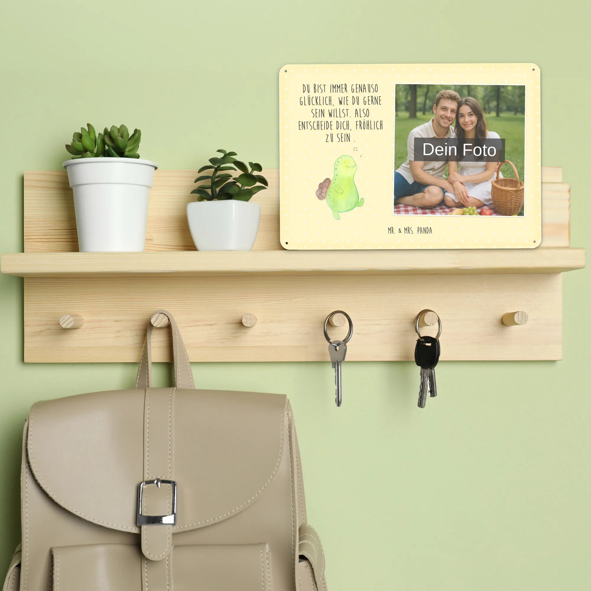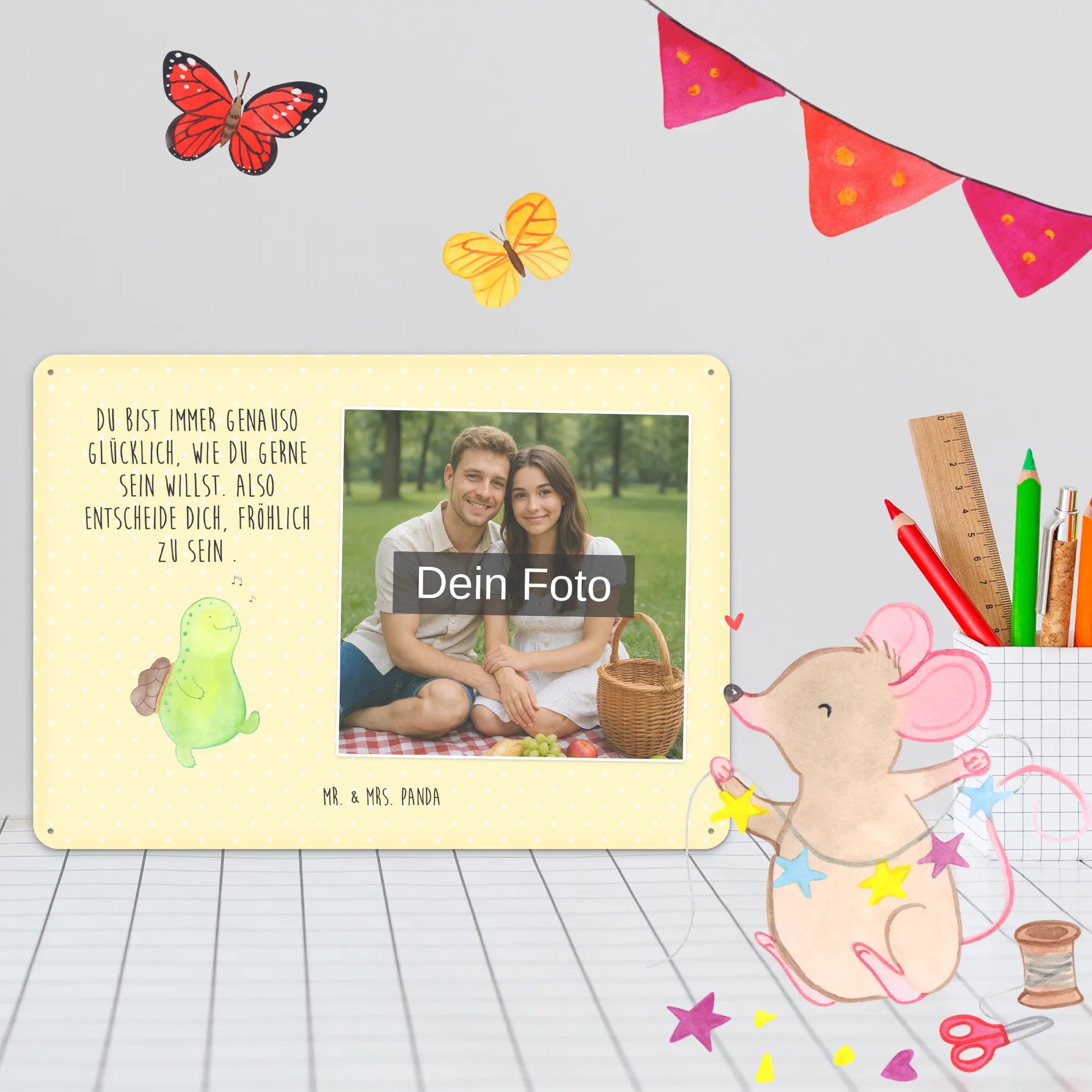 Unser Foto-Blechschild personalisierbar von Mr. & Mrs. Panda vereint Charme und Qualität: bedruckt mit niedlichen Motiven und liebevollen Sprüchen, wird es mit deinem Wunschfoto zum persönlichen Lieblingsstück. Damit das Ergebnis wirklich schön wird, lade ein Foto in hoher Auflösung hoch, achte auf den richtigen Bildausschnitt und nutze nur Bilder, für die du die Rechte besitzt. Maße: 70 mm x 148 mm x 105 mm. Gefertigt aus edlem Stahlblech ohne Wölbung, mit seidenmatter Oberfläche, abgerundeten Ecken und umgefalzten Kanten. Der Druck ist edel und langlebig, vier Bohrungen sorgen für eine einfache Befestigung an Tür oder Wand – perfekt für den Innenbereich. Ob als Geschenkidee oder dekoratives Highlight, dieses personalisierbare Foto-Blechschild bringt Wärme und Persönlichkeit in dein Zuhause. Pflegehinweis: einfach mit feuchtem Tuch abwischbar. Besonderheit: in verschiedenen Größen erhältlich, damit du die beste Passform findest.