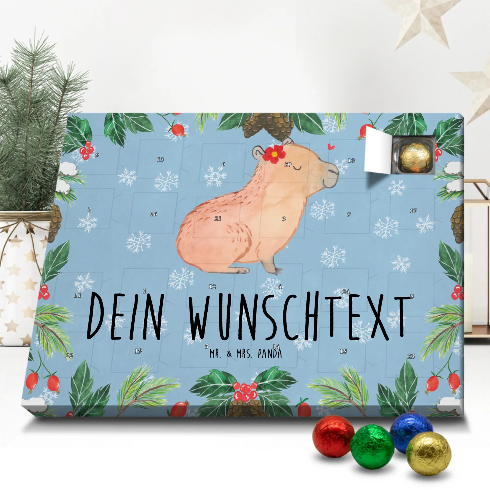 Say hello to the delightful Capybara Flower! With its serene visage and contented smile, this capybara is a beacon of relaxation. Crowned with a striking red flower accented by golden yellow, its look is festive and fun. Floating above, a heart symbolizes the affection that surrounds us in life's quiet moments. Let this enchanting motif remind us that, as we know well: Es gibt viele Lebenswege, die glücklich machen. Mein Lieblingsweg ist der zum Sofa. So kick back and find joy in your own cozy spot!