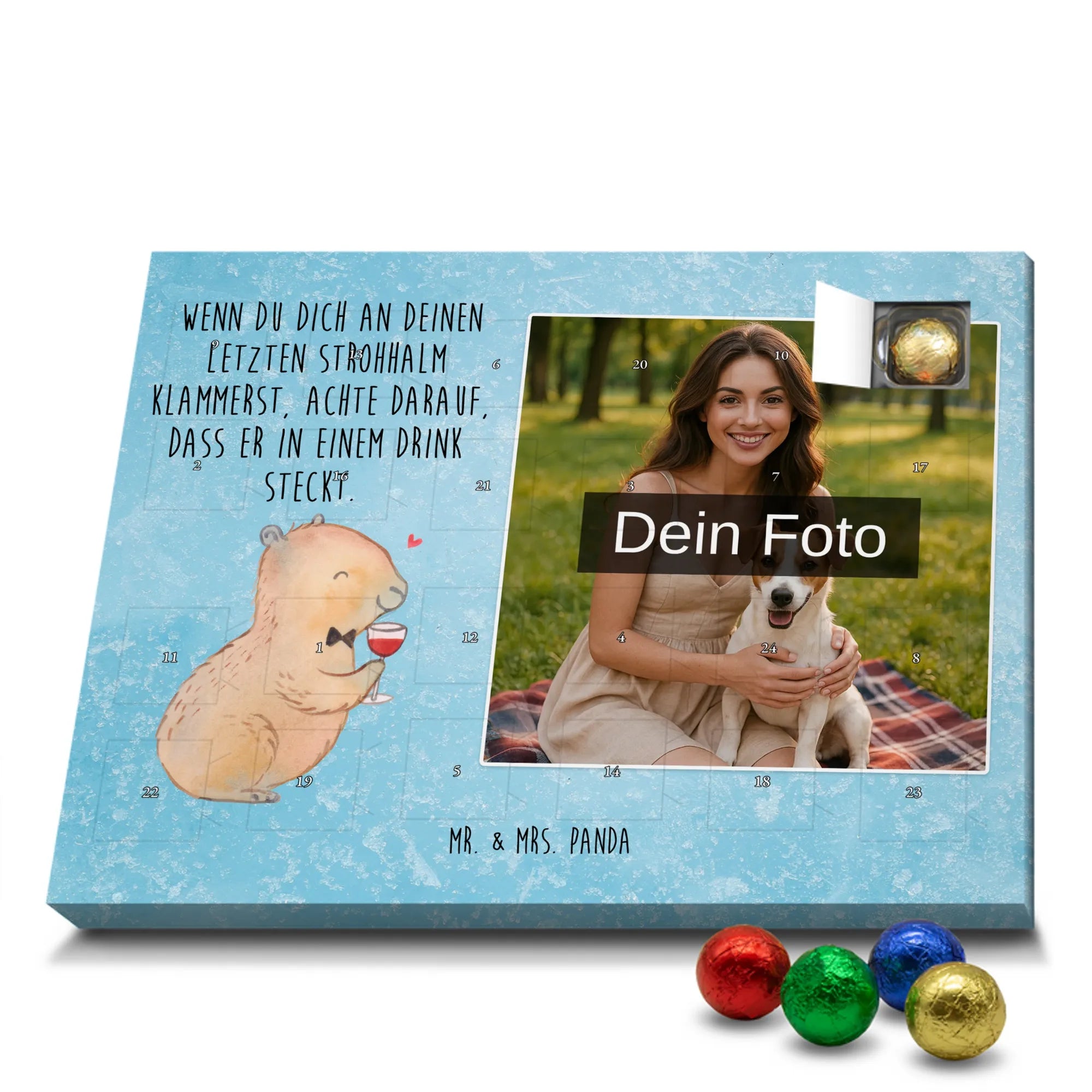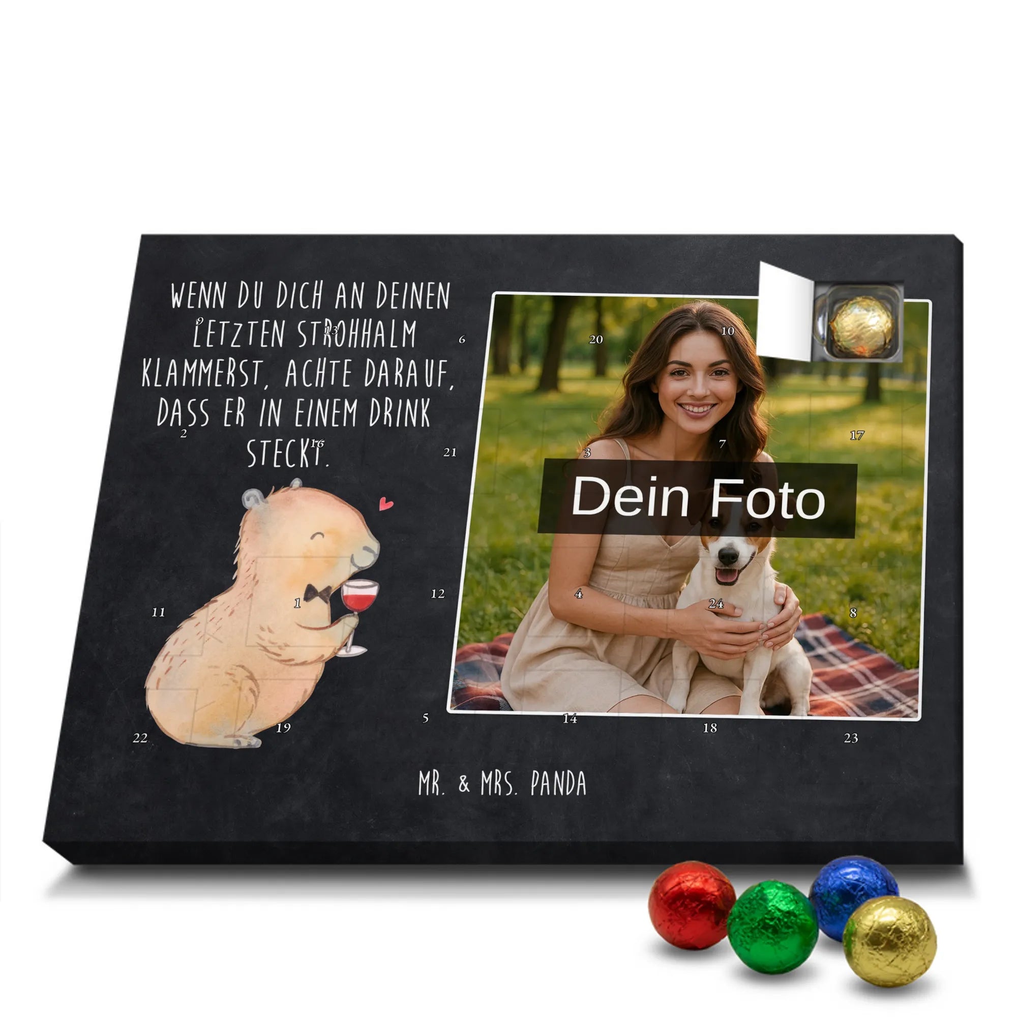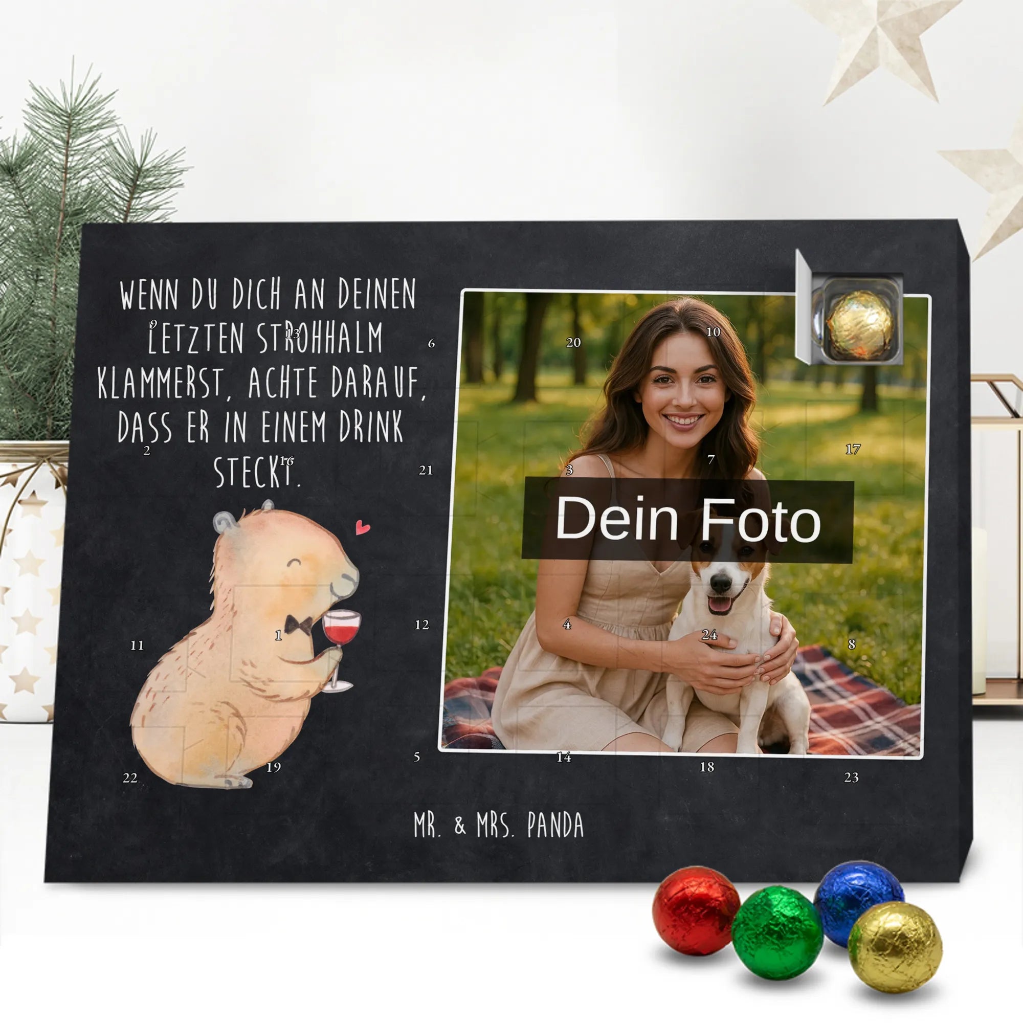 Verschenke Vorfreude: Gestalte jetzt deinen personalisierten Schoko Foto Adventskalender und überrasche mit süßen, persönlichen Momenten von Mr. & Mrs. Panda.