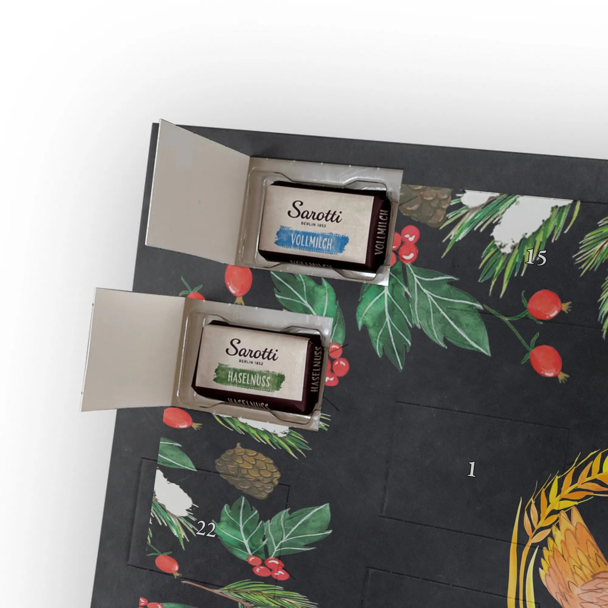 Make the Advent season even more special with the personalized chocolate Advent calendar from Mr. & Mrs. Panda. This unique Advent calendar is printed with your desired name or a custom text and features exclusive designs and sayings from the renowned designer duo. It's not only a visual highlight but also delights taste buds with 24 high-quality chocolate balls in various colors. The brilliant print quality and the silk-matte finish make this calendar a true eye-catcher during the Christmas season.
