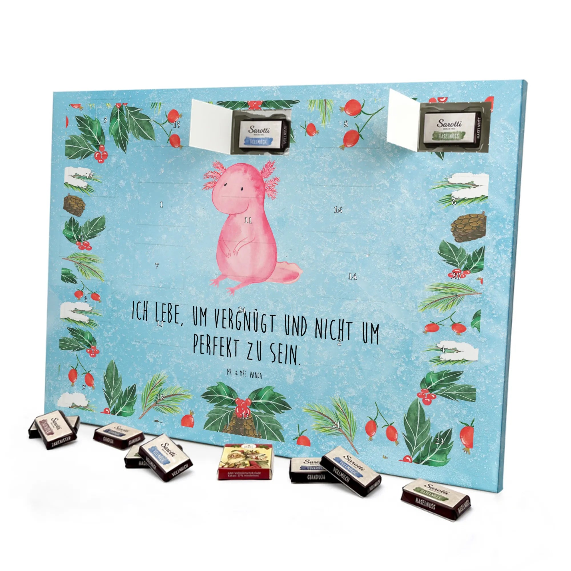 Chocolate advent calendar axolotl zero - Classic - with saying - Ice Blue