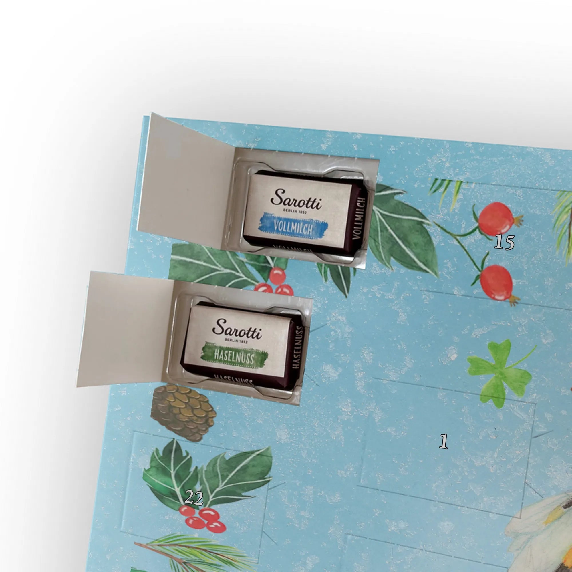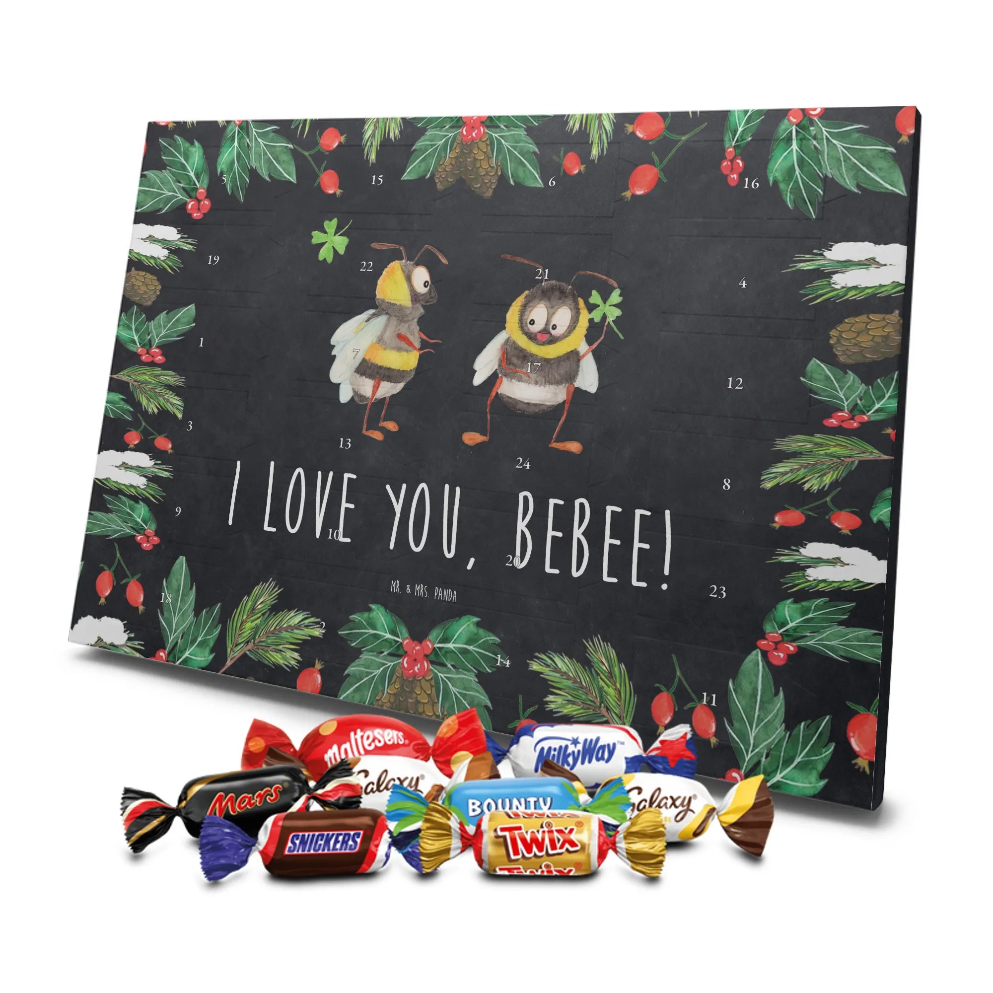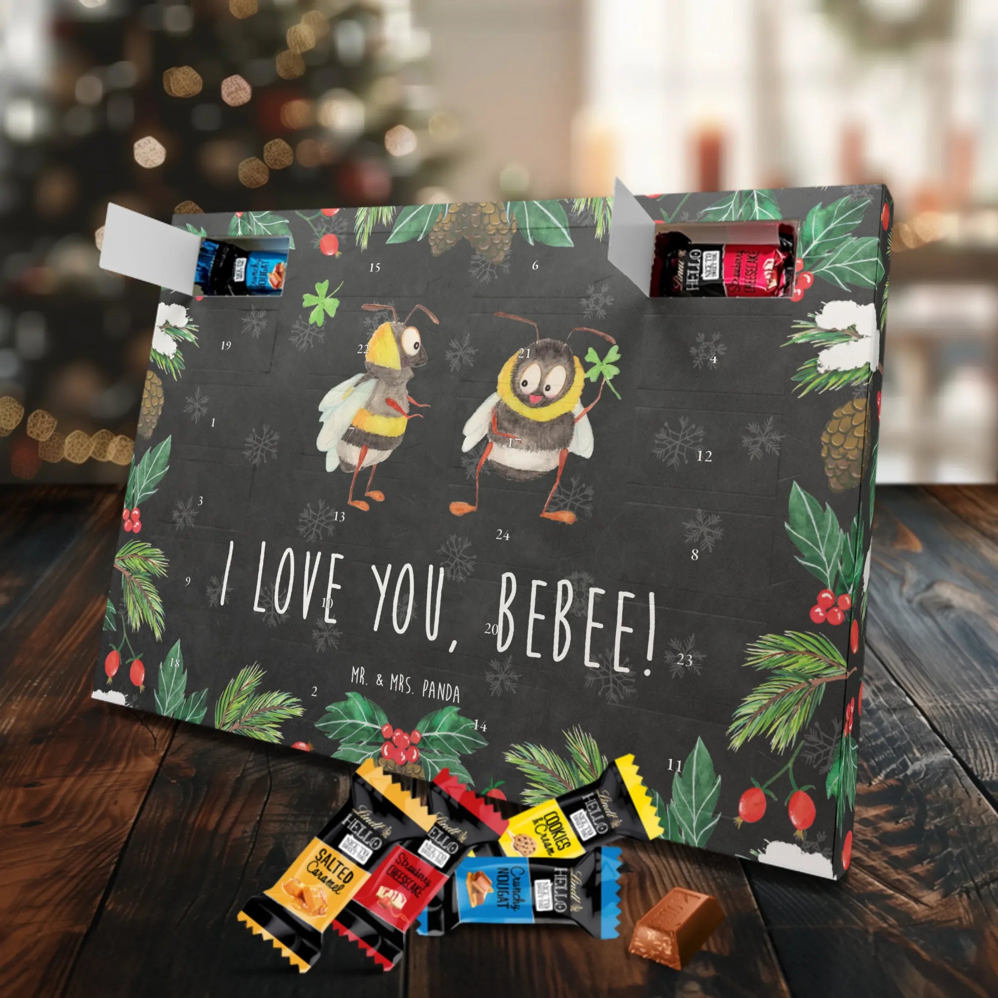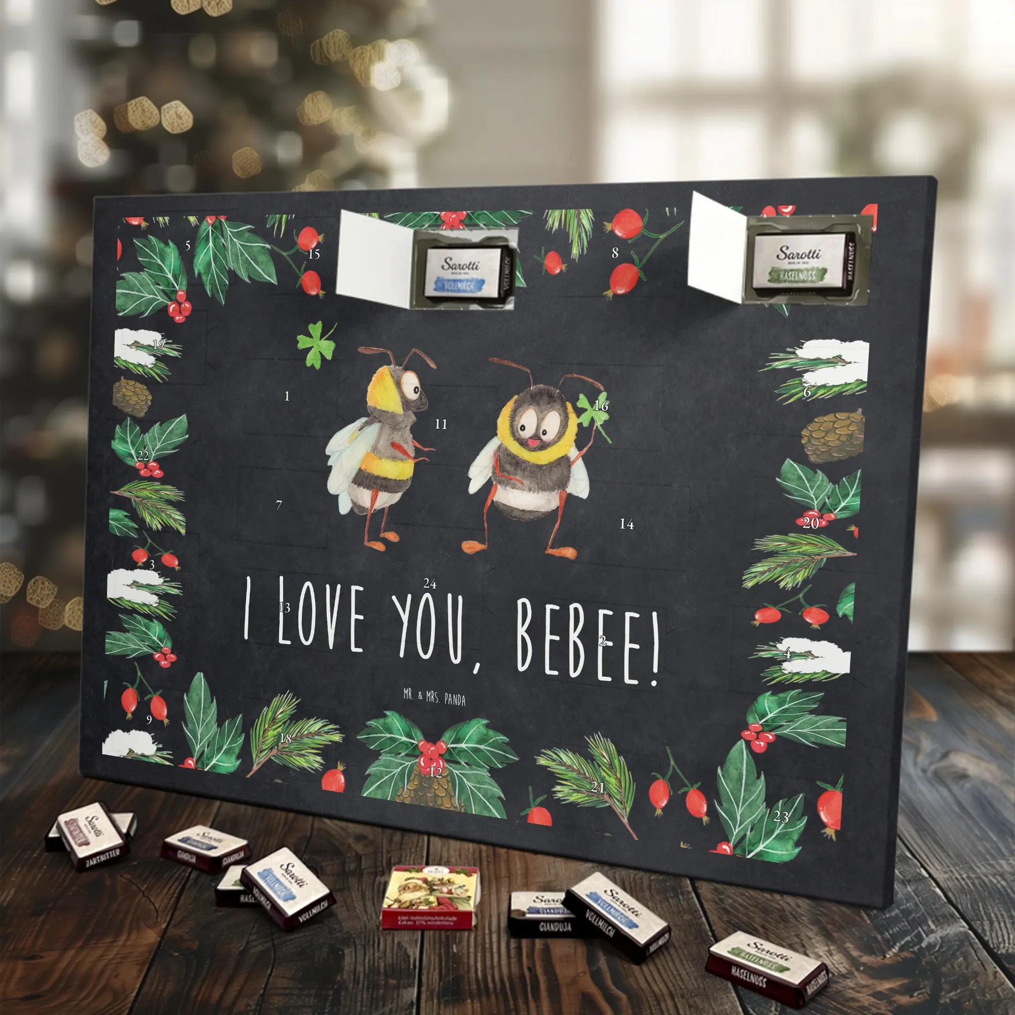 Chocolate advent calendar bees Pair - Classic - with saying - Ice Blue