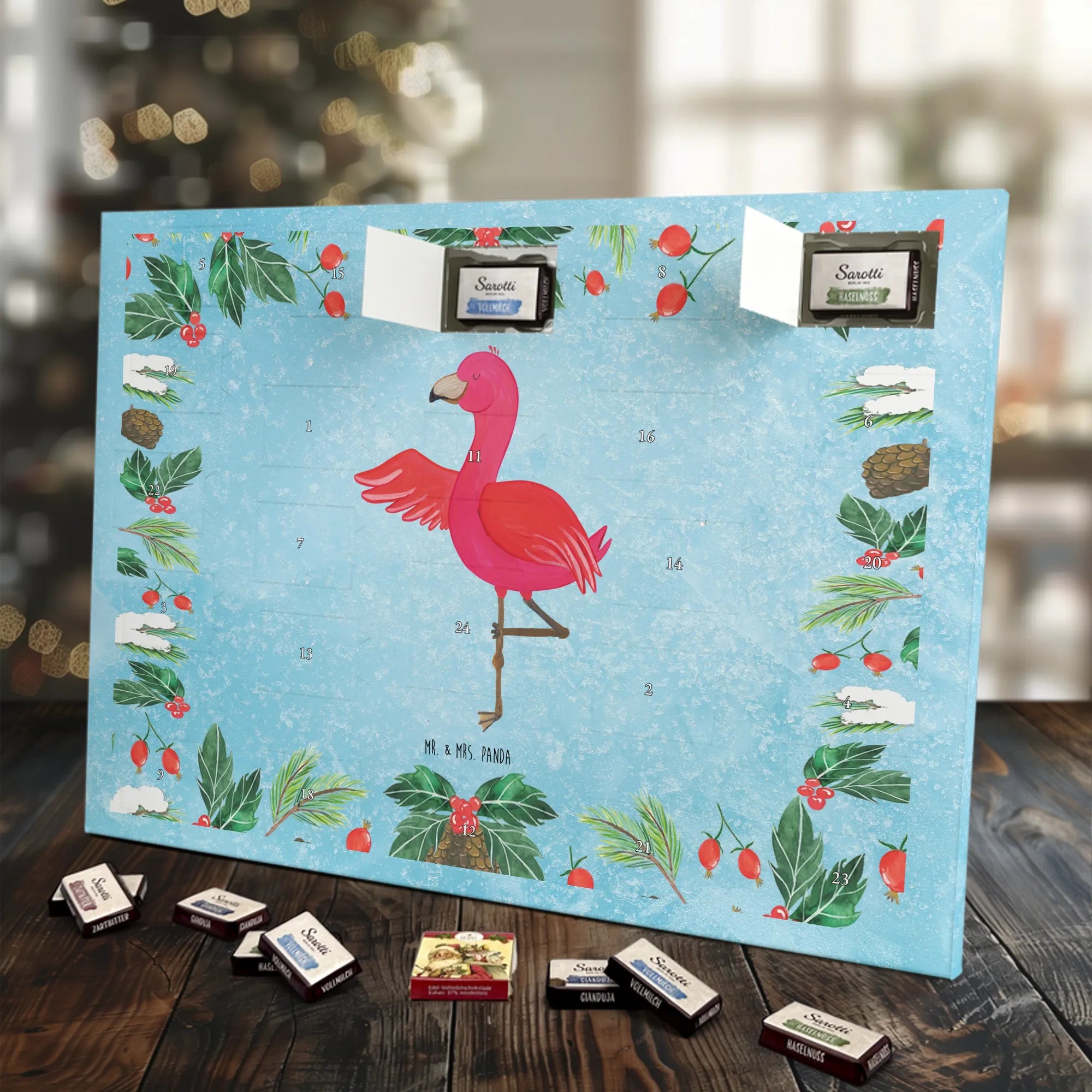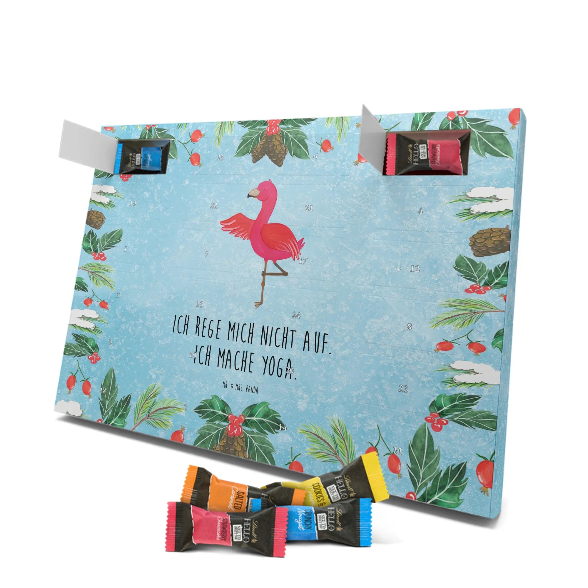 Chocolate advent calendar flamingo yoga - Classic - with saying - Ice Blue
