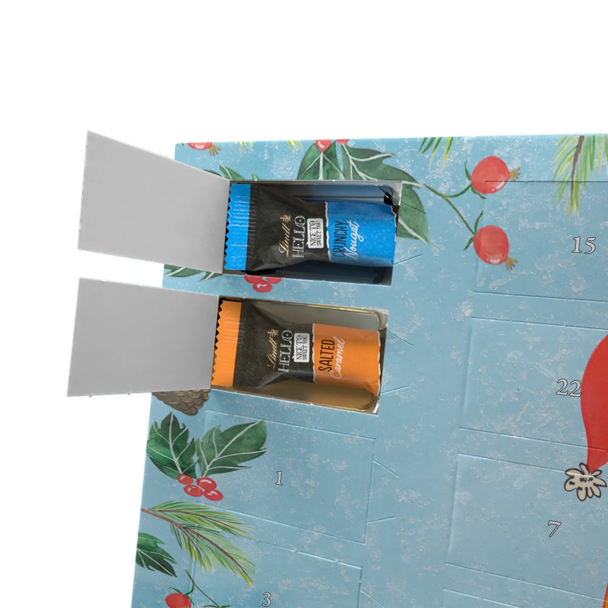 This handy advent calendar 2020 from Mr. & Mrs. Panda is really something very special - it is decorated with wonderful motifs and has the size 24m x 18cm x 2,5cm. It is filled with 24 chocolate balls and costs 14,90€ - the calendar can be hung up or set up using the set-up function on the back. Please note that we also have a larger calendar with delicious chocolate from Hello Lindt.