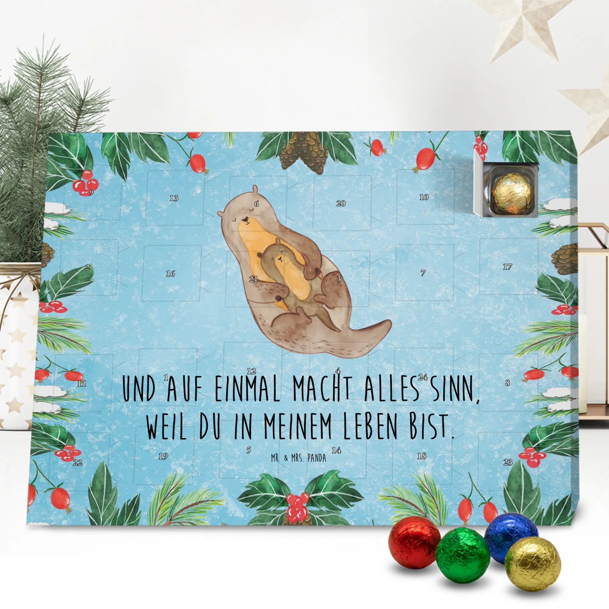 Chocolate advent calendar otter child - Classic - with saying - Ice Blue