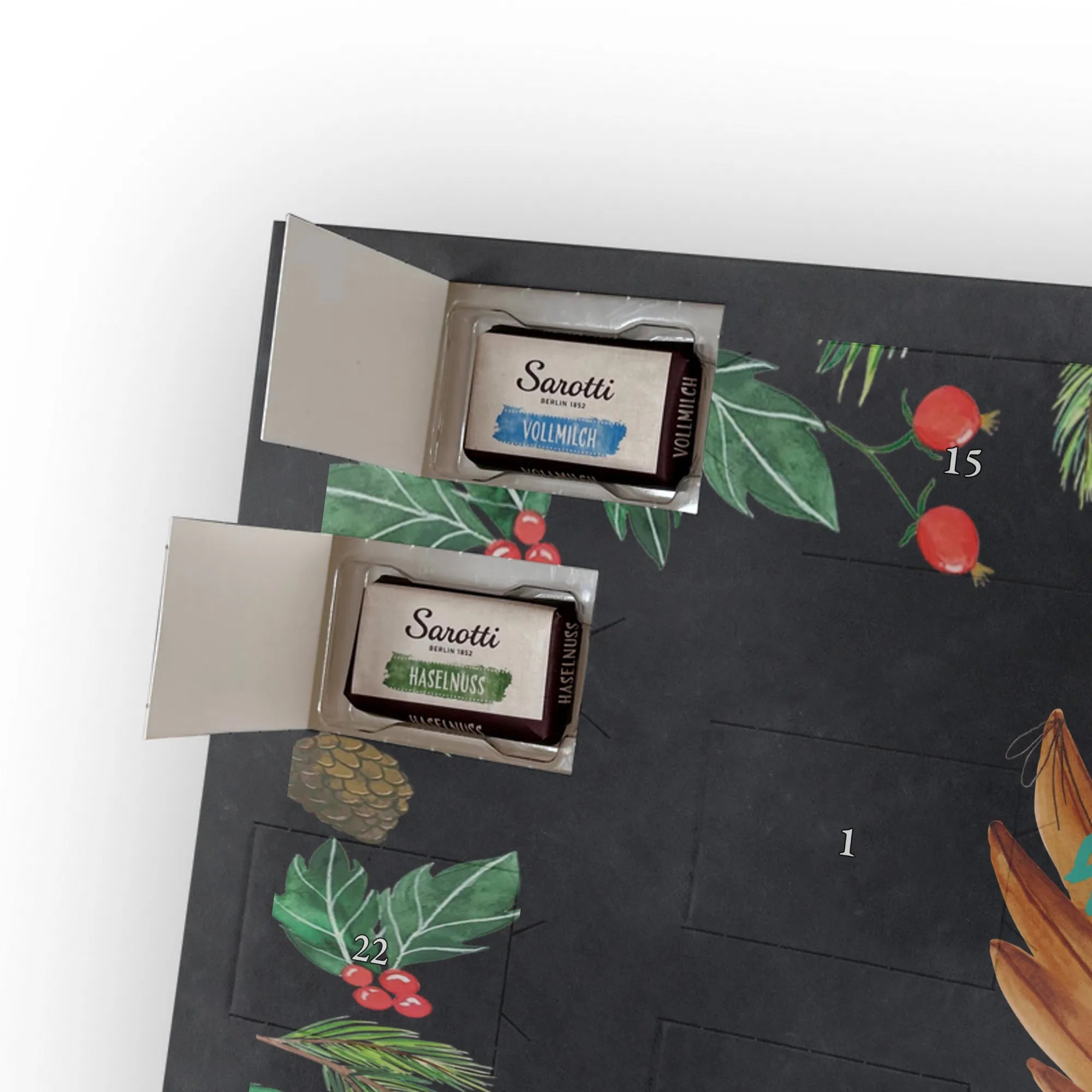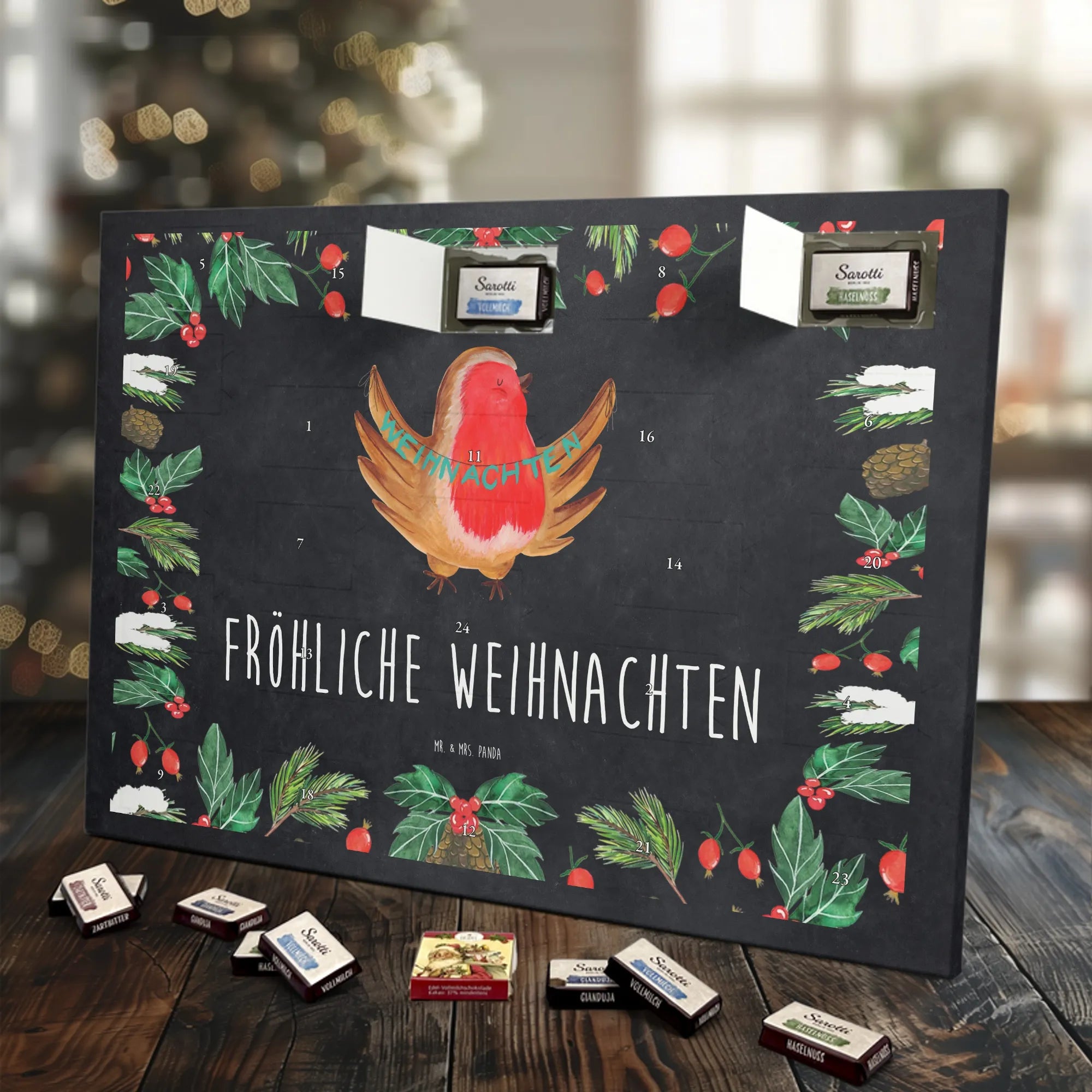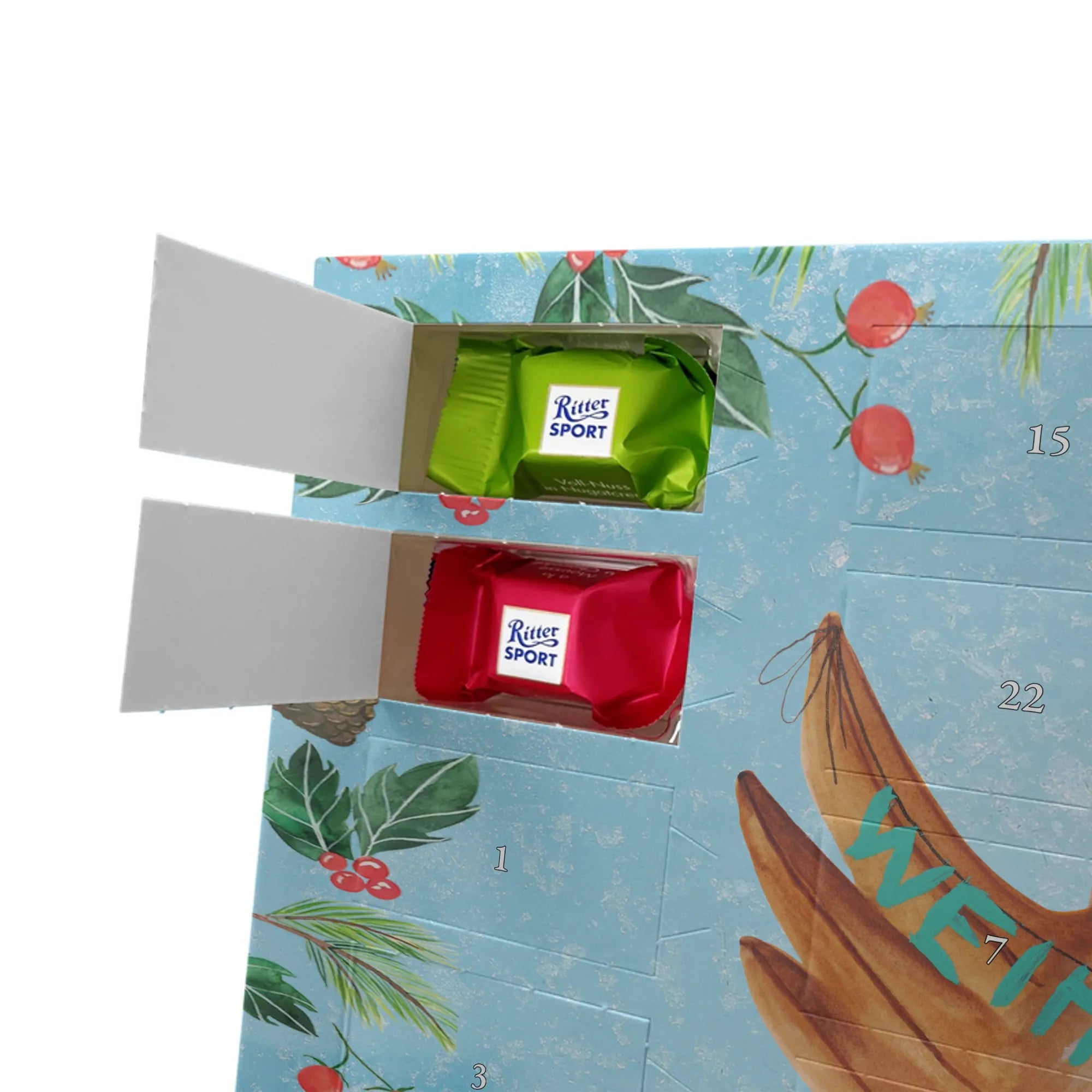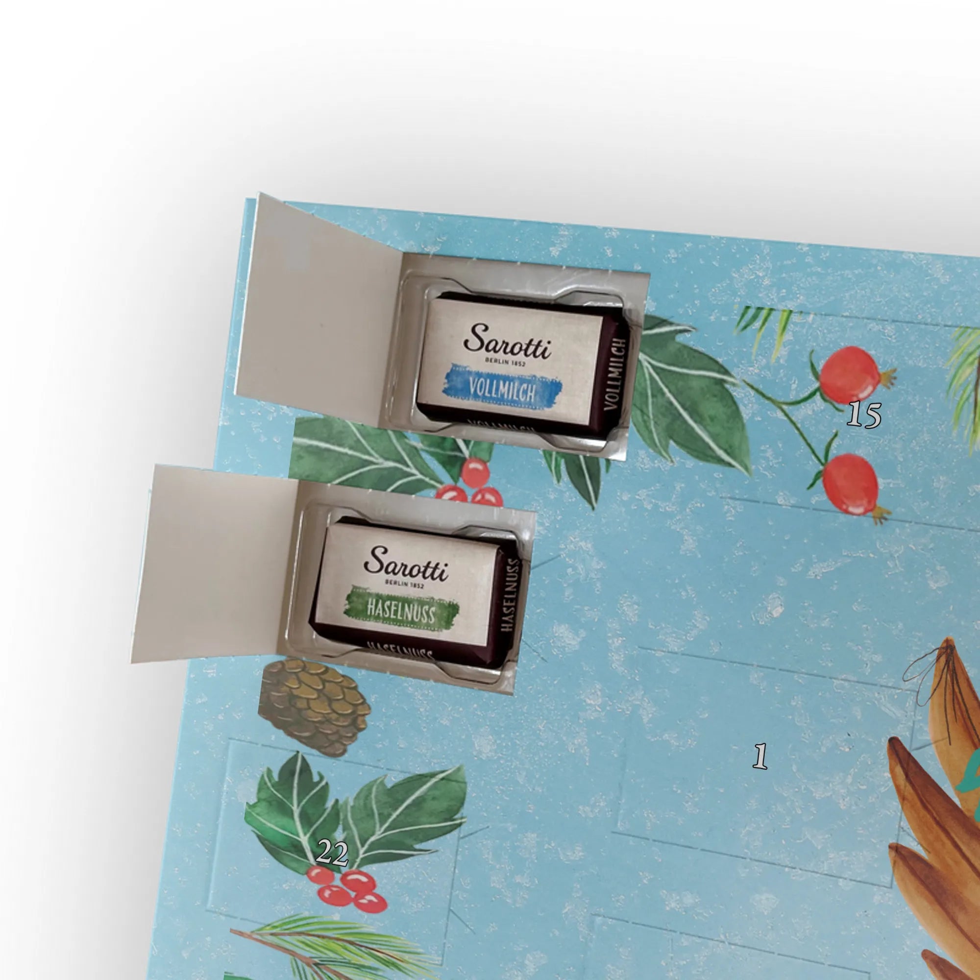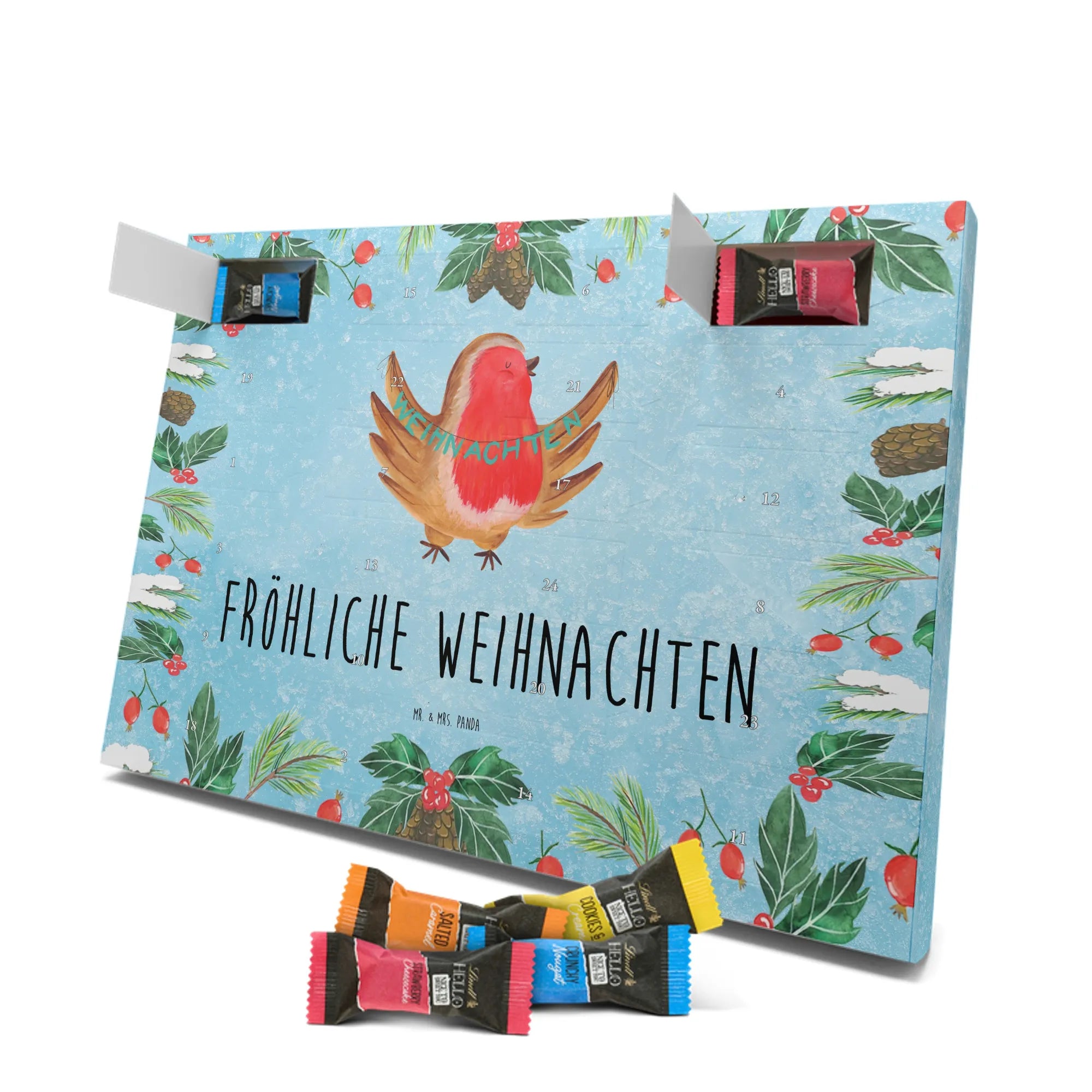 Chocolate advent calendar robin Christmas - Classic - with saying - Ice Blue